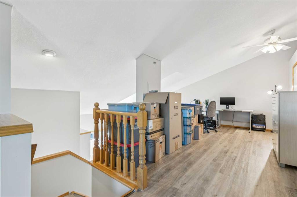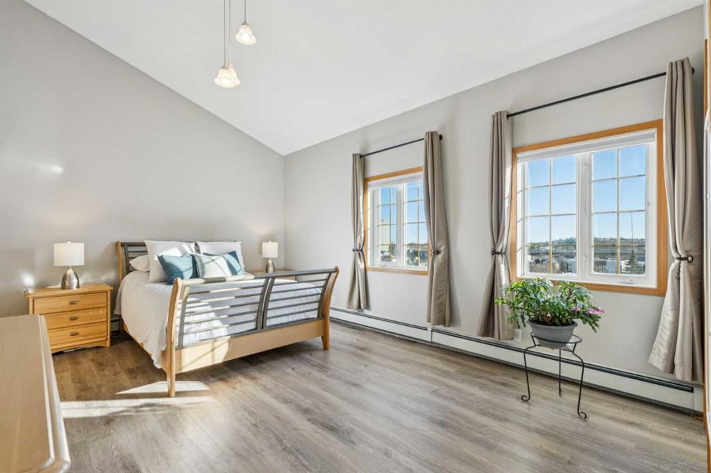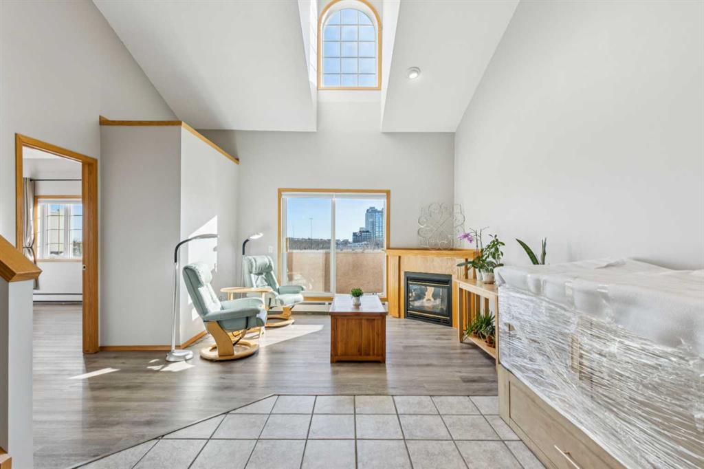 Inner city living in the heart of Bridgeland ~ This spacious 2-bedroom, 2-bathroom condo offers 1,709.83 sq ft of thoughtfully designed living space across multiple levels, featuring soaring vaulted ceilings and more storage than most condos—perfect for those who value both style and practicality. The entry opens to a tiled foyer with a coat closet, leading into a kitchen with warm wood cabinetry, stainless steel appliances, and a central island that flows seamlessly into the living room. The vaulted ceilings and open-to-above design fill the space with natural light, while the fireplace and balcony provide cozy spots to relax or entertain. The primary bedroom is a private retreat with an en-suite bathroom and two closets, while the second bedroom is spacious and versatile. A full bathroom and a separate laundry room are conveniently located in the hallway. Upstairs, a second-level living area and open loft overlook the main floor, offering flexible space for a media room, home office, or reading nook. Multiple additional storage spaces, including a dedicated storage room and an upper loft, make organization effortless—something rarely found in condo living. Located just minutes from downtown, this home offers easy access to transit and the scenic Bow River pathways, perfect for walking, running, or cycling. Enjoy the convenience of downtown amenities including restaurants, cafés, shopping, the Calgary Zoo and entertainment, while still benefiting from a peaceful residential setting across from a school and near a playground. This condo perfectly combines space, style, and a prime location.