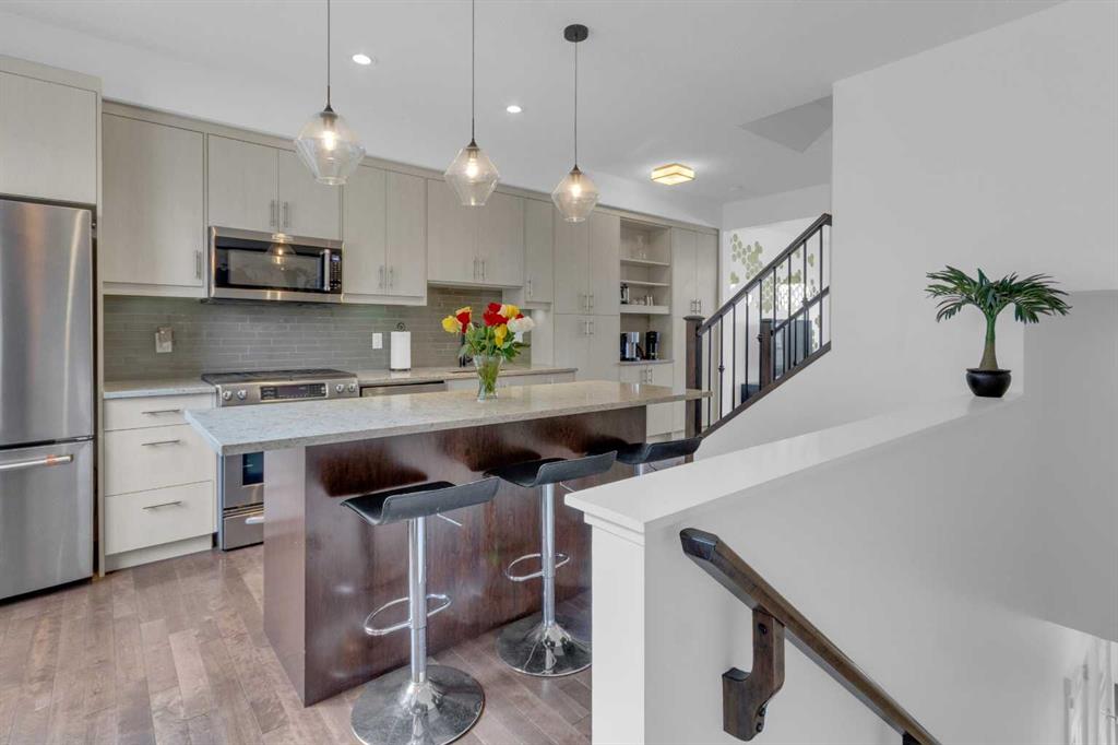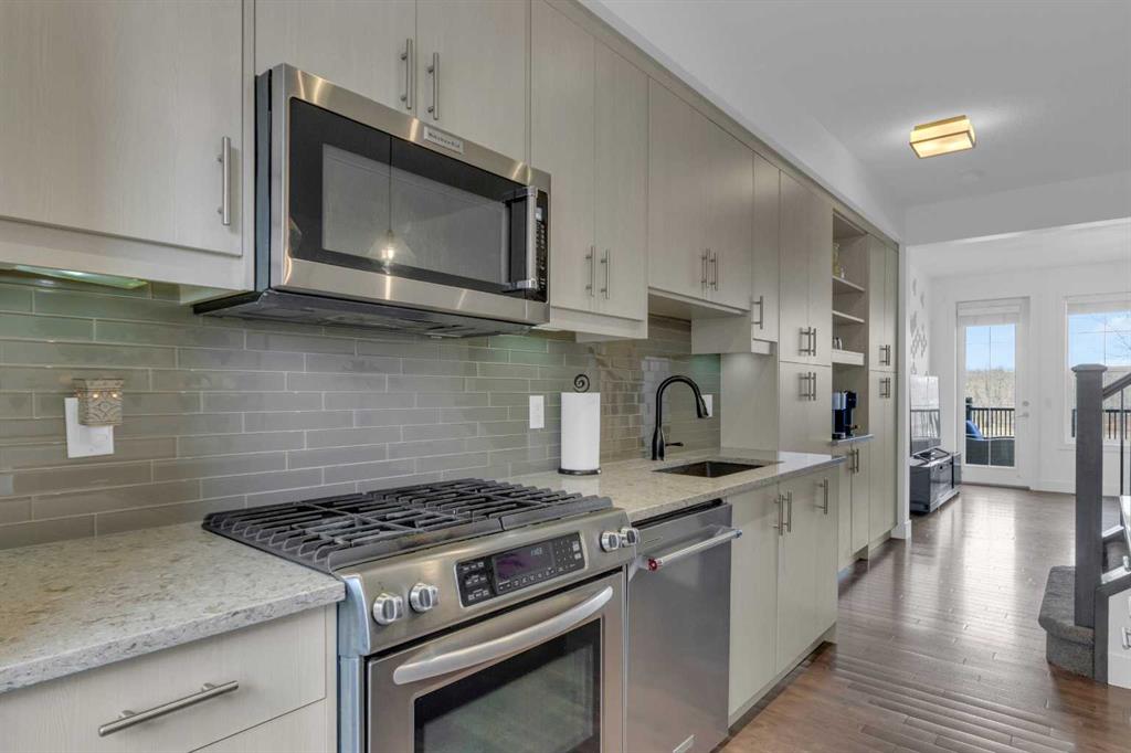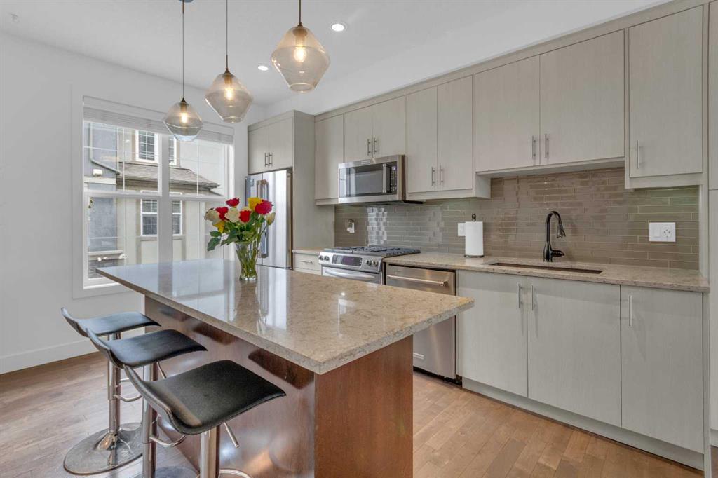OPEN HOUSE SAT MAY 2nd & SUN MAY 3rd from 2:00PM – 4:00PM*** This spotless, air-conditioned 1,363 sqft townhouse in Quarry Park is a fantastic find that perfectly balances comfort and practical living. From the moment you arrive, the great curb appeal and tidy landscaping catch your eye, leading you up to a cozy covered front porch, patio. The ground floor entry is all about convenience, offering a dedicated foyer that connects to the main floor office/den and a oversized single garage, which has plenty of extra room for a motorcycle, snowmobile, or a home gym, or a handy storage area to keep your gear organized. Moving up to the main level, the home feels bright and airy with a wide-open floor plan. Neutral paint and classic hardwood floors run throughout the space, and the living room is flooded with natural light from a large window, making it a great spot to kick back at the end of the day. If you like to host, the kitchen is a real standout, featuring a huge island with a breakfast bar, modern two-toned cabinets, and durable Quartz countertops and a walk up coffee bar. It’s fully equipped with stainless steel appliances and even has a nearby balcony with a built-in gas line for easy grilling. Upstairs, the layout is thoughtfully designed with two spacious bedrooms, each acting as their own private suites with a personal bathrooms, walk-in closets and sliding barn-style doors. A laundry room is also tucked away on this level so you don’t have to carry baskets up and down the stairs. The entire home feels solid and well-cared for. The location is just as impressive as the house itself. Plenty of street parking and You’re right across from the pathways that lead down to the Bow River, giving you easy access to nature. If your ambitious you can commute downtown via the river pathways. The neighborhood is friendly and active, with, tennis courts, a skating rink, the YMCA, and Quarry Park Office and Shopping distric. Plus, with quick access to Deerfoot and Stoney Trail, getting around the city is a breeze. It’s a move-in-ready home that offers a lot of value in a great community. Book your Showing today!