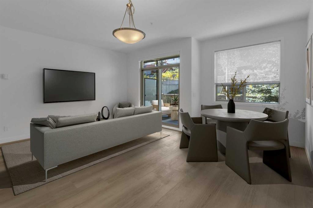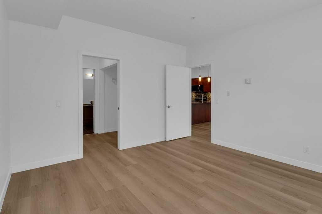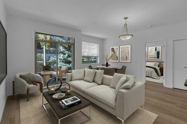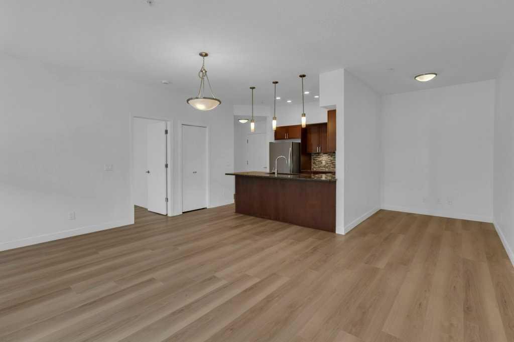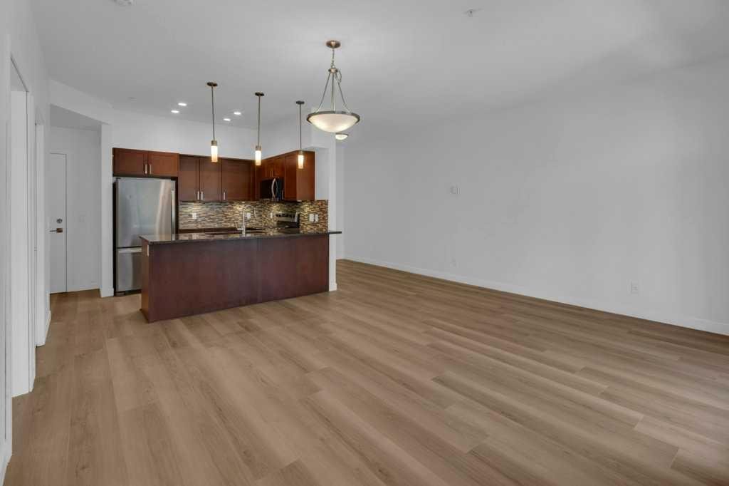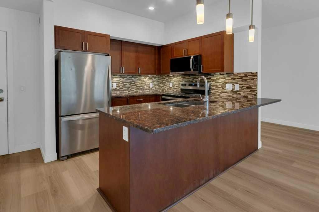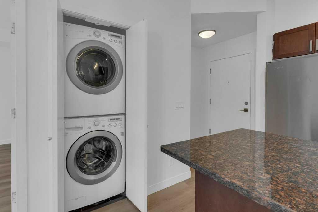 Spacious and bright renovated top floor apartment done in tasteful modern finishes. The neutral palette and open concept will work for whatever your personal design style is. This 1-bedroom apartment features beautiful new flooring, a patio door to the balcony off the living room, pendant and recessed lighting, stacked washer and dryer, and a beautiful tiled 4-piece bathroom with granite countertop. You will be delighted with the kitchen that features 4 stainless steel appliances, brand new stove, a tiled backsplash with under cabinet lighting and granite counter tops. Pendant lights hang above the kitchen peninsula that is complete with a breakfast bar. The dining room is setback with a large west facing window adjacent and open to the living room. The living room has patio door sliders that lead to the large sunny west facing balcony. Perfectly Set Up! A Home that you will love coming home to and be proud to entertain.
