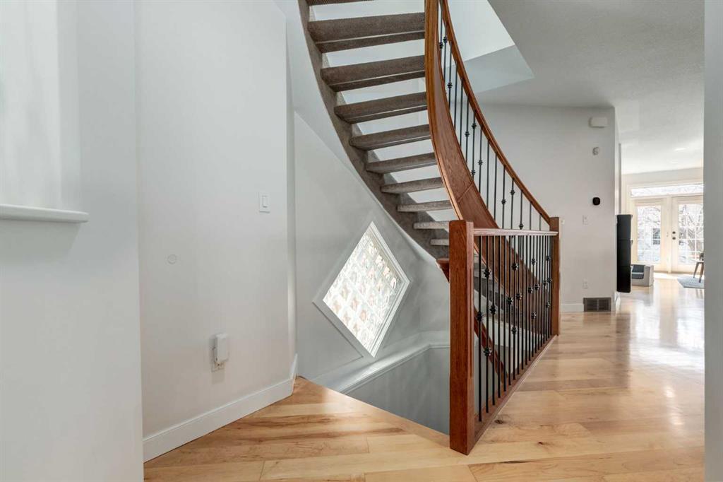 OPEN HOUSE SAT APRIL 25 FROM 2-4. Situated on a quiet, tree-lined street with a sunny SOUTH FACING back yard, this charming updated home exudes character and is sure to impress! Offering 2,535 SF of developed living space with 3+1 bedrooms, 3.5 bathrooms and a detached double garage. The main floor features a spacious tiled foyer, gorgeous maple hardwood, chic light fixtures and modern paint tones throughout. You will love the well equipped kitchen with granite countertops, sleek appliances (including a gas stove), center island, corner pantry and raised eating bar which opens to the dining and living room with cozy gas fireplace and access to the backyard. A den, powder room and mud room complete this space. Ascend the gorgeous open-riser staircase to the upper level where you will find a vaulted master retreat with 4 piece ensuite and two additional bedrooms which share a 4 piece bathroom and walk-in closet with custom built-ins. A conveniently located laundry room is also found on this level. The basement is finished with a media/family room, 4th bedroom, 3 piece bath and an abundance of storage. Don’t overlook the central AC for those hot summer days, Hunter Douglas blinds throughout, side entry door, low maintenance yard, many updated triple pane windows (in the basement, master and guest bedroom, ensuite and above the bathtub), newer roof and tankless hot water (2025). Fantastic inner city location within close proximity to downtown, schools, parks and an array of amenities…book your showing today!