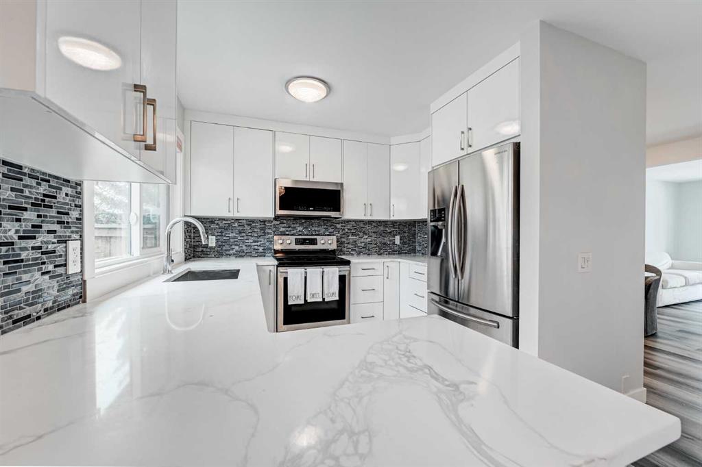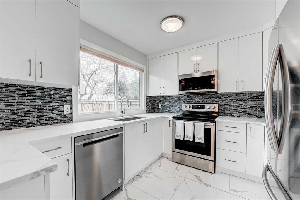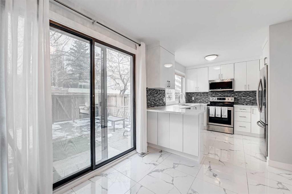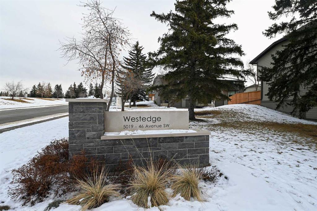 Welcome to 43 – 5019 46th Avenue SW. A beautifully upgraded, spacious, and light-filled home that is truly move-in ready. Thoughtful attention to detail is evident throughout, with flat ceilings, quartz countertops, luxury vinyl plank flooring throughout, upgraded vinyl windows, and newer high efficient furnace and hot water heater. Step outside to your private, fully fenced backyard—an inviting summer sanctuary complete with blooming flowers, climbing vines, and returning robins year after year. A built-in sprinkler system keeps the space effortlessly lush and green, while the charming rose garden out front adds instant curb appeal. Inside, the luxurious kitchen features soft-close cabinetry, Samsung stainless steel appliances, and generous counter space—perfect for everyday living and entertaining. The open-concept living and dining area is warm and welcoming, highlighted by a cozy electric fireplace framed in quartz. Custom wrought iron and wood railings add character and craftsmanship to the staircase. Upstairs, you’ll find two generously sized bedrooms, including a primary retreat with a two-piece ensuite. a large closet and mountain views. An open loft on this level offers a versatile space ideal for a home office, reading nook, or yoga area. The basement provides ample storage and convenient step-free access to the heated attached garage. Completing the picture are quiet neighbors on both sides and a safe, friendly complex where residents genuinely look out for one another—creating a peaceful, welcoming place to call home. Call today for you private viewing!