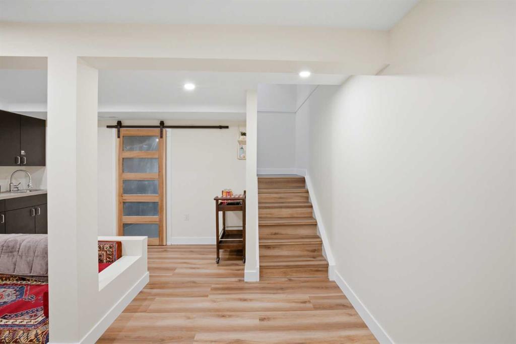 BEAUTIFULLY UPDATED | BACKS ONTO A GREEN SPACE with a PRIVATE FENCED WEST BACKYARD | 3 BEDROOMS UP with a FULLY DEVELOPED BASEMENT | 2 PARKING STALLS SIDE BY SIDE | MOVE-IN READY. Thoughtful updates and a quiet green space backdrop define this well-maintained townhome tailored for comfortable everyday living. Set with a private west-facing backyard backing onto mature trees, the outdoor area feels peaceful and connected to nature while remaining easy to manage. A bright main level showcases upgraded LVP flooring paired with a neutral colour palette that carries a cohesive look throughout. White cabinetry, an upgraded backsplash and stainless steel appliances shape a refreshed kitchen designed for both efficiency and durability. An adjacent dining area is elevated by a designer light fixture, bringing a refined touch to both daily meals and gatherings. Sit back and relax in the spacious living room with patio sliders opening directly to the yard, creating a natural transition for indoor-outdoor living. A well-positioned powder room completes this level with everyday practicality. Upstairs, the primary bedroom features dual closets that streamline storage and simplify daily routines. Two additional bedrooms adapt easily for family, guests or workspace needs, while a full 4-piece bathroom serves the level. Recently replaced carpet in 2023 introduces a fresh, move-in ready feel underfoot. A fully finished basement expands living space with a large rec room and wet bar, making movie nights and casual entertaining easy, while additional storage keeps seasonal items neatly tucked away. Outdoor living continues with a patio designed for gathering and unwinding, all within a fully fenced yard that offers a secure setting for kids and pets. Two assigned parking stalls positioned side by side add everyday convenience right out front. A low-maintenance lifestyle comes naturally in this townhome complex, freeing up time to enjoy surrounding amenities. Proximity to shopping, restaurants, transit and the LRT line keeps daily errands and commuting straightforward, while nearby parks and schools enhance day-to-day living. Major routes are easily accessed for efficient travel across the city, and the airport is approximately 10 minutes away, adding to the overall convenience of this well-connected location.