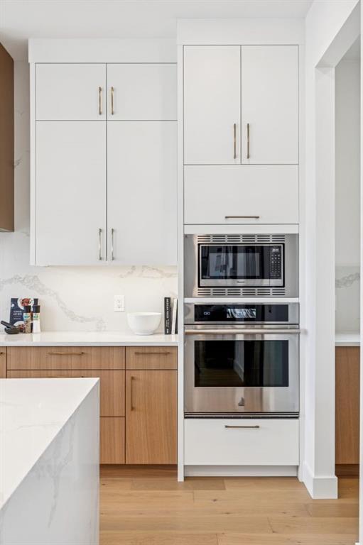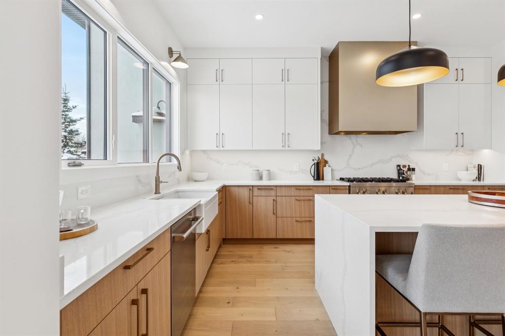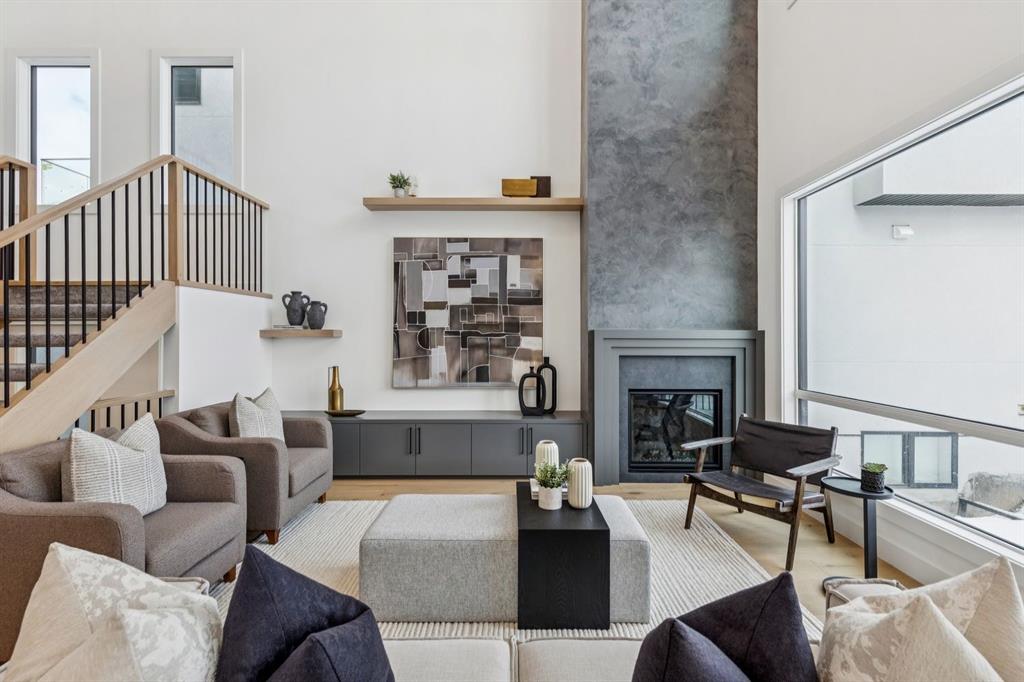 Welcome to this luxury modern residence by A|K Design & Development, perfectly situated in a premier cul-de-sac surrounded by high-end homes in prestigious Elveden Park. Offering over 3,300 sq ft above grade, this contemporary masterpiece delivers timeless design, upscale finishes, and exceptional functionality. The grand open-concept main floor features a dramatic open-to-below living room with custom built-ins and a striking plaster fireplace. The gourmet kitchen is the centrepiece of the home, showcasing a large quartz island, designer gold range hood, high-end JennAir appliances, and a walk-through pantry with direct access to the heated triple attached garage. An exceptional mudroom with built-in lockers and a full closet provides outstanding everyday convenience. A dedicated main-floor office and elegant design details complete the level. An impressive open-rise staircase leads to the upper floor, where a spacious bonus room anchors the family space. The luxurious primary retreat is designed to impress with a tray ceiling, private lounge area, and an oversized walk-in closet. The spa-inspired ensuite offers double vanities, a large walk-in shower, a soaker tub, and designer feature walls—creating a serene sanctuary for relaxation. Two additional bedrooms, each with its own walk-in closet, share a beautifully appointed bathroom with double vanities. The fully developed basement is crafted for entertainment and wellness, featuring a large family room with built-ins and theatre wiring, a rec area, a stylish wet bar with wine cooler, and a separate gym with a full mirrored wall. Zoned heated floors add comfort throughout. Additional highlights include: heated triple attached garage, smart-home readiness, rough-ins for A/C, Vacuflo, and an alarm system. A rare opportunity to own a luxury home in one of Calgary’s most exclusive neighbourhoods, surrounded by parks, top-rated schools, and upscale amenities.