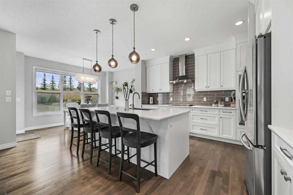 Welcome to 43 Nolancrest Manor NW in the vibrant community of Nolan Hill—a perfect home for families looking for comfort, space, and a true sense of community. With over 2,500 sq ft of thoughtfully designed living space, this beautifully maintained, original-owner Trico Homes 2-storey is ready for your family to move right in. Step inside to a bright, open main floor with gleaming hardwood floors and a spacious front entry—ideal for busy mornings. The chef-inspired kitchen features a large island, quartz countertops, sleek white cabinetry, stainless steel appliances, and a walk-through pantry for easy grocery drop-offs. The sunny dining area opens to a southwest-facing deck, while the living room with a cozy gas fireplace sets the stage for family gatherings. A versatile den with dual sliding doors makes the perfect home office or homework space room, and powder room plus a mudroom complete this functional main level. Upstairs, the primary suite is a true retreat, with dual doors, a generous walk-in closet, and a spa-like ensuite featuring dual sinks, a soaker tub, and an oversized glass shower. Two more spacious bedrooms, a central bonus room (perfect for family hangouts or a kids’ playroom), upper-level laundry with extra storage, and a full 4-piece bathroom provide comfort and convenience for the whole family. The unfinished basement offers endless possibilities—whether you dream of a rec room, home gym, or teen space. Outside, the fenced southwest backyard is made for family fun: a deck and stone patio with fire pit, plenty of play space for kids and pets, raised garden beds, and direct access to green space and pathways. Also, there is direct access to the playground from the backyard! Upgrades include central A/C, water softener, central vacuum, gemstone lighting, plus newer siding and shingles for peace of mind. Located on a quiet street in Nolan Hill, your family will love being close to parks, pathways, shopping such as T&T, Walmart, Shopper’s Drug Mart, Costco, Sobey’s, Co-op, YMCA is 15 minutes away. Transit, and future schools—including a new Catholic K–9 School breaking ground soon. This is more than just a house—it’s a place your family can call home.