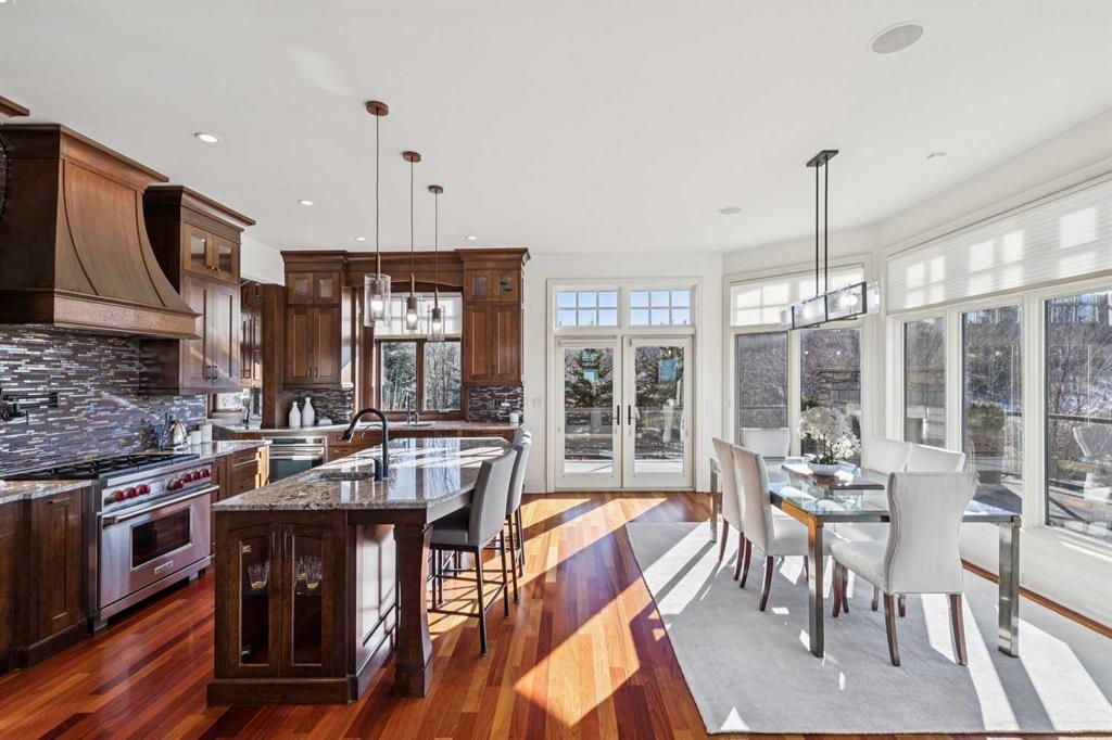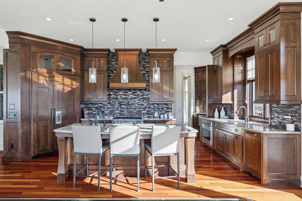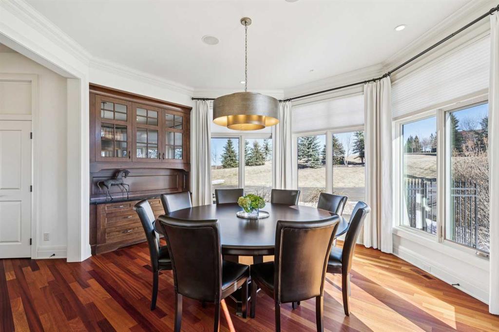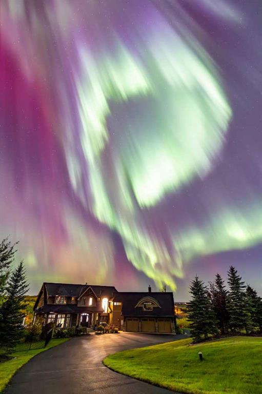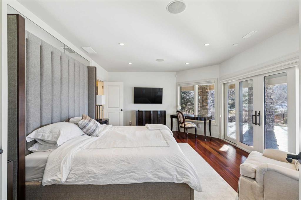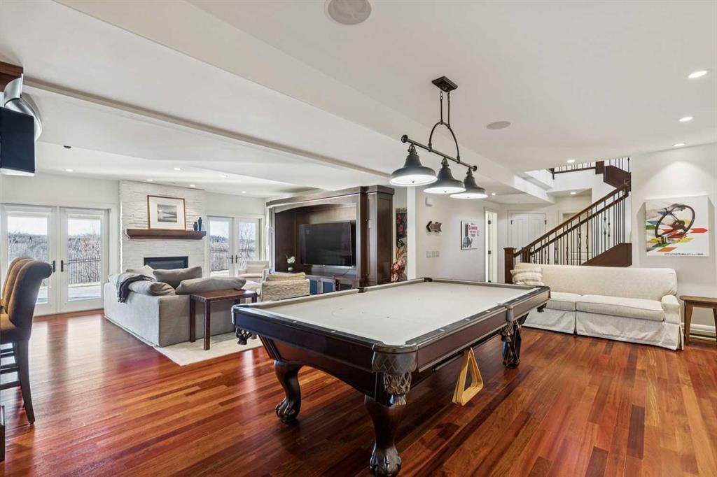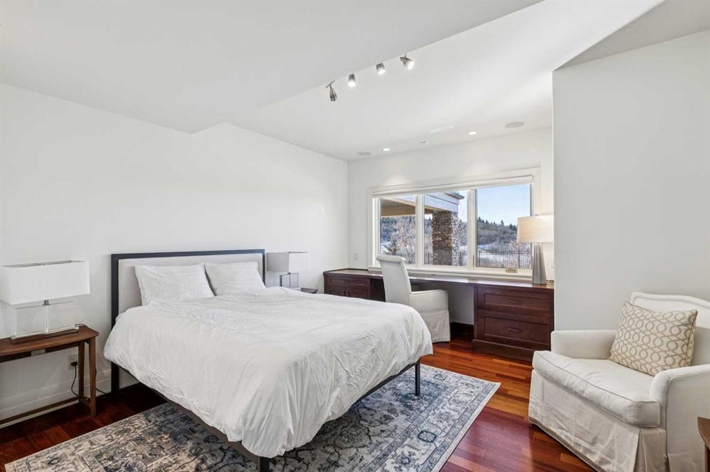 Set on over 4.5 acres this extraordinary John Haddon-designed estate captures commanding mountain and city views from nearly every vantage point. Backing onto a protected environmental reserve and located within Foothills County’s celebrated “Dark Sky Country” nocturnal preserve. The property offers an unparalleled blend of privacy, luxury, and natural beauty while remaining remarkably connected. Calgary’s Stoney Trail is less than 10 minutes away, Priddis Greens Golf Course is nearby & the Rocky Mountains are an easy drive from your doorstep. A grand solid oak entry door welcomes you into a breathtaking main level defined by soaring 10-foot ceilings and cinematic west-facing views. Timeless cherry oak hardwood flooring, exquisite millwork, and custom cabinetry establish a tone of refined craftsmanship throughout. The chef’s kitchen is a true showpiece, featuring a fully integrated Sub-Zero refrigerator, iconic Wolf gas range + pot filler, and an impressive island with breakfast nook positioned to capture panoramic vistas along the back of the home. Multiple access points lead to the expansive deck, where a stunning gas/wood-burning outdoor fireplace creates the ultimate setting for year-round entertaining. The formal dining room is elegantly situated at the front of the home, encircled by panoramic windows and complemented by direct access to a walk-in butler’s pantry. An elongated office/den provides the flexibility and tranquility ideal for working from home or enjoying a quiet retreat. A striking open-riser staircase leads to the thoughtfully designed upper level. Three spacious ensuite bedrooms each feature walk-in closets, while the show-stopping primary suite offers a private sanctuary complete with dual expansive walk-in closets, separate vanities, a luxurious soaker tub, and a spa-inspired body-jetted shower. Above the garage, a one-of-a-kind private illegal suite with direct access to the laundry room offers the perfect arrangement for a nanny, housekeeper, or extended family. The walkout basement fully capitalizes on the home’s gently sloping lot and spectacular western exposure. An additional bedroom includes its own walk-in closet and full ensuite, a gym—currently utilized as a bedroom—opens through sliding doors to an elevated hot tub perfectly positioned for breathtaking sunset mountain views. A sauna, and steam shower—creating a true private resort experience. Designed for recreation and relaxation, the lower level features 9-foot ceilings, in-floor heating, a wet bar with beer tap, pool table and media area. Additional highlights include epoxy-finished floors in the heated four-car garage, beautifully landscaping enclosed by elegant iron fencing, a comprehensive HVAC upgrade within the past four years. This is a rare opportunity to own a timeless architectural masterpiece where luxury estate living meets untouched nature & surroundings within proximity to the numerous amenities. Property Video under Virtual Tour.