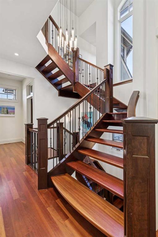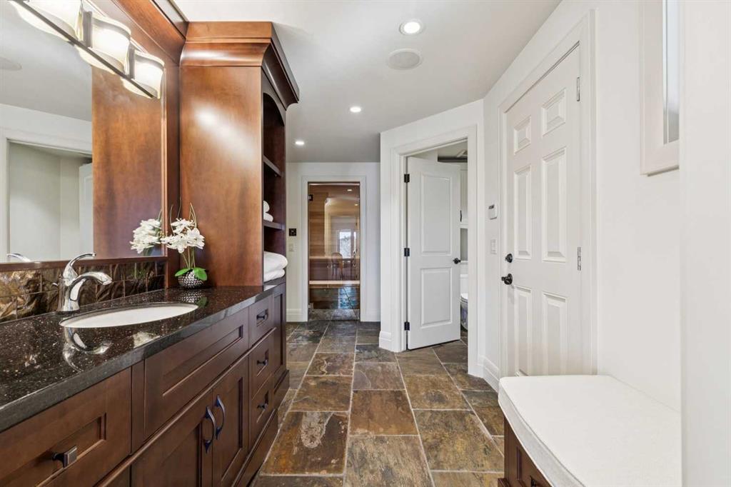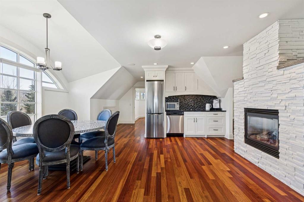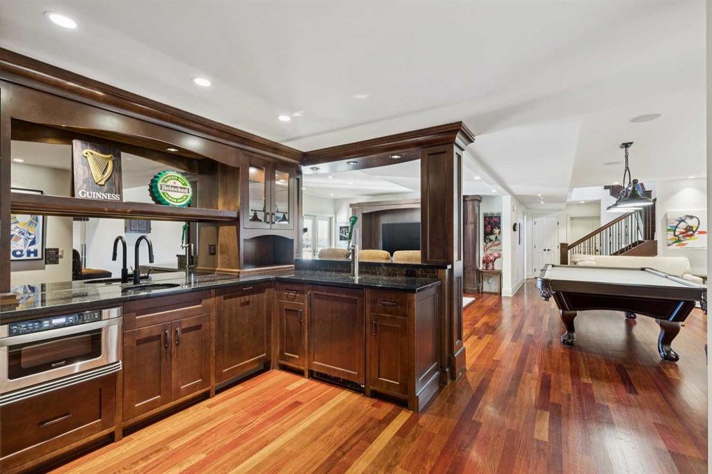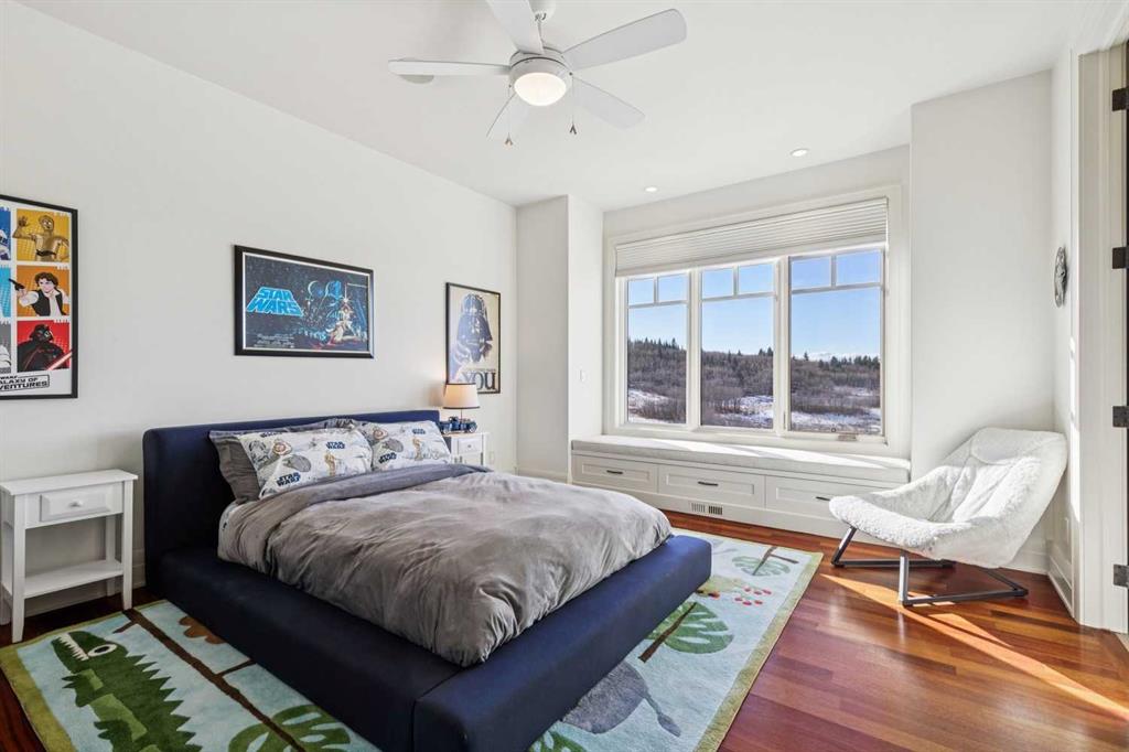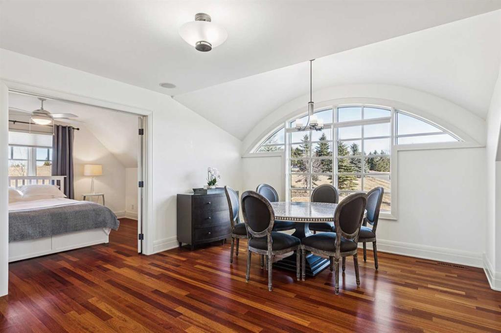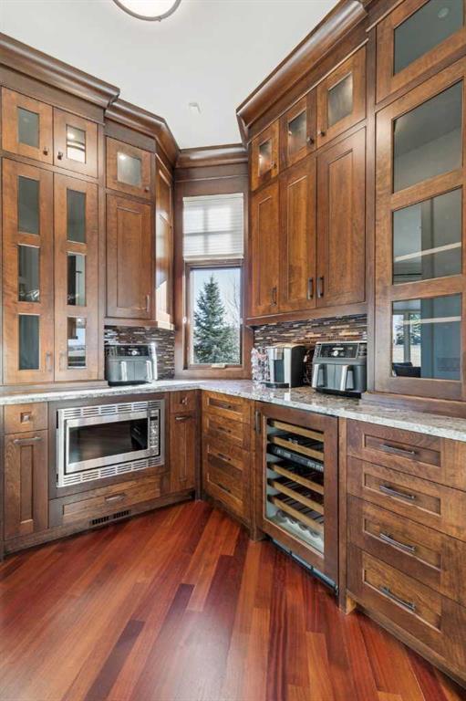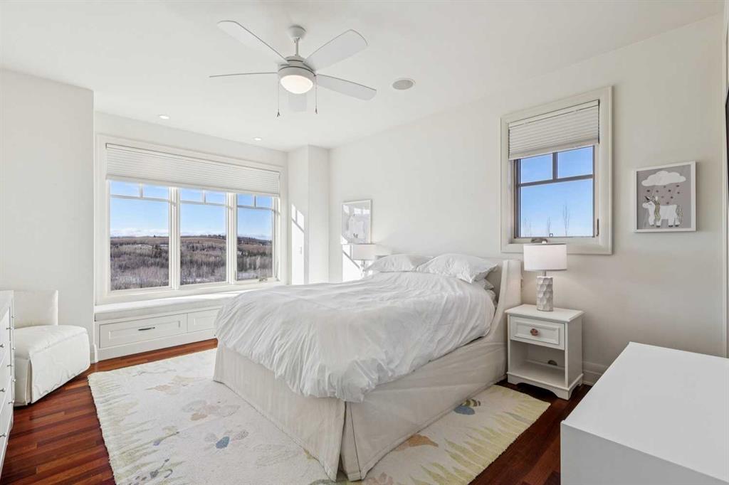 Set on over 4.5 acres this extraordinary John Haddon-designed estate captures commanding mountain and city views from nearly every vantage point. Backing onto a protected environmental reserve and located within Foothills County’s celebrated “Dark Sky Country” nocturnal preserve. The property offers an unparalleled blend of privacy, luxury, and natural beauty while remaining remarkably connected. Calgary’s Stoney Trail is less than 10 minutes away, Priddis Greens Golf Course is nearby & the Rocky Mountains are an easy drive from your doorstep. A grand solid oak entry door welcomes you into a breathtaking main level defined by soaring 10-foot ceilings and cinematic west-facing views. Timeless cherry oak hardwood flooring, exquisite millwork, and custom cabinetry establish a tone of refined craftsmanship throughout. The chef’s kitchen is a true showpiece, featuring a fully integrated Sub-Zero refrigerator, iconic Wolf gas range + pot filler, and an impressive island with breakfast nook positioned to capture panoramic vistas along the back of the home. Multiple access points lead to the expansive deck, where a stunning gas/wood-burning outdoor fireplace creates the ultimate setting for year-round entertaining. The formal dining room is elegantly situated at the front of the home, encircled by panoramic windows and complemented by direct access to a walk-in butler’s pantry. An elongated office/den provides the flexibility and tranquility ideal for working from home or enjoying a quiet retreat. A striking open-riser staircase leads to the thoughtfully designed upper level. Three spacious ensuite bedrooms each feature walk-in closets, while the show-stopping primary suite offers a private sanctuary complete with dual expansive walk-in closets, separate vanities, a luxurious soaker tub, and a spa-inspired body-jetted shower. Above the garage, a one-of-a-kind private illegal suite with direct access to the laundry room offers the perfect arrangement for a nanny, housekeeper, or extended family. The walkout basement fully capitalizes on the home’s gently sloping lot and spectacular western exposure. An additional bedroom includes its own walk-in closet and full ensuite, a gym—currently utilized as a bedroom—opens through sliding doors to an elevated hot tub perfectly positioned for breathtaking sunset mountain views. A sauna, and steam shower—creating a true private resort experience. Designed for recreation and relaxation, the lower level features 9-foot ceilings, in-floor heating, a wet bar with beer tap, pool table and media area. Additional highlights include epoxy-finished floors in the heated four-car garage, beautifully landscaping enclosed by elegant iron fencing, a comprehensive HVAC upgrade within the past four years. This is a rare opportunity to own a timeless architectural masterpiece where luxury estate living meets untouched nature & surroundings within proximity to the numerous amenities. Property Video under Virtual Tour.