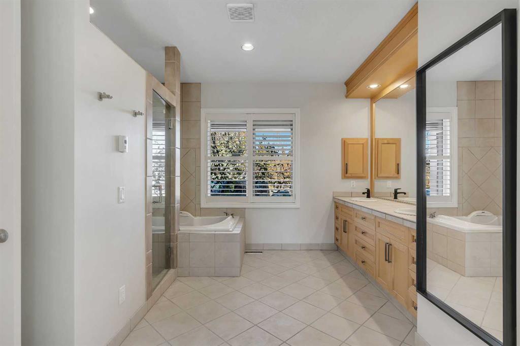 The chef inspired kitchen features backlit cabinetry, stainless steel appliances (new refrigerator / gas range) and a classic tile backsplash. Adjacent to the kitchen is a spacious dining area, enhanced by a contemporary light fixture and direct access to an impressive 3 season sunroom – perfect for enjoying all of Calgary’s seasons!
