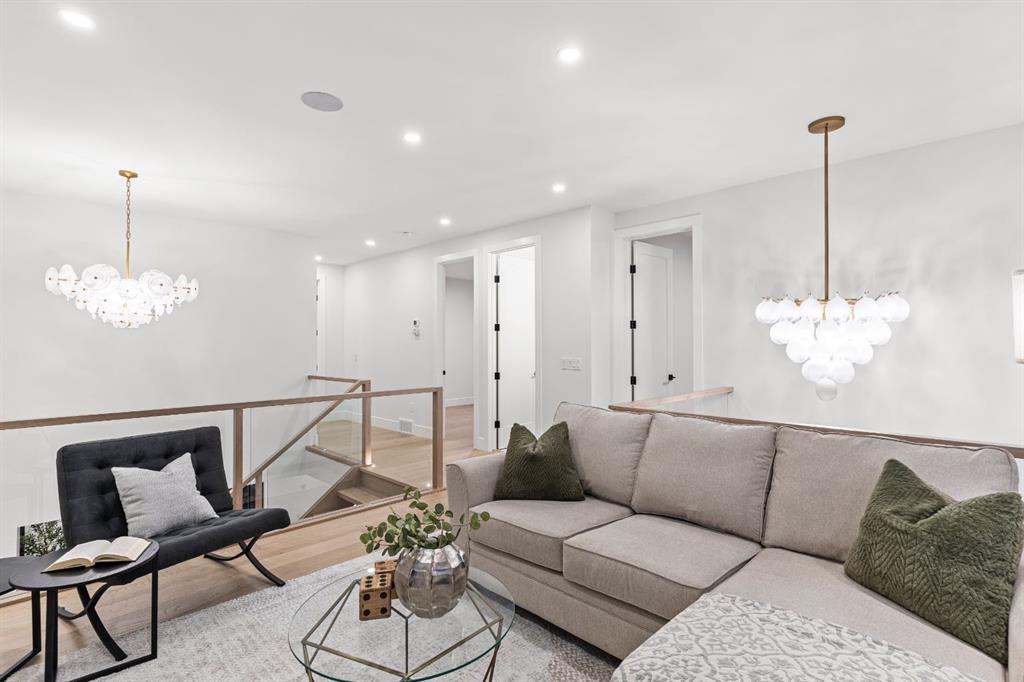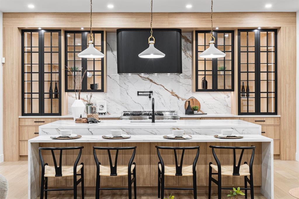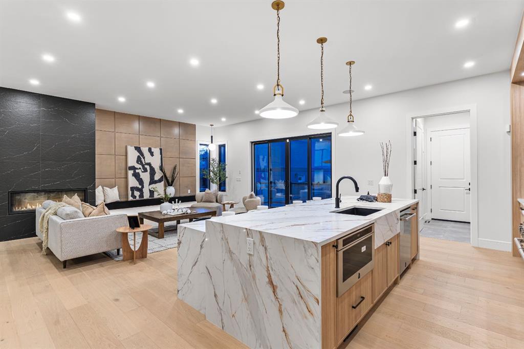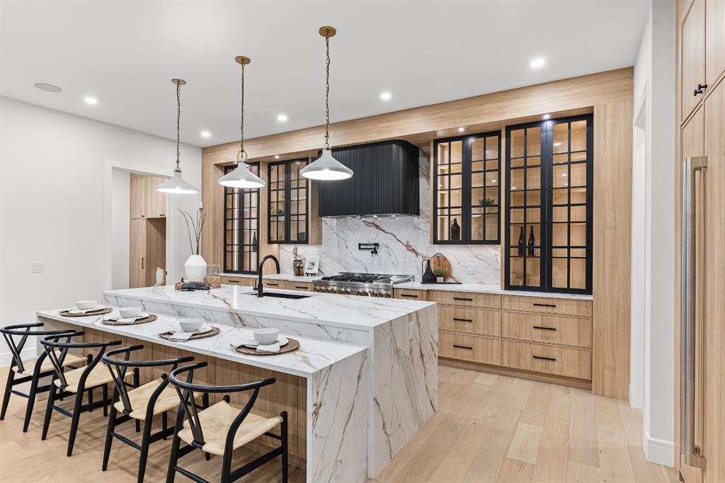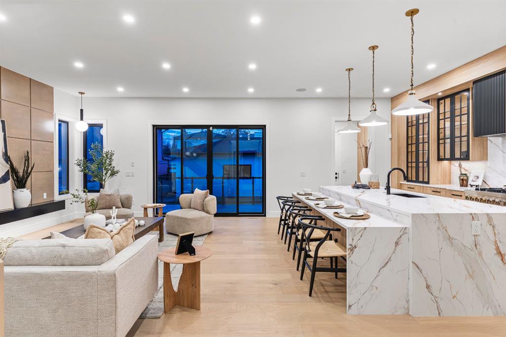 Designed with intention and built with precision, this custom two-storey home in Winston Heights showcases over 3,900 square feet of luxury living where craftsmanship meets modern design. As you enter, the main floor immediately impresses with soaring 10-foot ceilings, open-to-below ceilings, a gorgeous chandelier, wide-plank hardwood, and an abundance of natural light that fills every corner. The front foyer opens into a thoughtfully designed office enclosed by glass walls, with large windows creating a bright and quiet workspace. Just beyond, the formal dining area provides an elegant setting for gatherings, seamlessly connected to a spice kitchen and full butler’s pantry for added storage and prep space. The chef’s kitchen is the centrepiece of the home, featuring Jenn-Air built-in appliances, a 48” 6-burner Jenn-Air stove, an oversized multi-tier quartz island, quartz backsplash, undermount and inside cabinet lighting, and a striking custom range hood. It opens to a spacious living room anchored by a sleek gas fireplace, custom panelled feature wall with wood grid detailing and oversized windows overlooking the deck and backyard. A stylish powder room with custom San Marcopolo Luxury Oro waterproof paint and a large mudroom with built-ins complete the main level. Heading upstairs from the beautiful maple hardwood open riser stairs, a central family room provides a relaxed lounge area with large windows and built-ins separating the bedrooms for added privacy. The primary suite is a retreat of its own, complete with an oversized walk-in closet featuring custom millwork and access to the laundry room. The ensuite is finished to perfection with a freestanding tub, double vanities, a makeup vanity, a steam shower with body jets, and heated floors. Two additional bedrooms offer generous space, each with built-in closets, and share a full bathroom. The fully developed basement extends the living space with a large open recreation room ideal for entertaining, a custom wet bar, a private gym, a full bathroom, and an additional bedroom perfect for guests. Finishes are carried throughout with the same high-quality craftsmanship, lighting, and millwork found upstairs. Outside, the home sits on a landscaped lot with a spacious rear deck and an oversized three-car detached garage offering ample parking and storage. Additional upgrades include rough-ins for built-in interior and exterior speakers, A/C rough-in, and a security system including exterior cameras. The location is exceptional, steps from Winston Golf Club, surrounded by schools, parks, and playgrounds, and just minutes from downtown, and Deerfoot Trail. This home blends refined design, comfort, and convenience in one of Calgary’s most sought-after inner-city communities. Call today to book your private tour.