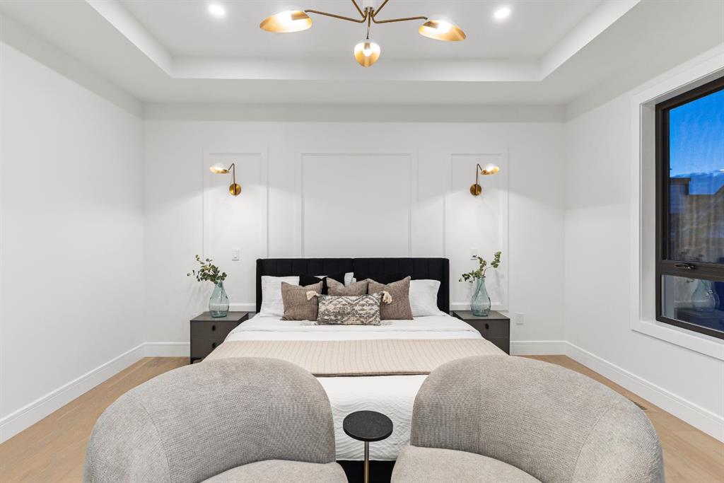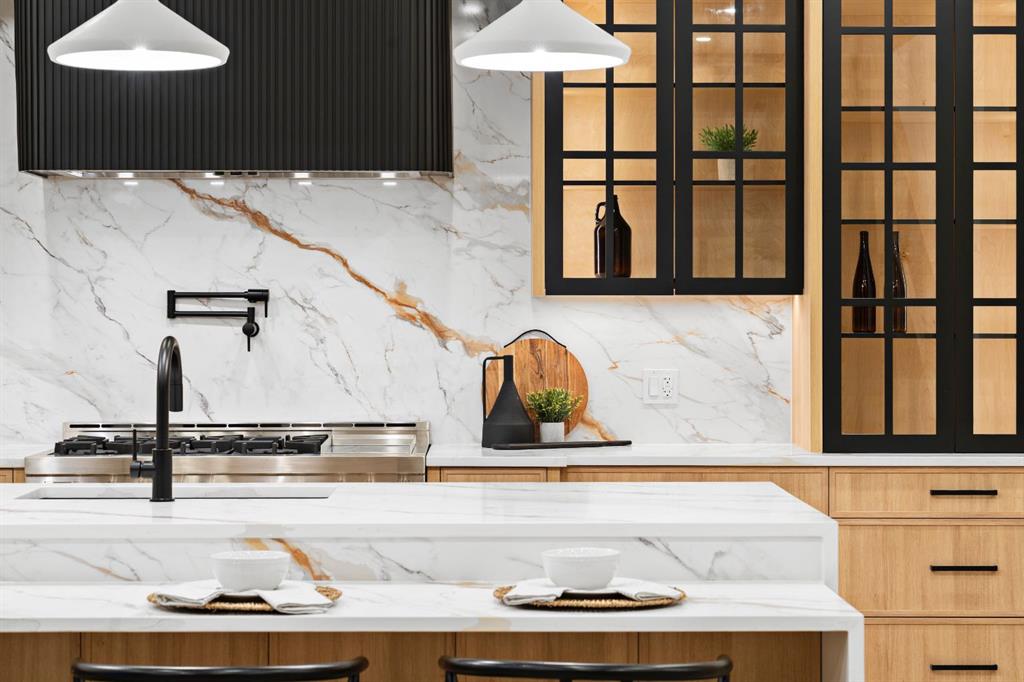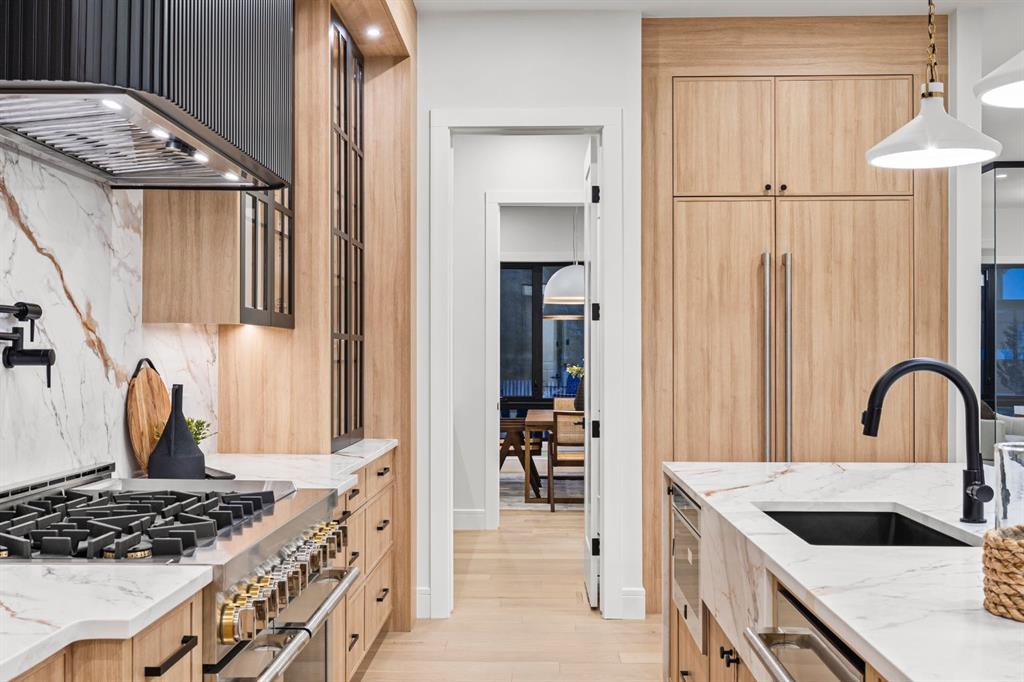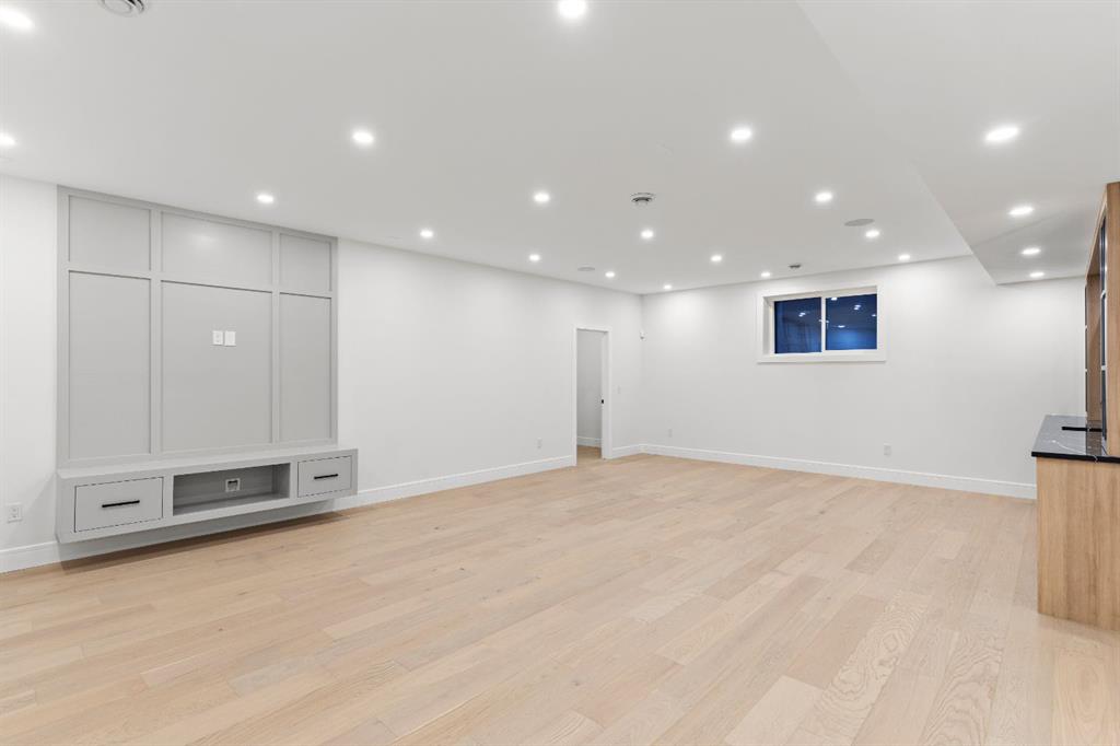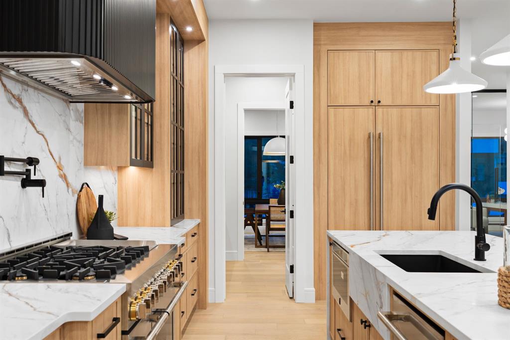 Designed with intention and built with precision, this custom two-storey home in Winston Heights showcases over 3,900 square feet of luxury living where craftsmanship meets modern design. As you enter, the main floor immediately impresses with soaring 10-foot ceilings, open-to-below ceilings, a gorgeous chandelier, wide-plank hardwood, and an abundance of natural light that fills every corner. The front foyer opens into a thoughtfully designed office enclosed by glass walls, with large windows creating a bright and quiet workspace. Just beyond, the formal dining area provides an elegant setting for gatherings, seamlessly connected to a spice kitchen and full butler’s pantry for added storage and prep space. The chef’s kitchen is the centrepiece of the home, featuring Jenn-Air built-in appliances, a 48” 6-burner Jenn-Air stove, an oversized multi-tier quartz island, quartz backsplash, undermount and inside cabinet lighting, and a striking custom range hood. It opens to a spacious living room anchored by a sleek gas fireplace, custom panelled feature wall with wood grid detailing and oversized windows overlooking the deck and backyard. A stylish powder room with custom San Marcopolo Luxury Oro waterproof paint and a large mudroom with built-ins complete the main level. Heading upstairs from the beautiful maple hardwood open riser stairs, a central family room provides a relaxed lounge area with large windows and built-ins separating the bedrooms for added privacy. The primary suite is a retreat of its own, complete with an oversized walk-in closet featuring custom millwork and access to the laundry room. The ensuite is finished to perfection with a freestanding tub, double vanities, a makeup vanity, a steam shower with body jets, and heated floors. Two additional bedrooms offer generous space, each with built-in closets, and share a full bathroom. The fully developed basement extends the living space with a large open recreation room ideal for entertaining, a custom wet bar, a private gym, a full bathroom, and an additional bedroom perfect for guests. Finishes are carried throughout with the same high-quality craftsmanship, lighting, and millwork found upstairs. Outside, the home sits on a landscaped lot with a spacious rear deck and an oversized three-car detached garage offering ample parking and storage. Additional upgrades include rough-ins for built-in interior and exterior speakers, A/C rough-in, and a security system including exterior cameras. The location is exceptional, steps from Winston Golf Club, surrounded by schools, parks, and playgrounds, and just minutes from downtown, and Deerfoot Trail. This home blends refined design, comfort, and convenience in one of Calgary’s most sought-after inner-city communities. Call today to book your private tour.