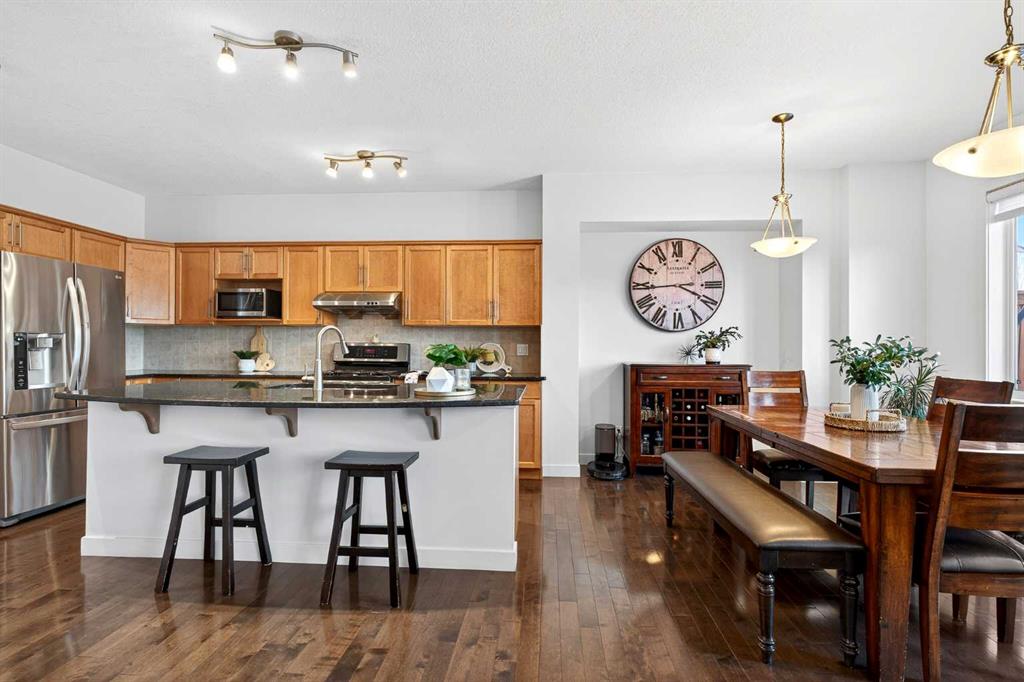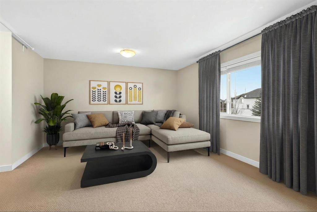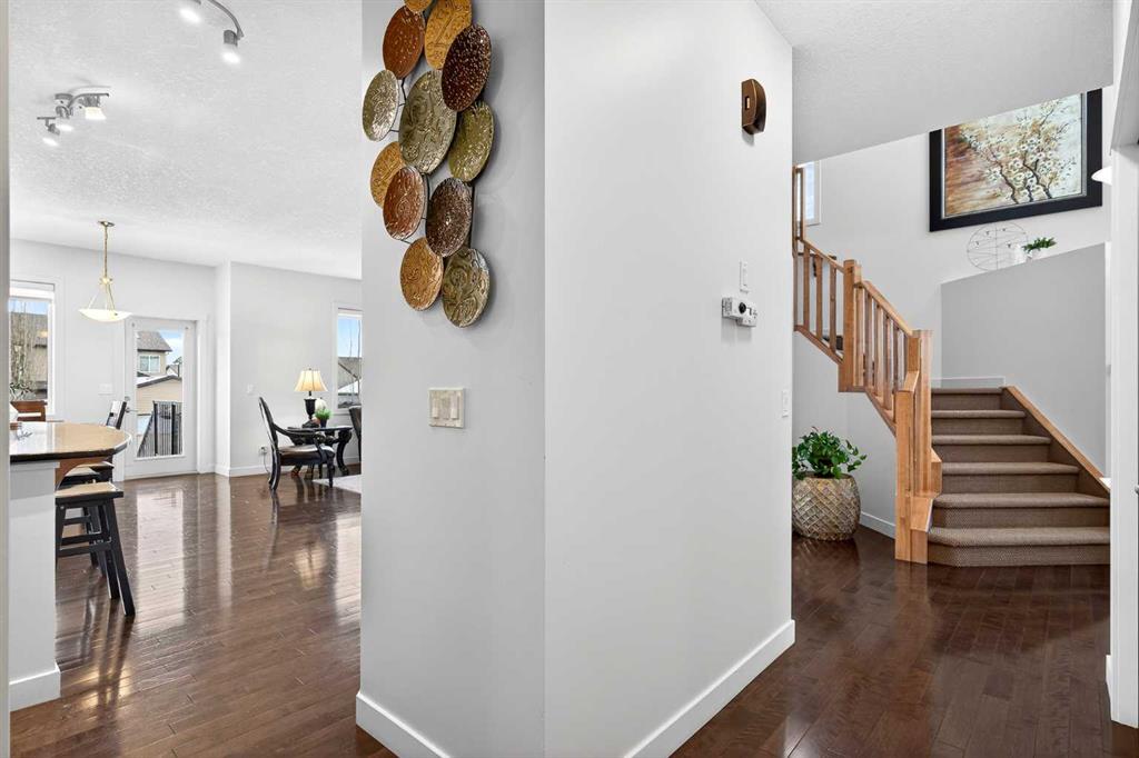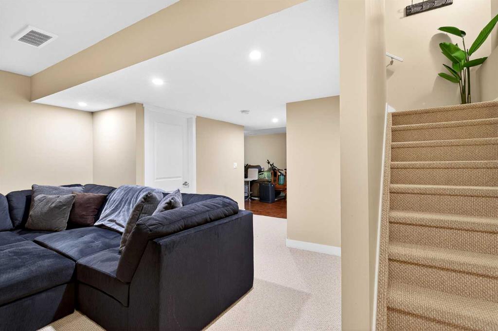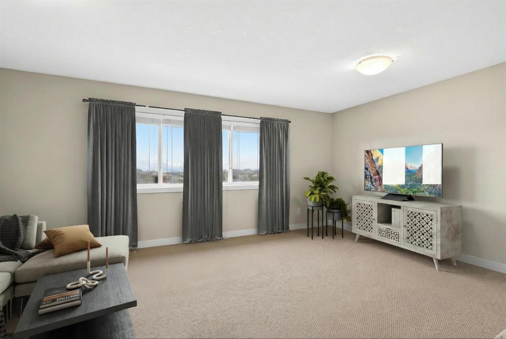 This light-filled home offers 3,687 sq. ft. of total finished living space designed for everyday living and flexibility. The main floor welcomes you with an open-to-below entry that brings in abundant natural light. A versatile front office can also function as a secondary seating area, while the living room features a gas fireplace that anchors the space.