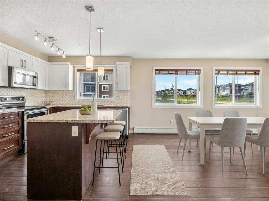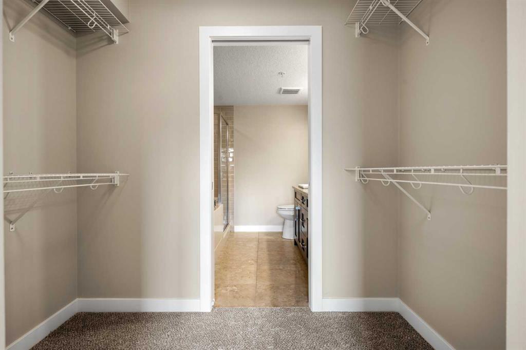 This stunning corner unit in the Sage Hill community is truly remarkable. Located in the newest building and boasting one of the largest layouts, it features a spacious 2-bedroom, 2-bathroom design with 9-foot ceilings and upgraded stainless steel appliances. Upon entering, you are welcomed by a sizable foyer with ample storage, leading into the main living area. The well-designed floor plan showcases an open kitchen with granite countertops and a large island that connects to the living room. Abundant natural light streams in from the west-facing windows, creating a warm and inviting atmosphere. This quiet home offers an attractive layout, with the two bedrooms positioned on opposite sides for added privacy. The primary bedroom boasts a generous walk-through closet leading to one of the most impressive five-piece ensuites you’ve ever seen, featuring a soaker tub, a stand-up shower, and dual vanity sinks that add both elegance and practicality to your daily routine. The second bedroom is conveniently located next to the four-piece bathroom. Additional features include heated underground parking and storage, conveniently situated just across from the elevators. Almost all essential amenities, including Grocery stores, Tim Hortons, Shoppers Drug Mart, fitness facilities, and restaurants, are located just across the street. Immediate possession is available for this amazing unit! The affordable condo fees cover everything except electricity.