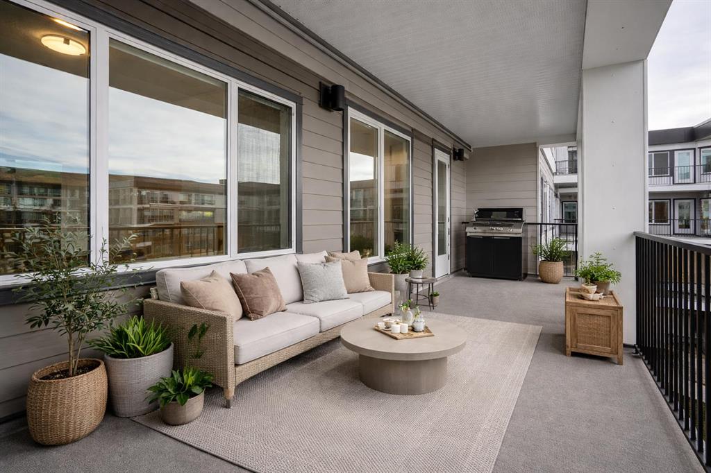 The inviting living room is ideal for relaxing or entertaining and opens onto an impressive 30-foot west-facing balcony, complete with soffit lighting and a gas hookup for your BBQ—perfect for enjoying outdoor living, imagine morning coffee in the sunshine and relaxing sunsets in the evening.