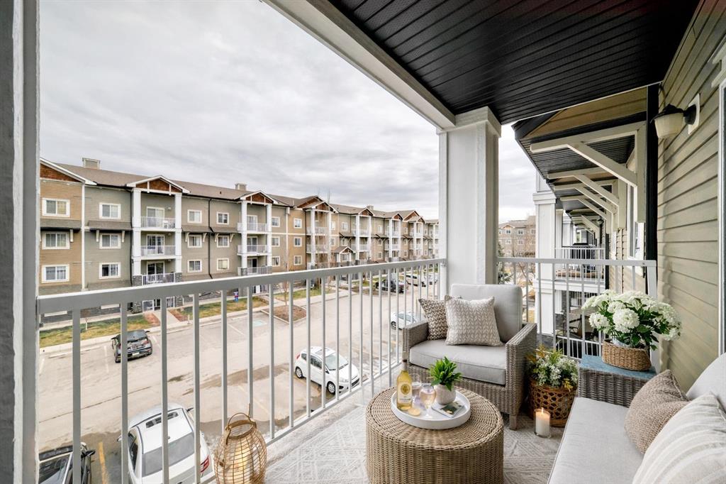 Welcome to Prestwick Place in McKenzie Towne—an updated, contemporary apartment-style condo offering 841 sq. ft. of comfortable, open-concept living just minutes to schools, parks, and shopping. Hardwood flooring flows through the main living space, where a bright open kitchen features stainless steel appliances, and an island. The spacious living room is anchored by a cozy fireplace with direct access to the balcony—perfect for morning coffee or evening downtime. The thoughtful layout includes two generous bedrooms, with the primary including a walk-in closet and 4-piece ensuite, plus a versatile den ideal for a home office or storage. Recent updates include fresh paint, new countertops, a newer dishwasher, and a newer microwave/hood fan. Finished with in-suite laundry. One indoor titled parking stall with a storage locker. Some photos have been virtually staged to give you an idea of what you can do with this great space. Condo fees: $461.43.