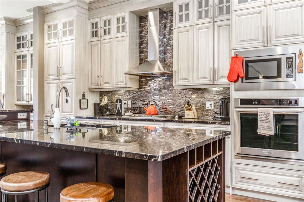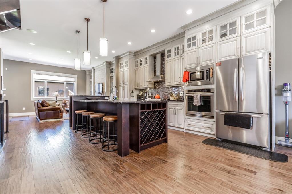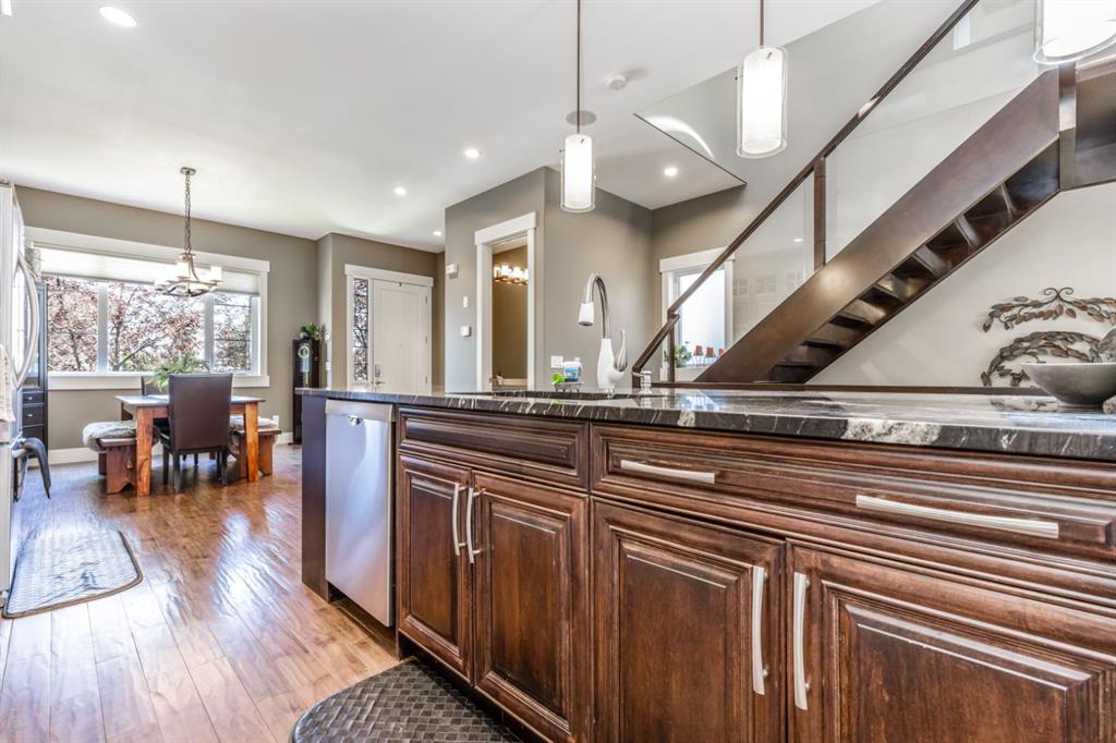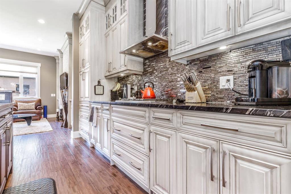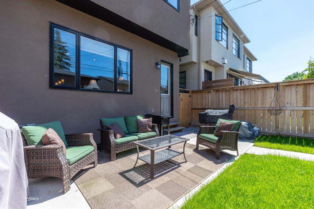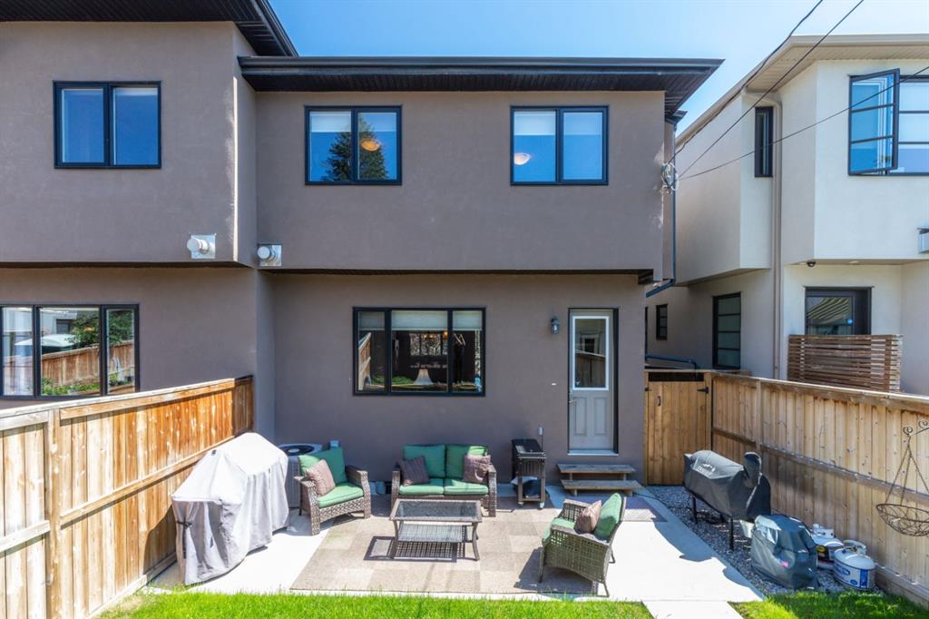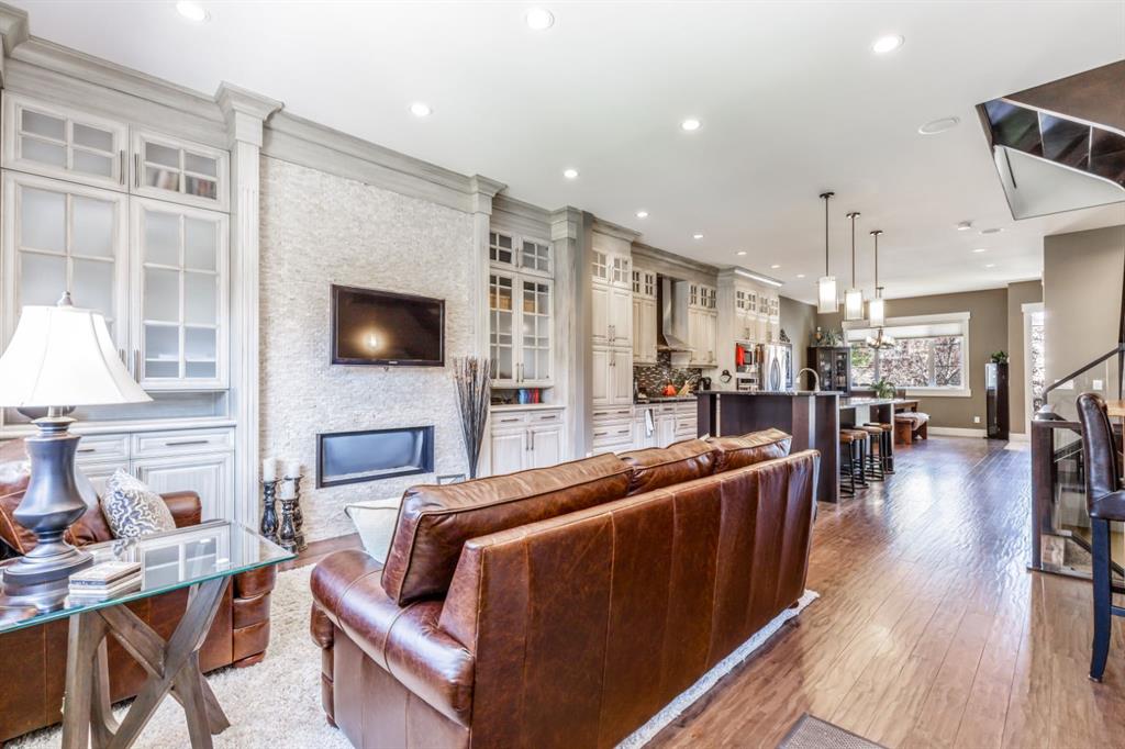 Absolutely stunning attached infill located in the heart of Altadore, offered at an exceptional price with immediate possession available. This beautifully designed home features an open-concept main floor with soaring 10’ ceilings, hand-scraped engineered hardwood flooring, and floor-to-ceiling kitchen cabinetry topped with granite countertops. The spacious island is perfect for entertaining, complemented by upgraded stainless steel appliances, including a built-in wall oven and gas cooktop, along with ample storage throughout. The main level also offers a generous front dining area, a bright and inviting living room with a gas fireplace, and a functional rear mudroom. Upstairs, the well-appointed layout includes a luxurious primary retreat with a tow sided fireplace and 5-piece ensuite featuring a soaker tub and steam shower. Two additional bedrooms, a full bathroom, and a thoughtfully designed laundry room. The fully finished basement adds even more living space with a large recreation room, wet bar, fourth bedroom, full bathroom, and additional storage. Premium features include built-in speakers throughout, on-demand hot water, heated basement floors, and central air conditioning for year-round comfort. Enjoy the sunny west-facing backyard complete with a concrete patio—perfect for summer evenings—as well as a double detached garage. Ideally situated just steps from River Park, top-rated restaurants, shopping, and transit. Opportunities like this are rare—schedule your private showing before it’s gone.