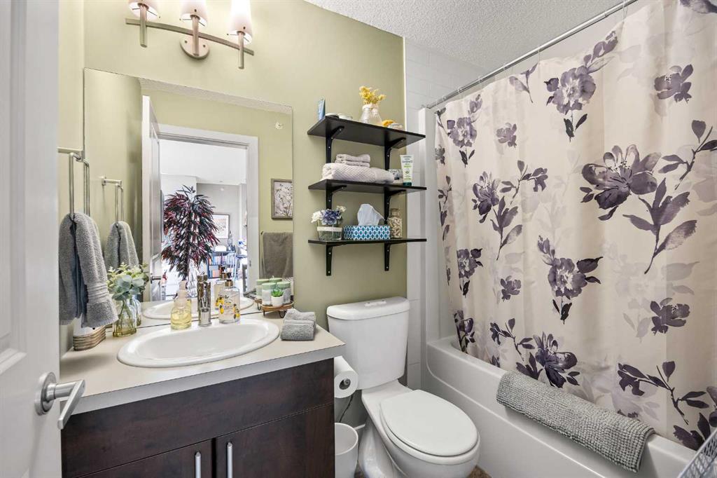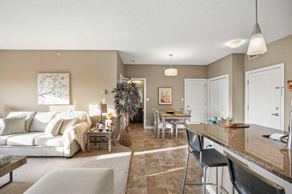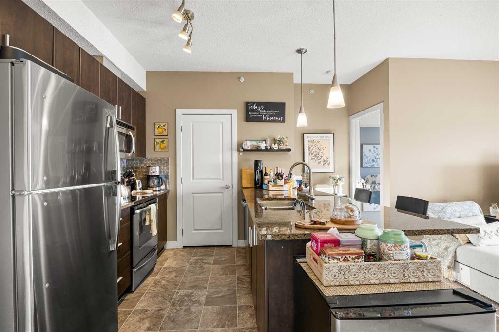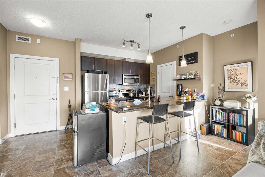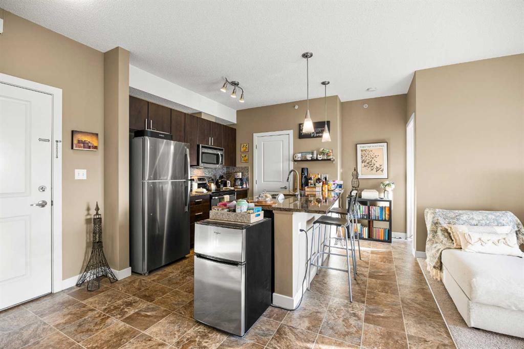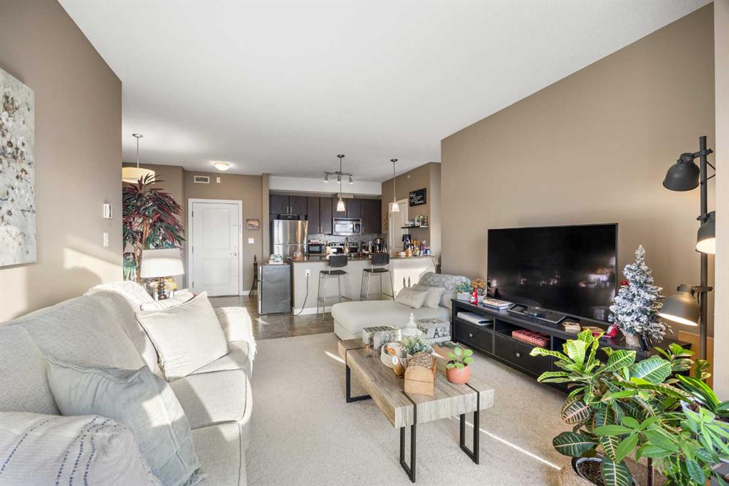 Welcome to the well-managed and highly regarded Canvas at Millrise complex, offering residents a perfect blend of comfort and convenience. This bright TOP floor 2-bedroom, 2-bath unit spans 860 sqft and features 9-ft ceilings throughout with a sunny south-facing open floorplan. The well-sized Kitchen boasts granite countertops, a peninsula with breakfast bar, stainless steel appliances, and a walk-in pantry with ample storage. It opens seamlessly to the Dining area and spacious Living room, which leads to a south-facing balcony with a gas hookup. The Primary bedroom includes a walk-through closet and 4-piece ensuite, while the second bedroom, 4-piece bath, and in-suite laundry with storage complete this home. Titled underground parking adds convenience and peace of mind. Residents enjoy exceptional amenities, including a gym, sauna, and recreation/party room, all easily accessible via the heated underground parkade. The complex also offers ample visitor parking and a spacious courtyard, perfect for kids to run and play. Located in a prime area with unbeatable access to everyday conveniences, this community is just steps from Sobeys, Shoppers Drug Mart, restaurants, and other shopping options. A short walk to the LRT and Superstore makes commuting and errands easy—ideal for those seeking a low-maintenance lifestyle with everything nearby.