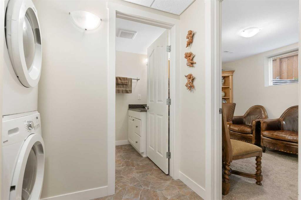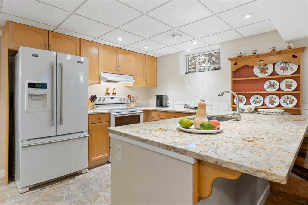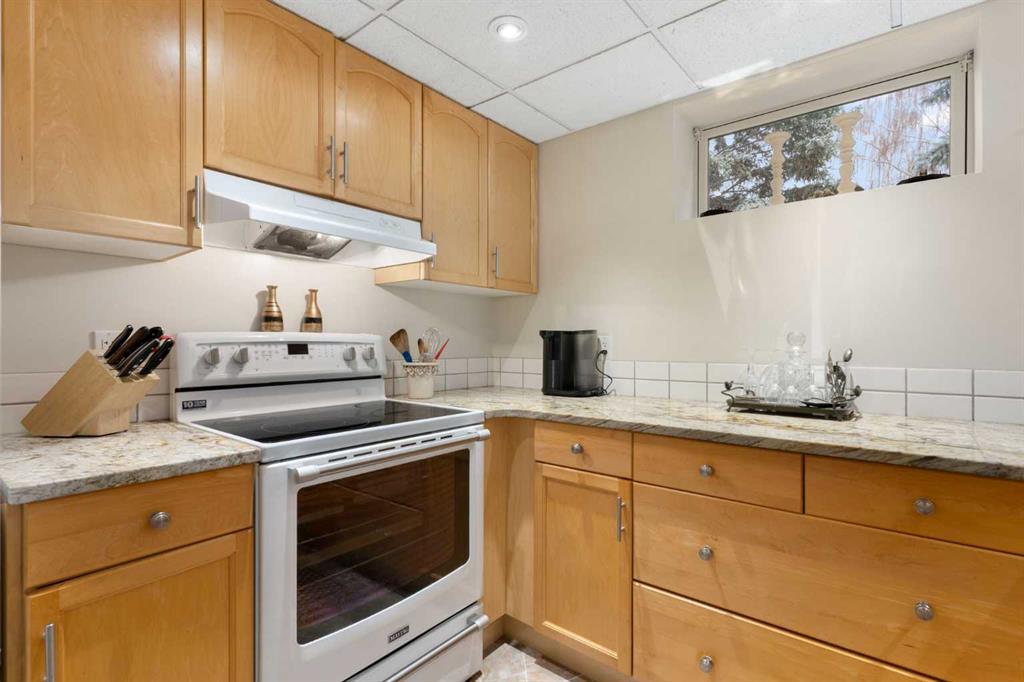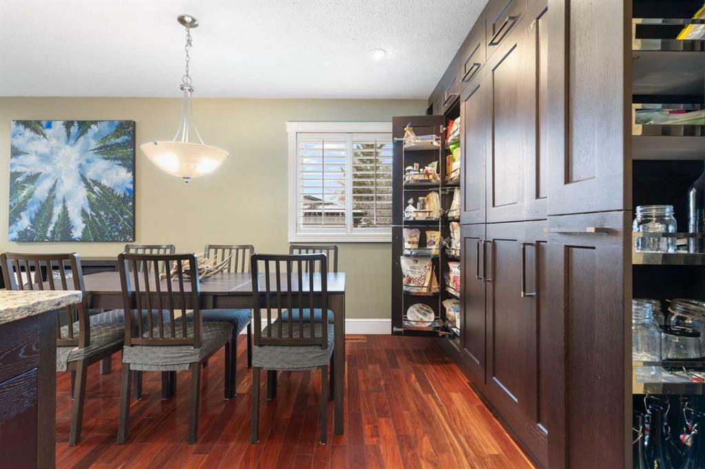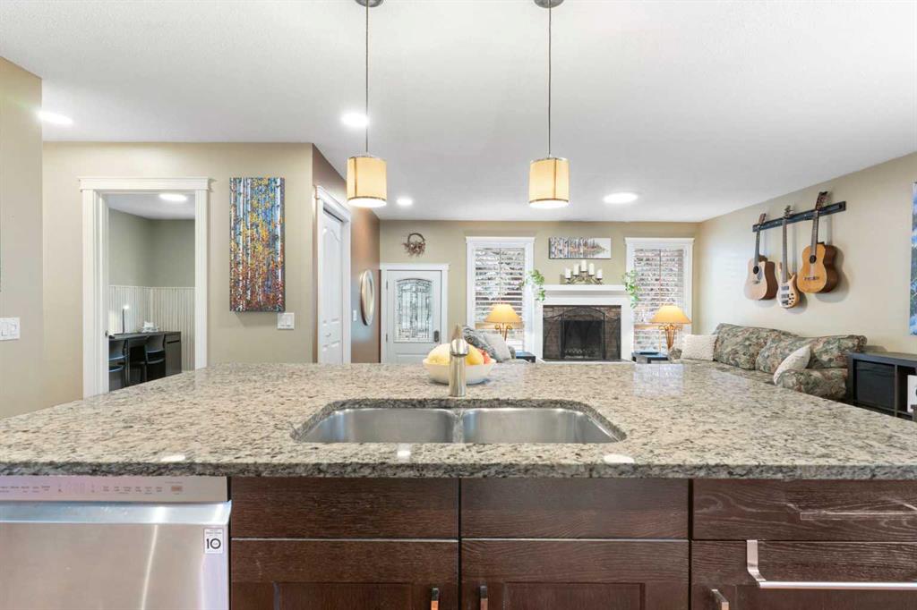 Stunning Home with Secondary Suite (illegal) backs onto Green Space with River Path Access Located at the top of coveted Queensland Circle, this exceptional home backs directly onto a lush and quiet green space, and offers convenient access to the serene river pathway system of Fish Creek Park—and still only 10 minutes to major shopping areas and the Calgary Farmers Market. The open-concept layout seamlessly blends modern comfort with timeless style, featuring rich hardwood flooring throughout and a warm wood-burning fireplace in the living room. The jaw dropping chef-inspired kitchen showcases premium cabinetry with custom built-ins, granite countertops and large island, and high-end finishes. A convenient bedroom/office, second bedroom, full bathroom, and master bedroom with two-piece ensuite and private upper deck access completes this level, providing air-conditioned comfort, flexibility, and privacy. Step outside to your expansive, tiered wooden deck—perfect for entertaining or relaxing care free, with a brand-new 6’ fence and 15’ rear opening gate offering secure parking for all your outdoor toys. The true oversized (26’x24’) heated double garage includes a rare and sought-after enclosed office space with separate heat controls, making it ideal for creative projects or working from home. This home ALSO includes a fully self-contained lower suite (illegal) hosting a king-sized bedroom, second bedroom/office, 3-piece bathroom, convenient in-suite stacked washer and dryer, and beautiful maple cabinetry paired with sleek granite countertops—ideal for guests or rental income. The exterior features a beautiful combination of stucco, river stone, and landscaped flower beds full of perennials and herbs, offering immediate curb appeal, serenity, and lasting durability. Don’t miss the chance to own this one-of-a-kind property that offers the perfect blend of luxury, convenience, and natural beauty!