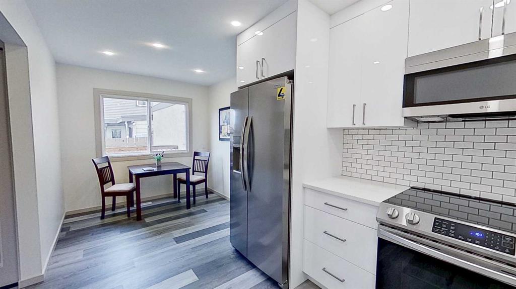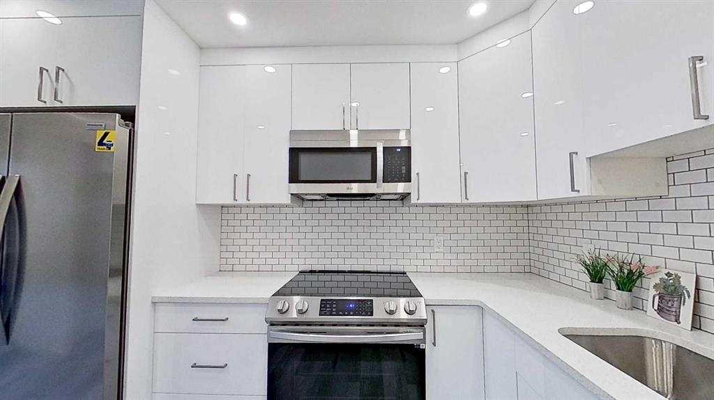 FULLY RENOVATED, beautiful, 1100 sq ft home with sizable fenced and gated yard. NO CONDO FEES. It’s close to all amenities, and minutes away from downtown. Everything is new. Modern finishes throughout. Luxury vinyl planks on the main floor, tastefully chosen carpets in the bedrooms on the second floor and in the basement. Brand new premium kitchen cabinetry with quarts countertops , ample of pot lighting and premium stainless steel appliances package. Huge living room with a beautiful bay window overlooking the fenced yard. Fully renovated 4 piece bathroom upstairs and renovated, full bathroom with the shower in the basement. Pantry room and dining room connected with the kitchen. Linen closet on the second floor. Game room and 4th bedroom in the basement. Laundry room with the washer and new dryer is located in the mechanical room. Besides big closets in each of the 4 bedrooms, there is extra storage in the basement. Brand new, high efficiency furnace and electrical panel.