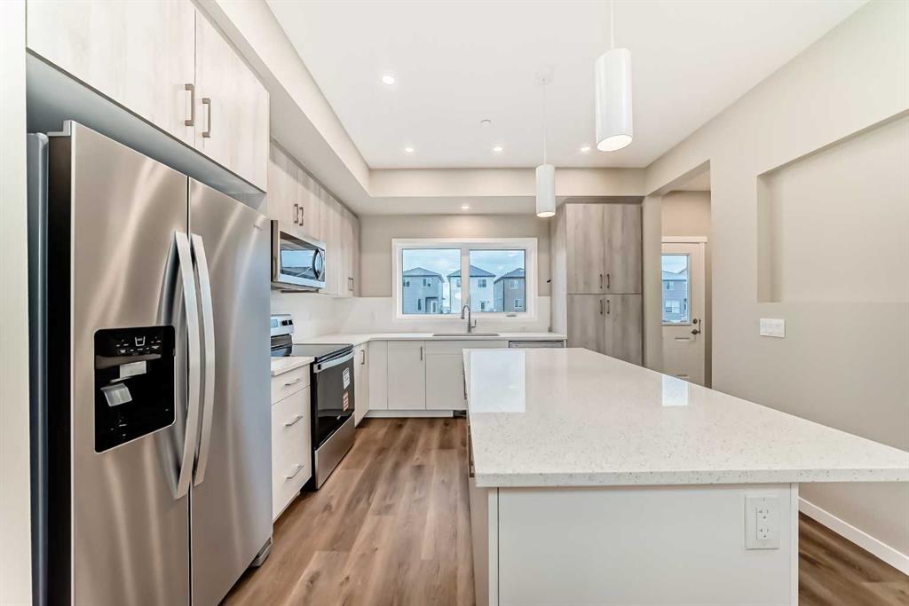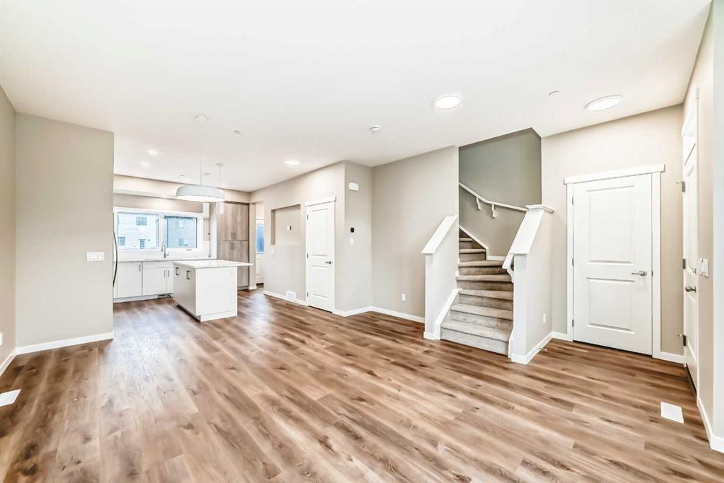 Welcome to the Cari, a beautifully designed home where modern style meets everyday functionality. With 1,264 sq. ft. of thoughtfully planned living space, this 3-bedroom, 2.5-bathroom residence is crafted to elevate your lifestyle while offering room to grow. From the moment you arrive, the curb appeal is undeniable with a landscaped front yard that sets the tone for the elegance inside. Step through the front door and into the bright and open main level, where luxury vinyl plank flooring seamlessly connects the living, dining, and kitchen areas. The heart of the home is the stunning L-shaped kitchen, featuring sleek two-tone cabinetry, gleaming quartz countertops, a central island, and stainless steel appliances that make cooking and entertaining both effortless and enjoyable. The open-concept design ensures that whether you’re hosting family dinners or relaxing with friends, every space feels welcoming and connected. Upstairs, the layout is just as impressive. The serene primary retreat offers the perfect escape, complete with a spa-inspired ensuite finished with quartz countertops and modern fixtures. Two additional generously sized bedrooms, along with a stylish full bathroom, provide plenty of space for family or guests. Convenience continues with an upper-level laundry room, designed with luxury vinyl tile flooring for both style and durability. The lower level holds endless potential with a 9’ foundation height and thoughtful rough-ins for a 3-piece bathroom and a wet bar sink. A separate side entrance adds flexibility for a future basement suite (A secondary suite would be subject to approval and permitting by the city/municipality). Every detail of the Cari has been carefully considered, from the knockdown ceiling texture to the quality finishes throughout. This is more than a home—it’s a place designed to adapt to your lifestyle and grow with you. Located in one of Calgary’s newest and most exciting communities, Hotchkiss is a neighborhood where modern living meets natural beauty. Nestled in the southeast, Hotchkiss offers a perfect balance of peaceful surroundings and urban convenience. Residents enjoy easy access to scenic pathways, parks, and green spaces, creating a community where outdoor living thrives. Families will appreciate the close proximity to schools, recreational amenities, and shopping, while commuters benefit from convenient connections to major roadways, making every part of the city accessible. With its vision for thoughtful planning and vibrant streetscapes, Hotchkiss is more than a place to live—it’s a place to belong. The Cari is not just a home; it’s an opportunity to enjoy stylish comfort in a thriving, growing community