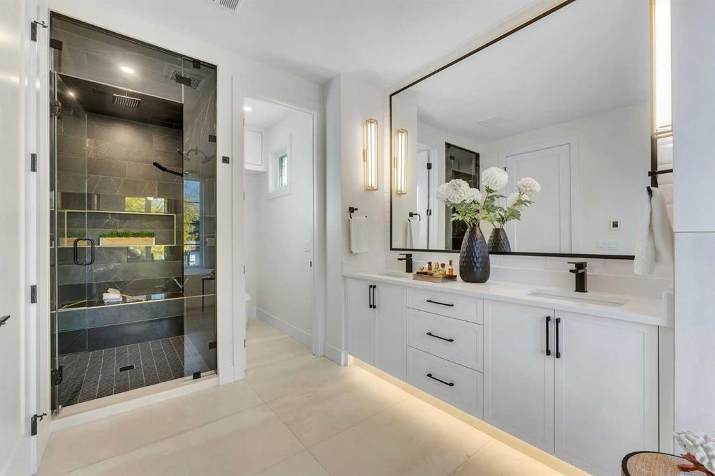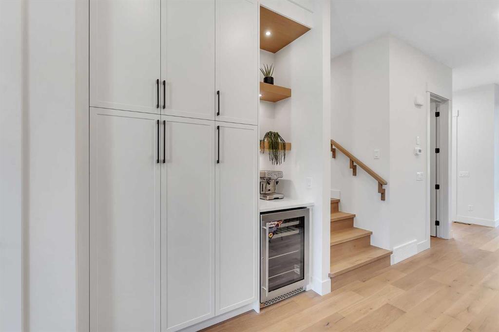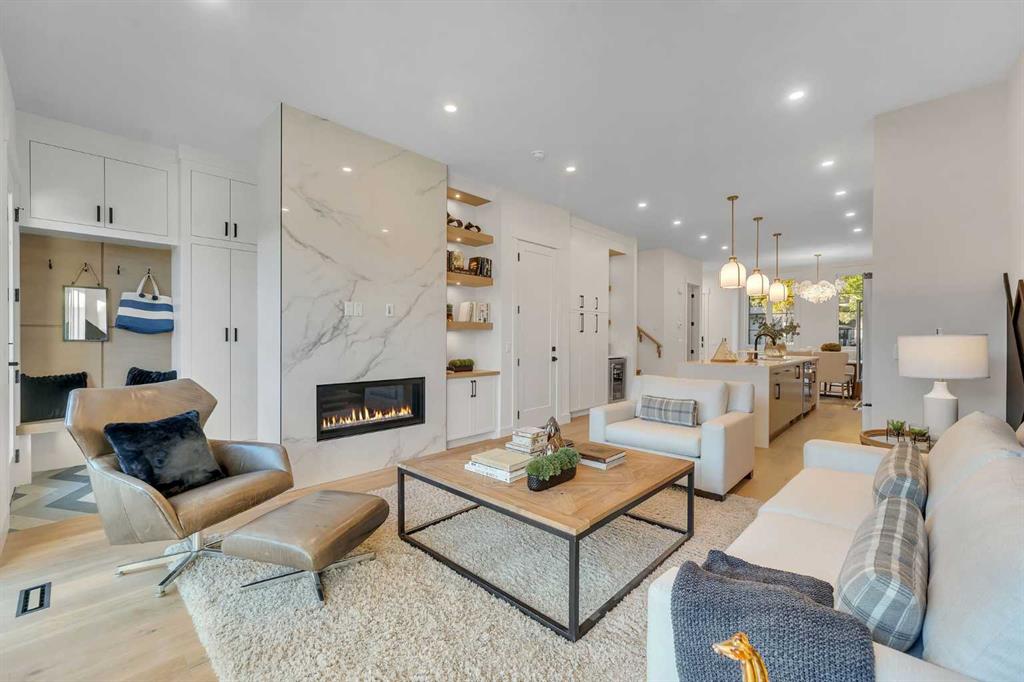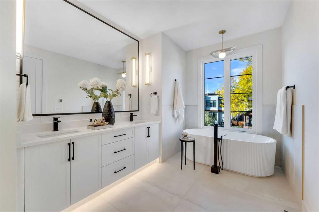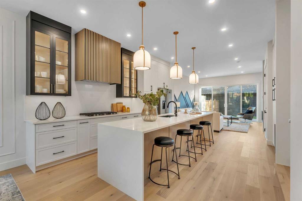 Welcome to the heart of Mount Pleasant, one of Calgary’s most sought-after inner city neighbourhoods. This newly built semi detached home combines modern design with practical family living, offering over 2,800 sq ft of beautifully finished space including a legal suite. Thoughtfully designed for flexibility, it’s ideal for multi generational living or rental income without compromise on comfort or style. The open concept main level features large windows that fill the home with natural light. The kitchen showcases KitchenAid appliances, sleek and stylish custom cabinetry, quartz countertops, and a stunning full slab backsplash that creates a clean, seamless look. A large island anchors the space, perfect for casual meals or conversation. The adjoining dining and living areas flow naturally toward the deck, creating an inviting space for both family time and entertaining. A fully fenced, landscaped yard with a composite deck offers a private, low maintenance outdoor retreat. Upstairs, the primary suite is a true escape, featuring a large walk in closet and a spa inspired ensuite with Italian tile, a steam shower, freestanding tub, and dual vanities. Italian tile continues through all bathrooms, adding a consistent, upscale feel. Two additional bedrooms, a full bath, and a laundry room complete the level, designed with both privacy and function in mind. The legal two bedroom basement suite is self contained with its own entrance, full kitchen, laundry, and bath, ideal for extended family or generating additional income. The design and sound separation ensure comfort for both households. Additional features include smart toilets, engineered hardwood on the main and upper floors, durable LVP in the basement, and a double detached garage offering secure parking and extra storage. The exterior blends red brick, and modern accents for timeless curb appeal. Mount Pleasant continues to be one of Calgary’s most desirable communities, known for its mature tree lined streets, walkability, and welcoming feel. Residents enjoy easy access to Confederation Park, the community pool and sports facilities, as well as cafes and boutiques along 4th Street NW. Close proximity to SAIT, Kensington, and downtown makes daily life convenient and connected. A home that delivers quality construction, flexible living, and a location that will always be in demand. Move in ready. Measurements based on builder’s plans. RMS measurements to be completed prior to possession. All buyers and their agents are advised to verify measurements to their own satisfaction. Photos and RMS measurements are from the other side of the duplex and are provided for reference only. Finishes, layout, and measurements may vary slightly.