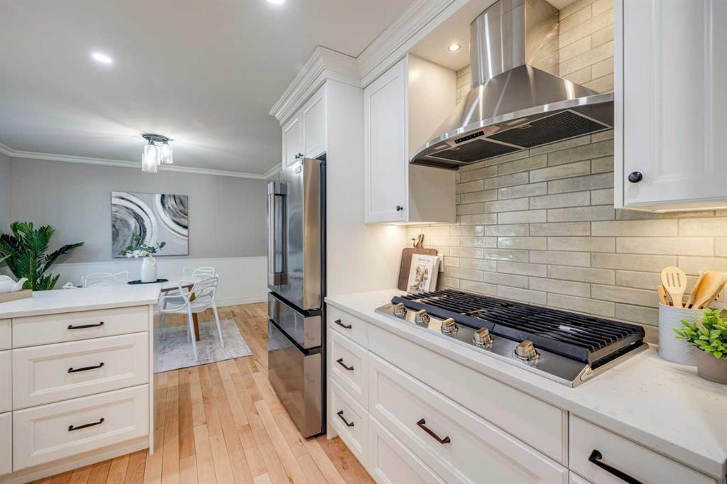 Set on a rare oversized corner lot, this property offers an exceptional outdoor lifestyle that’s nearly impossible to find in the sought-after central neighborhood of Garrison Woods. With sun-filled exposures from morning through evening, the beautifully landscaped front and back yards create multiple inviting spaces to relax, entertain, and unwind. Extensively updated and move-in ready, this home offers over 2,000 sq. ft. of developed living space, seamlessly blending timeless charm with modern upgrades. The bright and inviting main floor welcomes you through a newly added mudroom, completed in 2024, with heated tile floors, a large coat closet, and ample space for shoes and outerwear. This practical entry space is a rare find in a neighbourhood where entryways are often limited. From there, the fully updated kitchen showcases quartz countertops, quality cabinetry, and upgraded appliances, flowing seamlessly into spacious living and dining areas finished with new flooring throughout. Upstairs, you’ll find generous bedrooms, including a beautifully updated primary retreat with a spa-inspired ensuite featuring in-floor heating and a jetted air tub, along with the convenience of upper floor laundry. The professionally developed basement adds valuable living space with an additional bedroom and full bathroom—perfect for guests or a growing family. Step outside to enjoy the exceptional outdoor living areas, including new composite decking, and an premium aluminum pergola with adjustable louvers, heaters, and retractable screens for extended seasonal use. The fully landscaped yard offers mature trees, lighting, and exceptional privacy, along with a newly built shed finished to match the home’s exterior. Completing the property is an insulated double garage, adding everyday convenience and functionality.
