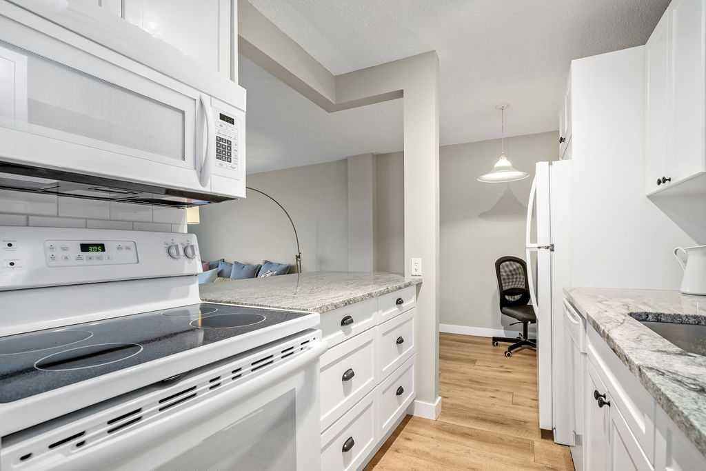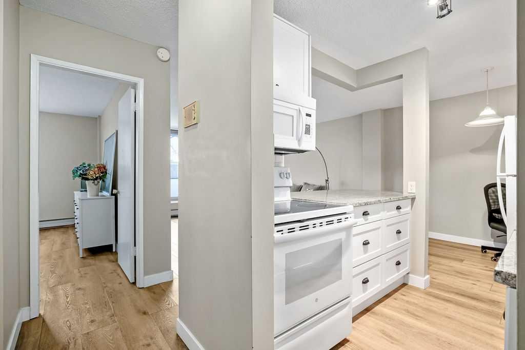 Welcome to your new home in the heart of Hillhurst! Nestled in one of Calgary’s most vibrant inner-city communities, this stylish 1-bedroom, 1-bath condo offers the perfect blend of modern living and unbeatable urban convenience. This 645 sq. ft. residence features durable and attractive vinyl plank flooring throughout, and a bright, open-concept layout highlighted by massive windows that flood the space with natural light. The updated kitchen showcases newer cabinetry with ample storage, beautiful stone countertops, and a functional design ideal for both everyday living and entertaining. Enjoy a top-floor location overlooking Riley Park, complete with stunning downtown city views—a true million-dollar view without the price tag. The fully renovated 4-piece bathroom features a deep soaker tub, striking tile work, and a large vanity offering excellent storage. Located just steps from Kensington’s shops, restaurants, and cafés, walking distance to the CTrain, and only minutes from SAIT (5 minutes) and the University of Calgary (10 minutes), this well-managed complex is ideal for first-time buyers, professionals, or investors looking to enter the rental market. Whether you’re seeking a vibrant urban lifestyle or a smart investment in a prime inner-city location, this Hillhurst condo delivers on location, views, and value.