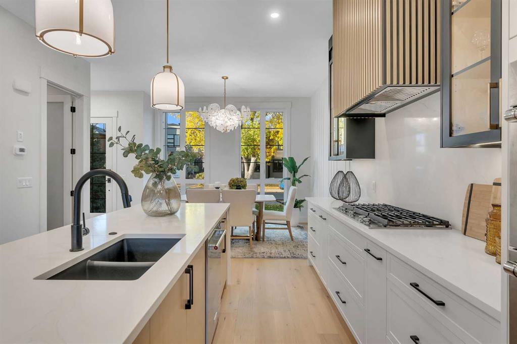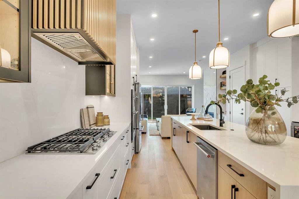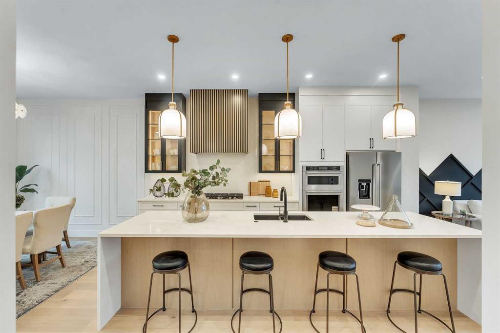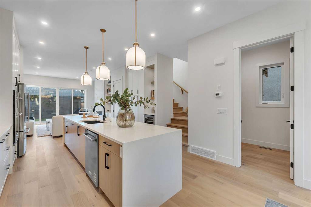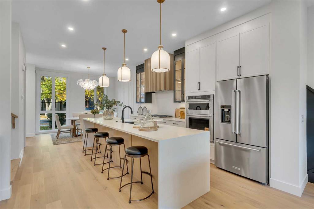 Welcome to the heart of Mount Pleasant, one of Calgary’s most sought-after inner city neighbourhoods. This newly built semi detached home combines modern design with practical family living, offering over 2,800 sq ft of beautifully finished space including a legal suite. Thoughtfully designed for flexibility, it’s ideal for multi generational living or rental income without compromise on comfort or style. The open concept main level features large windows that fill the home with natural light. The kitchen showcases KitchenAid appliances, sleek and stylish custom cabinetry, quartz countertops, and a stunning full slab backsplash that creates a clean, seamless look. A large island anchors the space, perfect for casual meals or conversation. The adjoining dining and living areas flow naturally toward the deck, creating an inviting space for both family time and entertaining. A fully fenced, landscaped yard with a composite deck offers a private, low maintenance outdoor retreat. Upstairs, the primary suite is a true escape, featuring a large walk in closet and a spa inspired ensuite with Italian tile, a steam shower, freestanding tub, and dual vanities. Italian tile continues through all bathrooms, adding a consistent, upscale feel. Two additional bedrooms, a full bath, and a laundry room complete the level, designed with both privacy and function in mind. The legal two bedroom basement suite is self contained with its own entrance, full kitchen, laundry, and bath, ideal for extended family or generating additional income. The design and sound separation ensure comfort for both households. Additional features include smart toilets, engineered hardwood on the main and upper floors, durable LVP in the basement, and a double detached garage offering secure parking and extra storage. The exterior blends red brick, dark stucco, and modern accents for timeless curb appeal. Mount Pleasant continues to be one of Calgary’s most desirable communities, known for its mature tree lined streets, walkability, and welcoming feel. Residents enjoy easy access to Confederation Park, the community pool and sports facilities, as well as cafes and boutiques along 4th Street NW. Close proximity to SAIT, Kensington, and downtown makes daily life convenient and connected. A home that delivers quality construction, flexible living, and a location that will always be in demand. Move in ready.