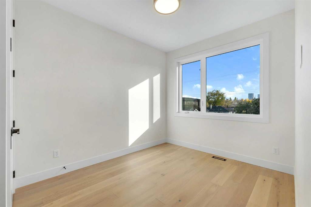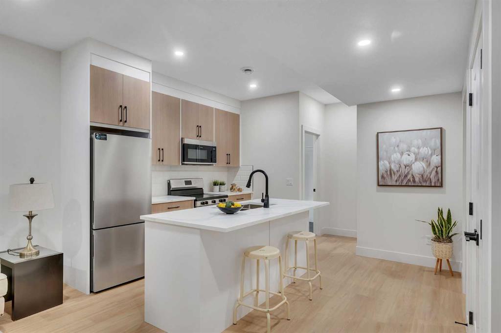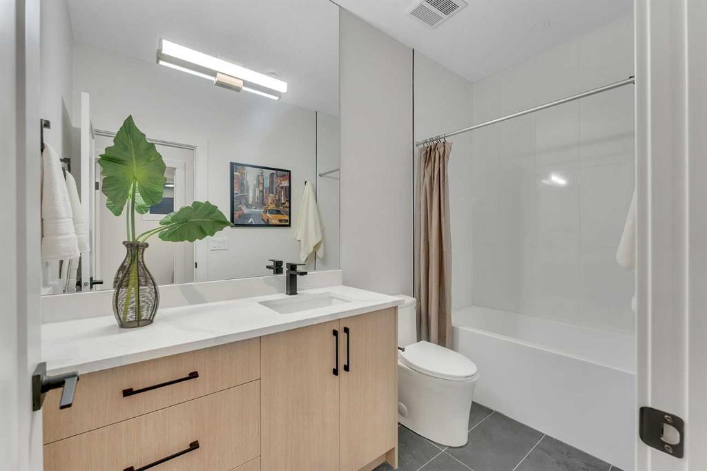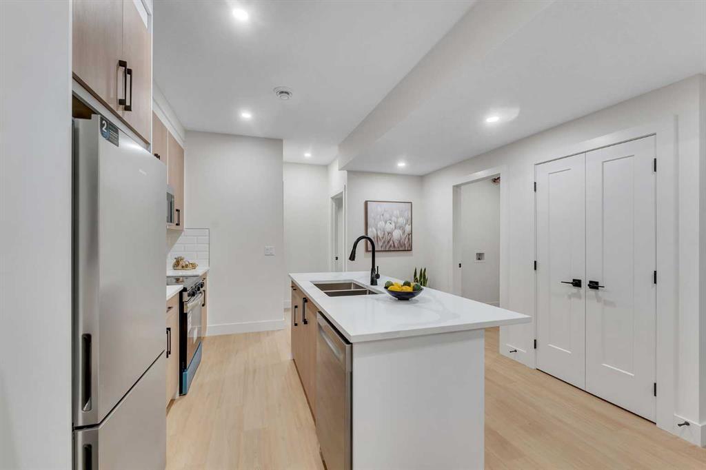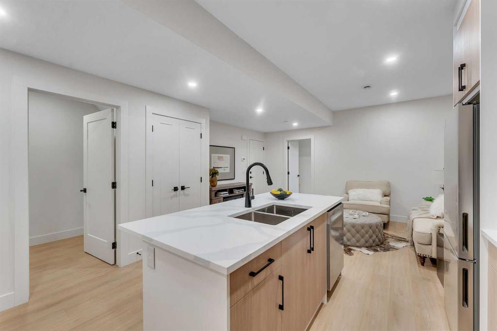 Welcome to the heart of Mount Pleasant, one of Calgary’s most sought-after inner city neighbourhoods. This newly built semi detached home combines modern design with practical family living, offering over 2,800 sq ft of beautifully finished space including a legal suite. Thoughtfully designed for flexibility, it’s ideal for multi generational living or rental income without compromise on comfort or style. The open concept main level features large windows that fill the home with natural light. The kitchen showcases KitchenAid appliances, sleek and stylish custom cabinetry, quartz countertops, and a stunning full slab backsplash that creates a clean, seamless look. A large island anchors the space, perfect for casual meals or conversation. The adjoining dining and living areas flow naturally toward the deck, creating an inviting space for both family time and entertaining. A fully fenced, landscaped yard with a composite deck offers a private, low maintenance outdoor retreat. Upstairs, the primary suite is a true escape, featuring a large walk in closet and a spa inspired ensuite with Italian tile, a steam shower, freestanding tub, and dual vanities. Italian tile continues through all bathrooms, adding a consistent, upscale feel. Two additional bedrooms, a full bath, and a laundry room complete the level, designed with both privacy and function in mind. The legal two bedroom basement suite is self contained with its own entrance, full kitchen, laundry, and bath, ideal for extended family or generating additional income. The design and sound separation ensure comfort for both households. Additional features include smart toilets, engineered hardwood on the main and upper floors, durable LVP in the basement, and a double detached garage offering secure parking and extra storage. The exterior blends red brick, dark stucco, and modern accents for timeless curb appeal. Mount Pleasant continues to be one of Calgary’s most desirable communities, known for its mature tree lined streets, walkability, and welcoming feel. Residents enjoy easy access to Confederation Park, the community pool and sports facilities, as well as cafes and boutiques along 4th Street NW. Close proximity to SAIT, Kensington, and downtown makes daily life convenient and connected. A home that delivers quality construction, flexible living, and a location that will always be in demand. Move in ready.