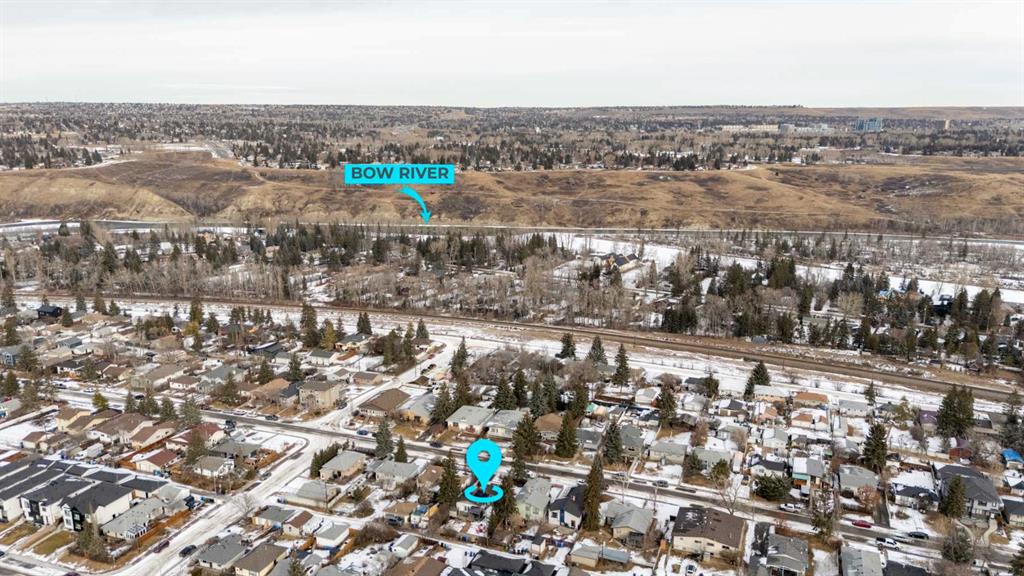 Set on a generous 56 ft x 120 ft lot in the heart of Bowness, this updated and character-filled bungalow provides a great opportunity to live or rent. With over 1,200 square feet, three bedrooms, and one bathroom, the home is well suited for those looking to settle into an established community while also recognizing the value of future redevelopment in one of Calgary’s most sought-after inner-city neighbourhoods. The main floor welcomes you with a spacious entryway and an abundance of natural light pouring through well-placed windows. Vinyl plank and hardwood flooring flow throughout the space, creating a cohesive feel that complements the home’s thoughtful updates. The open-concept kitchen, living, and dining areas are ideal for everyday living and entertaining. The renovated kitchen features crisp white cabinetry, quartz countertops, stainless steel appliances, and ample workspace and storage. Adjacent to the kitchen, the living room offers a warm and inviting atmosphere, anchored by a cozy wood burning fireplace. A four-piece bathroom serves the home, while a well-proportioned primary bedroom opens directly onto a front deck, an ideal spot for morning coffee or quiet evenings. Two additional bedrooms complete the layout, offering flexibility for family, guests, or a home office. The basement adds functional space with a dedicated laundry room, a recreation area suitable for hobbies or workouts, and plenty of storage to keep everything organized. Outdoors, the property truly shines. The backyard is expansive, featuring a deck with a covered pergola, a wide grass area, garden boxes, and a greenhouse for those with a green thumb. Two storage sheds provide practical space for tools and seasonal items. Parking is plentiful, with a front driveway that accommodates up to three vehicles. A rear alley runs behind the property.. The size and configuration of the lot further underscore the redevelopment opportunity, making this an attractive option for builders, investors, or future planning. Several major components of the home have been addressed over the years, including new siding and a hot water tank in 2017, updated windows, and a furnace installed in 2004. The home is equipped with a 100-amp electrical service. Bowness is known for its strong sense of community and exceptional access to outdoor amenities. Just steps from the Bow River, the area is surrounded by schools, parks, and playgrounds, with Bowness Park and Baker Park only minutes away. Residents enjoy nearby walking and biking trails, a wading pool, skating rink, and open green spaces. Daily conveniences are close at hand with local shops, restaurants, and services throughout the neighbourhood, while Market Mall, Alberta Children’s Hospital, Foothills Hospital, and the University of Calgary are all within easy reach. Quick access to Stoney Trail makes commuting simple and provides a direct route to the mountains, with Winsport and downtown Calgary approximately 15 minutes away.