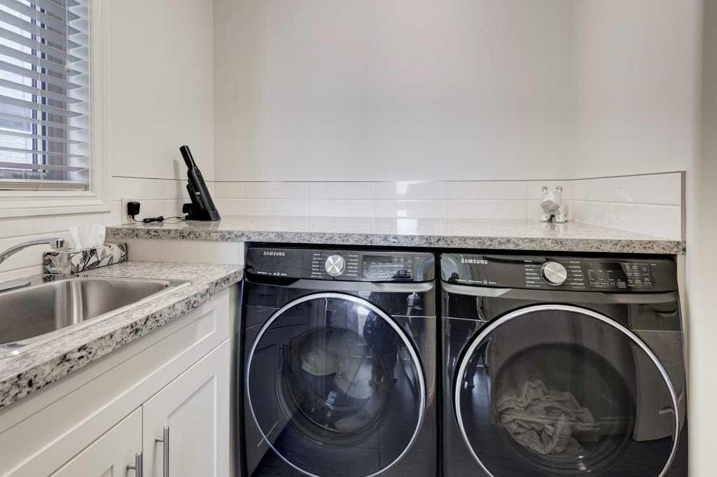 The fully developed walkout basement adds even more versatility, featuring a spacious rec room with a full wet bar, a fourth bedroom, and another full bathroom. The basement floors have in-floor heating, ensuring comfort year-round. From here, step directly into your private, east-facing backyard that provides a quiet setting for both relaxation and hosting.