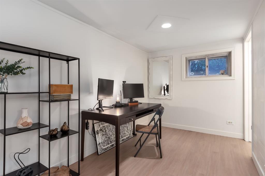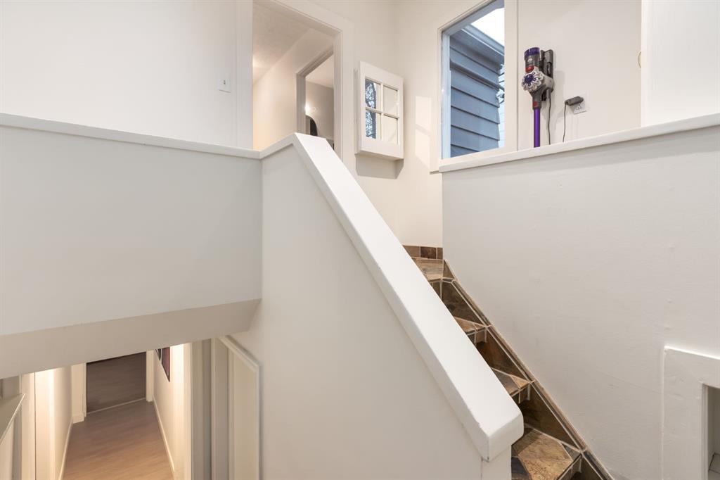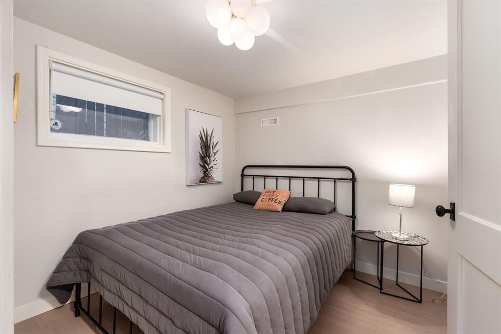 Upstairs, you’ll find two generous bedrooms, each tucked beneath the slope of the roofline — creating whimsical vaulted ceilings and cozy architectural character. From the rear entry, the stairs lead to a fully developed basement, offering a bright and renovated recreation area complete with an electric fireplace — equal parts stylish and inviting. A large additional bedroom, second bathroom, and laundry space provide excellent flexibility and storage. Fresh paint, updated details, and preserved original elements blend seamlessly, adding personality in all the right places.