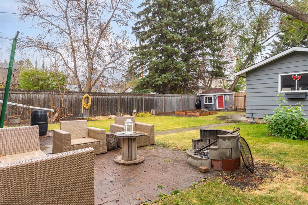 Outside, the south-facing backyard is a private inner-city oasis — with a sprawling lawn, patio, fire pit, mature shrubs, and fruit trees creating a serene and secluded retreat. The built-in garden beds, play house, and a single detached garage off the alley complete this exceptional outdoor lifestyle.