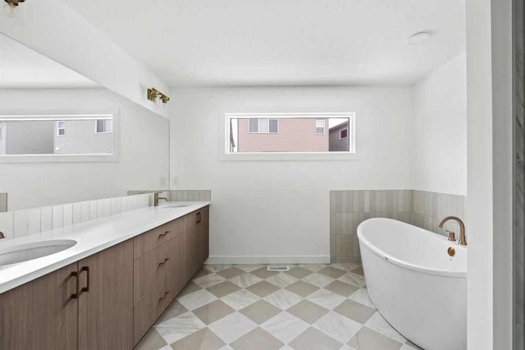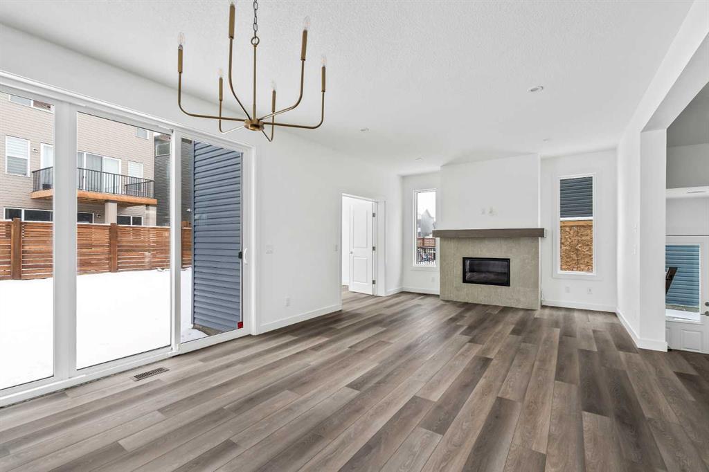 The Columbia 26 is a brand-new home built by Brookfield Residential, ready for immediate possession! Situated on an oversized conventional pie lot (not zero lot) with 4 bedrooms on the upper level and featuring nearly 2,600 square feet of developed living space + a full basement with private side entrance. Featuring 2 living areas, a home office space, 4 bedrooms above grade and 2.5 bathrooms, this home offers the perfect space for a large family! Upon entry a grand foyer provides plenty of space with sight lines from the entryway to the back of the home and main living area. Walls of windows across the back of the home allow natural light to fill the space all day long. The home boasts a central gourmet kitchen with an expansive pantry that has direct access to the mudroom for everyday convenience. The kitchen is complete with a chimney hood fan, built-in wall oven & microwave and a gas cooktop. The kitchen is complete with a large central island and open to the main living and dining space – making it the perfect place to host guests. Warm wood tones and a timeless design palette flow effortlessly throughout the home – creating a space that is beautiful today and will offer exceptional resale value long term. The main level is complete with a private flex space, perfect for a home office with double doors providing added privacy. A central gas fireplace on the main level is the perfect addition for cool winter nights. The main level is complete with 3 closets, an expansive mud room and 2 pc powder room. The upper level has a central bonus room that separates the primary suite from the other 3 bedrooms. The primary suite overlooks the backyard and has a large ensuite with dual sinks, a walk-in shower and soaker tub, in addition to the oversized walk-in closet. Three more large bedrooms, with walk-in closets and double closets, provide ample space for children and a full 5pc bathroom with double sinks and laundry room complete the upper level. The undeveloped basement includes a private side entrance and offers endless possibilities with rough-ins already in place! Located in the new community of Livingston, this home includes Alberta New Home Warranty as well as the builder’s warranty, allowing you to purchase this brand-new home with peace of mind.