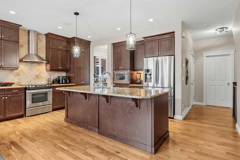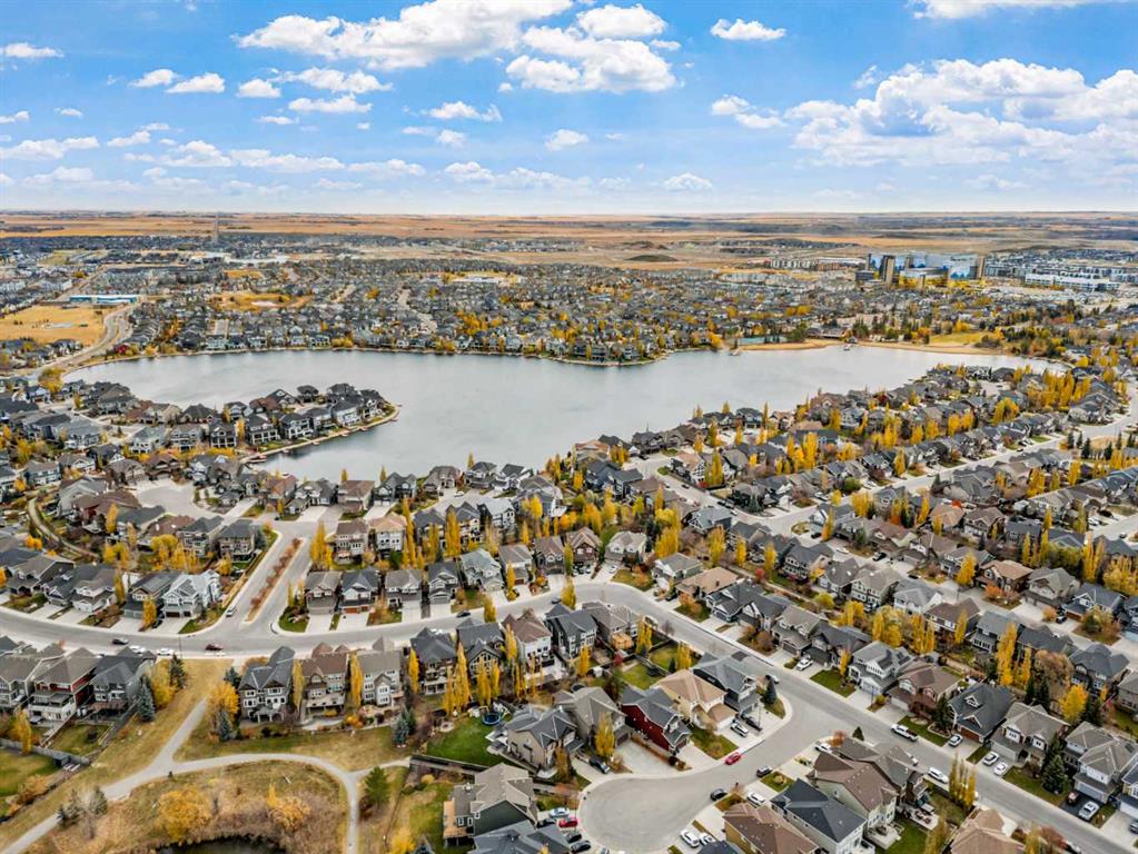 Welcome to this fantastic family home perfectly situated on a quiet cul-de-sac in sought-after Auburn Bay. Offering over 4,000 sq. ft. of beautifully designed living space, this rare property features four bedrooms plus a bonus room upstairs and a fifth bedroom in the fully developed lower level—ideal for growing families and guests. The main level features 9-foot ceilings, hardwood flooring, and an open-concept layout that seamlessly connects the kitchen, dining area, and great room. The kitchen is a chef’s delight with granite countertops, stainless steel appliances, ceiling-height cabinetry, a butler’s pantry with wine fridge, and a walk-through mudroom for easy garage access. The great room features a gas fireplace with tile surround and built-in ceiling speakers, perfect for entertaining. The upper level impresses with vaulted ceilings in both the primary and second bedrooms, complete with ceiling fans and abundant natural light. The primary suite is a peaceful retreat with a wall of east-facing windows, a luxurious 5-piece ensuite featuring dual vanities, a soaker tub, a separate shower, a private water closet, and a walk-in closet. Three more bedrooms and laundry room complete the upper level. Downstairs, the fully developed lower level offers a spacious recreation room with gas fireplace, wet bar with wine fridge and built-in cabinetry—the ideal setup for movie nights or guests. A fifth bedroom, 3-piece bathroom, and large utility/storage room complete the basement. Additional highlights include: Triple attached heated garage plus driveway parking for four more vehicles, Tankless water heater, water softener, and dual Lennox furnaces with humidifiers. The backyard is a dream featuring Composite deck with gas line for BBQ, hot tub under pergola, and landscaped backyard featuring stamped concrete walkways, fire pit area (furniture included), mature trees, 8’ fencing for privacy along with a Storage shed tucked neatly to the side yard Enjoy the best of Auburn Bay living—steps from walking paths, the community pond, Auburn Bay Lake, and an off-leash dog park. Families will appreciate proximity to excellent schools, playgrounds, and community amenities. The location offers quick access to Seton’s South Health Campus, shopping, restaurants, and major routes including 52nd Street, Deerfoot Trail, and Stoney Trail. This exceptional home combines space, comfort, and thoughtful design in one of Calgary’s most family-friendly communities.
