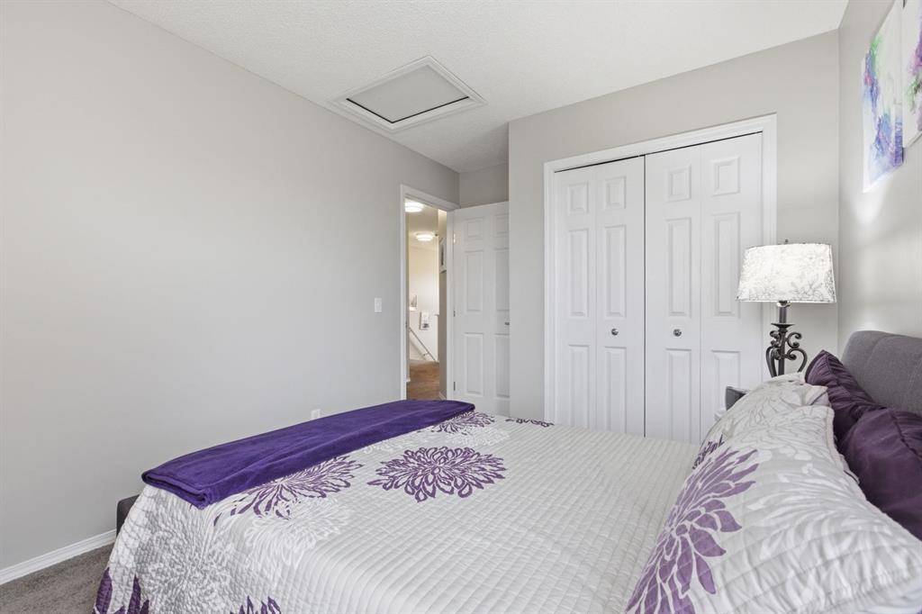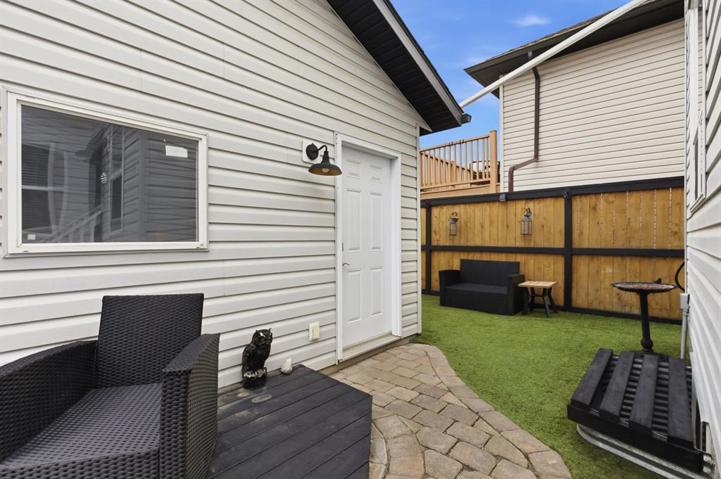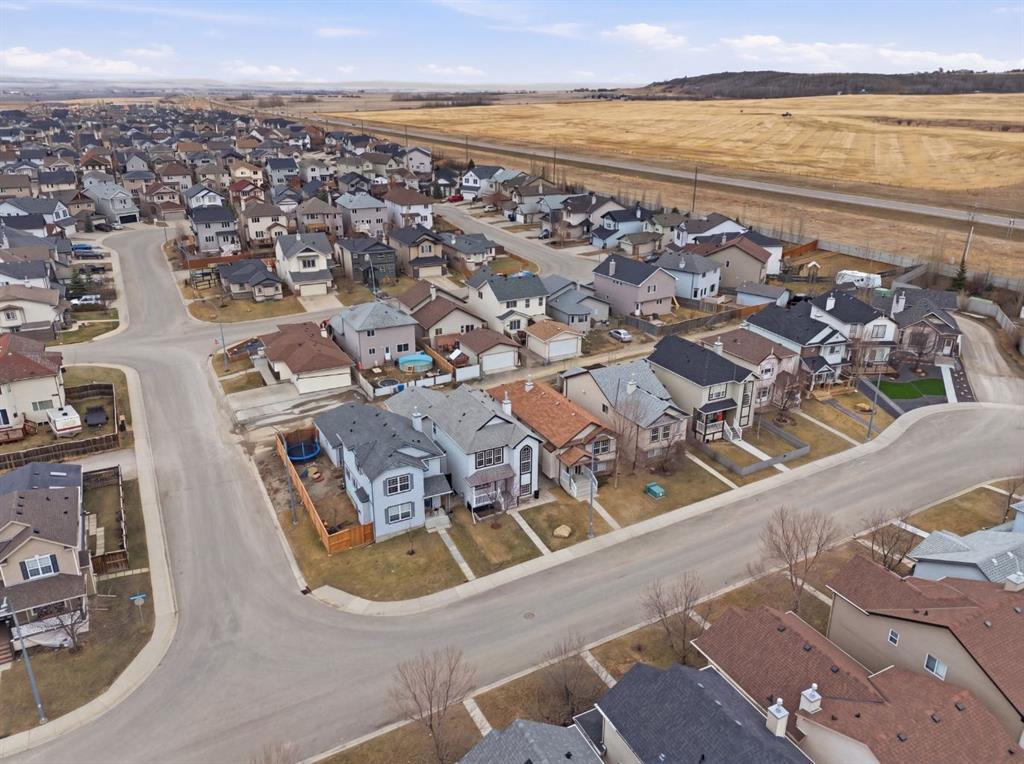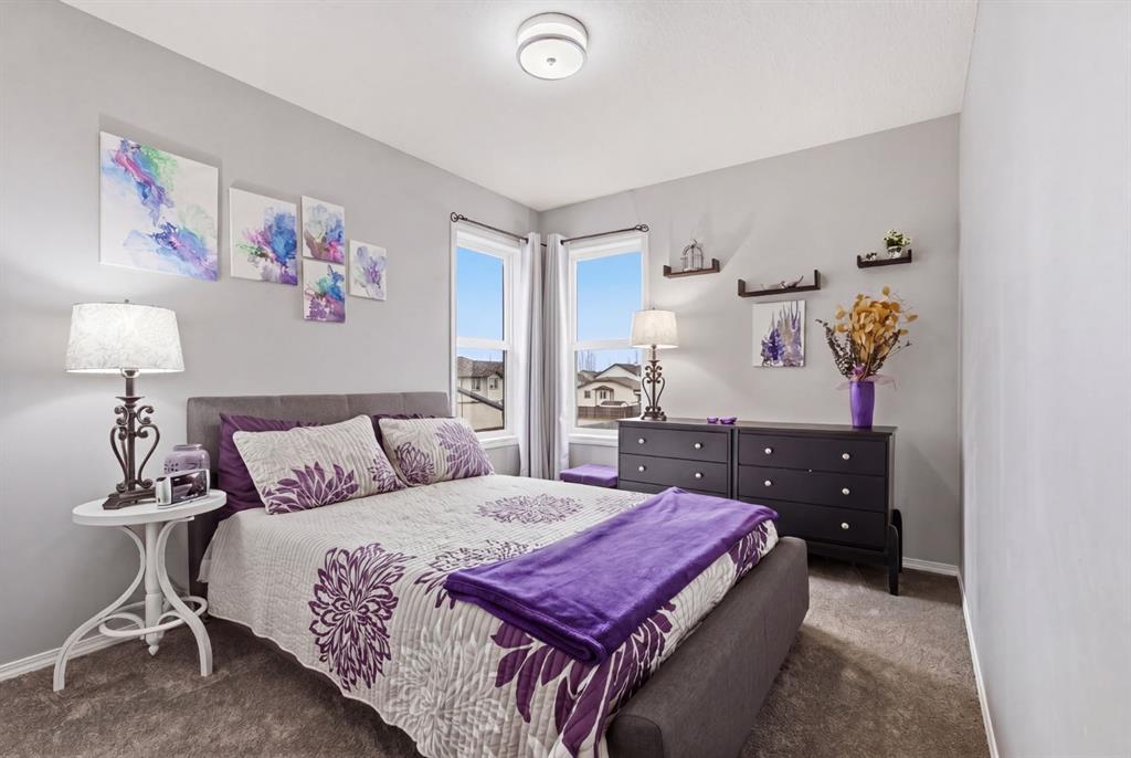Live in the family friendly community of Cimarron. This cleverly laid out home is situated on a quiet street. As you approach you will appreciate the attractive curb appeal and inviting front porch. Throughout the home, pride of ownership is clear, with plenty of updates such as new vinyl plank flooring, new carpet, a new front door, stylish light fixtures, and an elegant railing. The kitchen is a focal point, boasting cabinets that reach to the ceiling, a tasteful tile backsplash, stainless-steel appliances, and a corner pantry for added storage. The large island seamlessly connects to the expansive living room, which features a gas fireplace with custom built in detail. Adjacent to the kitchen, the dining room is filled with natural light from numerous windows and provides direct access to your private backyard. This low maintenance yard has a large patio, artificial grass, a new fence and a double detached garage. The main floor is complete with a powder room tucked away as well as a front den, perfect for a home office, additional living room or kids’ playroom. Upstairs, you’ll find two generously sized bedrooms, a full 4-piece bathroom, and an expansive primary retreat. The primary suite is a true sanctuary, offering a large walk-in closet and a private ensuite with a luxurious jetted corner tub, separate shower and expansive vanity. The lower level is framed and prepped for easy future development. This home is ideally located within walking distance to schools, parks, pathways, shopping, and professional services. Schedule your private showing or view the virtual tour today.