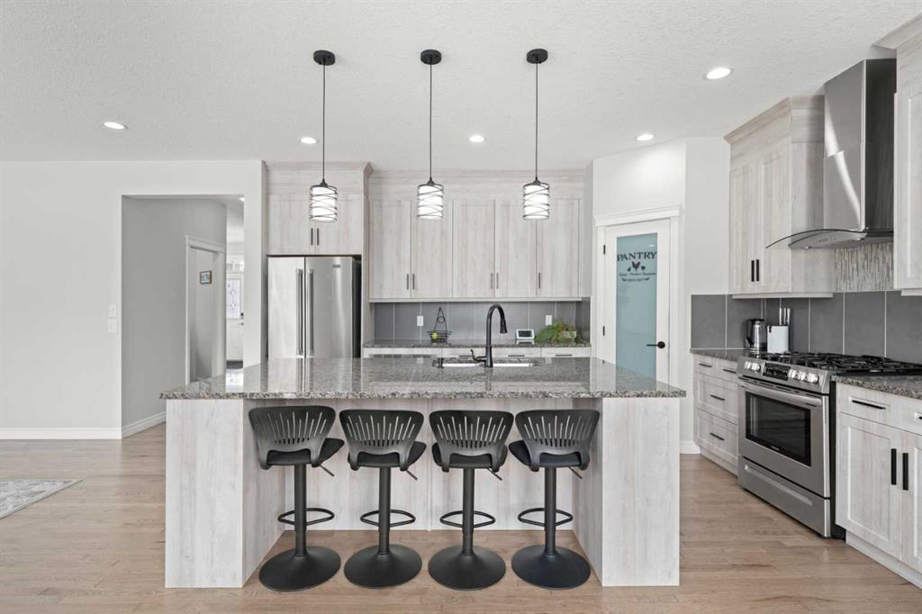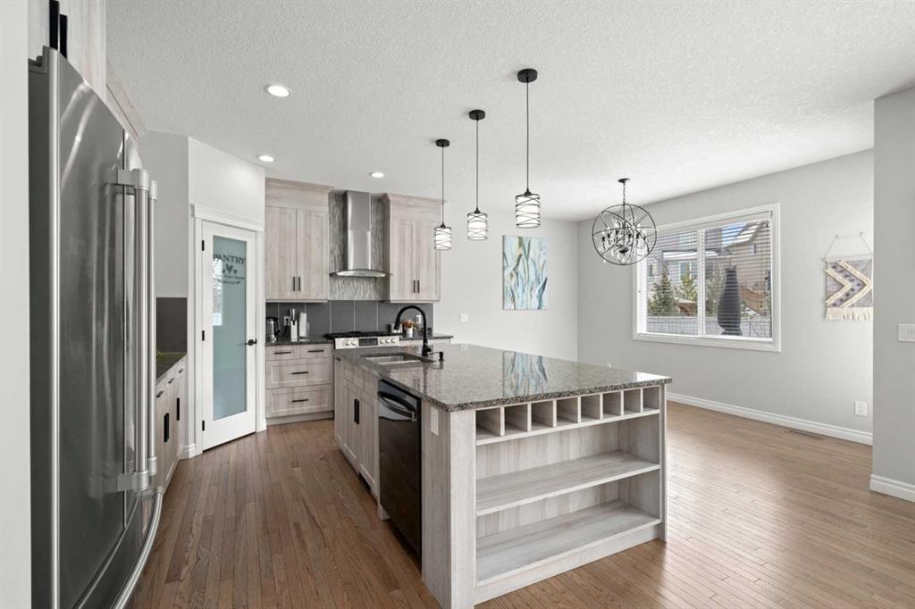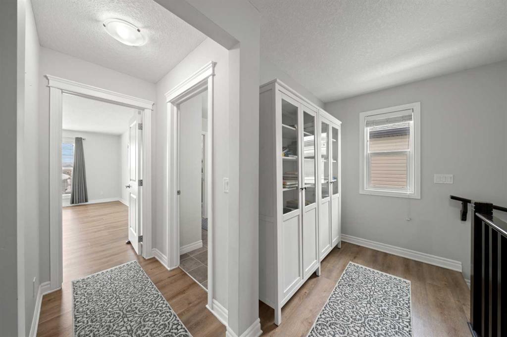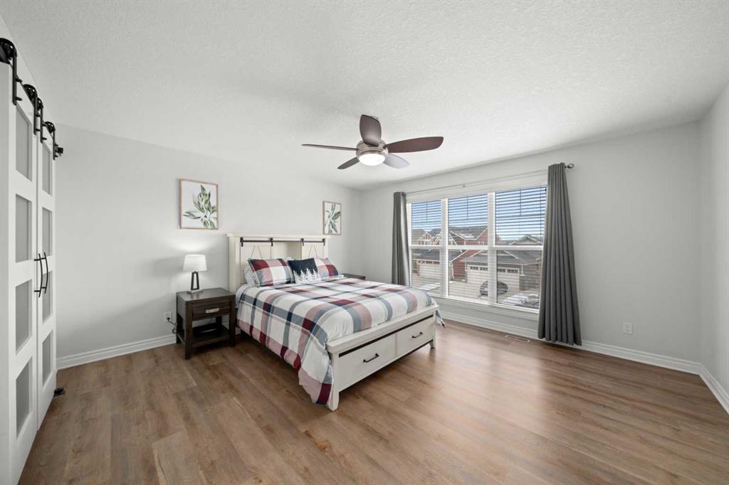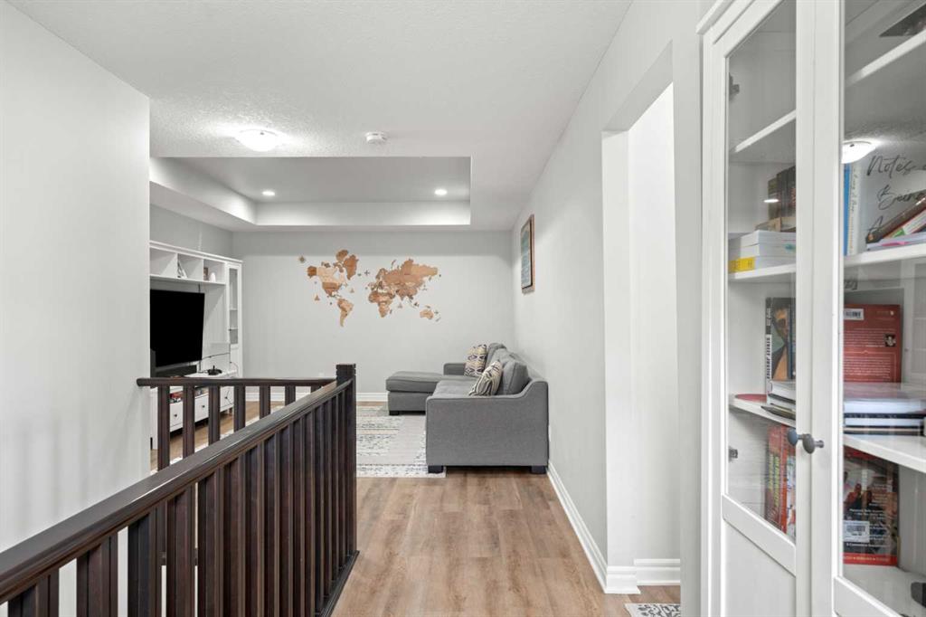 Welcome to this beautifully maintained, Air conditioned, Cimarron Springs family home, where pride of ownership is evident from the moment you arrive. Featuring a charming front porch and excellent curb appeal, this home offers comfort, style, and thoughtful upgrades throughout. Step inside to a spacious front entry with tile flooring and impressive 9’ ceilings. Gleaming hardwood floors flow through the living room, dining room, and kitchen, creating a warm and cohesive main level. A front-facing office with durable LVP flooring provides the perfect space for working from home. The renovated kitchen (2024) is a true showstopper, complete with ceiling-height cabinetry, a gas stove, chimney-style hood fan, built-in microwave, stainless steel appliances and a massive island with granite countertops—ideal for both everyday living and entertaining. The adjoining living room is bright and inviting, featuring a cozy gas fireplace and views of the large backyard. Enjoy hosting in the spacious dining area or step outside to the huge south-facing patio—perfect for summer BBQs. The large fully fenced yard also includes a convenient storage shed. A 2-piece family bathroom completes the main level. Upstairs, you’ll find a generous central bonus room—perfect for family movie nights or relaxing. The spacious primary bedroom offers a large closet with direct access to the laundry room for added convenience. The spa like ensuite features a soaker tub, oversized shower, large vanity, and a private water closet. The two additional bedrooms are well-sized, and the 4-piece family bathroom includes a separate area for the tub and toilet—ideal for busy households. The partially finished basement expands your living space with a large bedroom featuring a walk-in closet, a huge family/games room, and an additional den area—perfect for a home gym, office, or playroom. Additional upgrades include new LVP flooring throughout the upper level (2024) and a carpet-free interior. The oversized double garage includes a convenient side door. Ideally located close to greenspace, walking paths, and shopping, this exceptional home offers everything a growing family needs. Don’t miss your opportunity to view this fantastic property! View 3D/Multi Media/Virtual Tour!