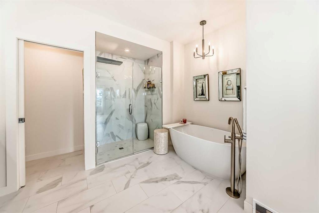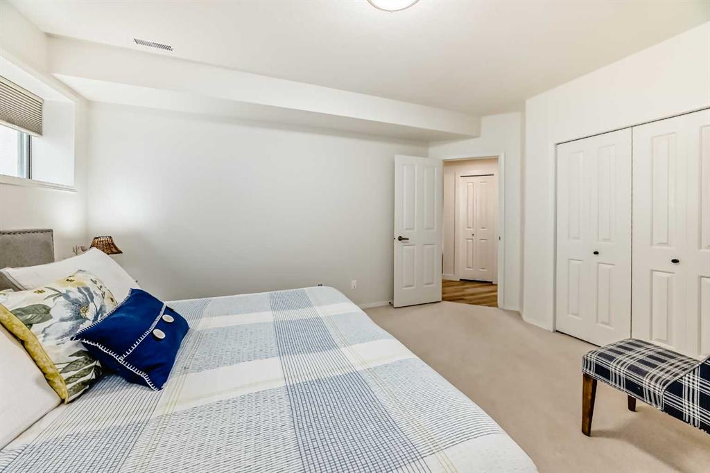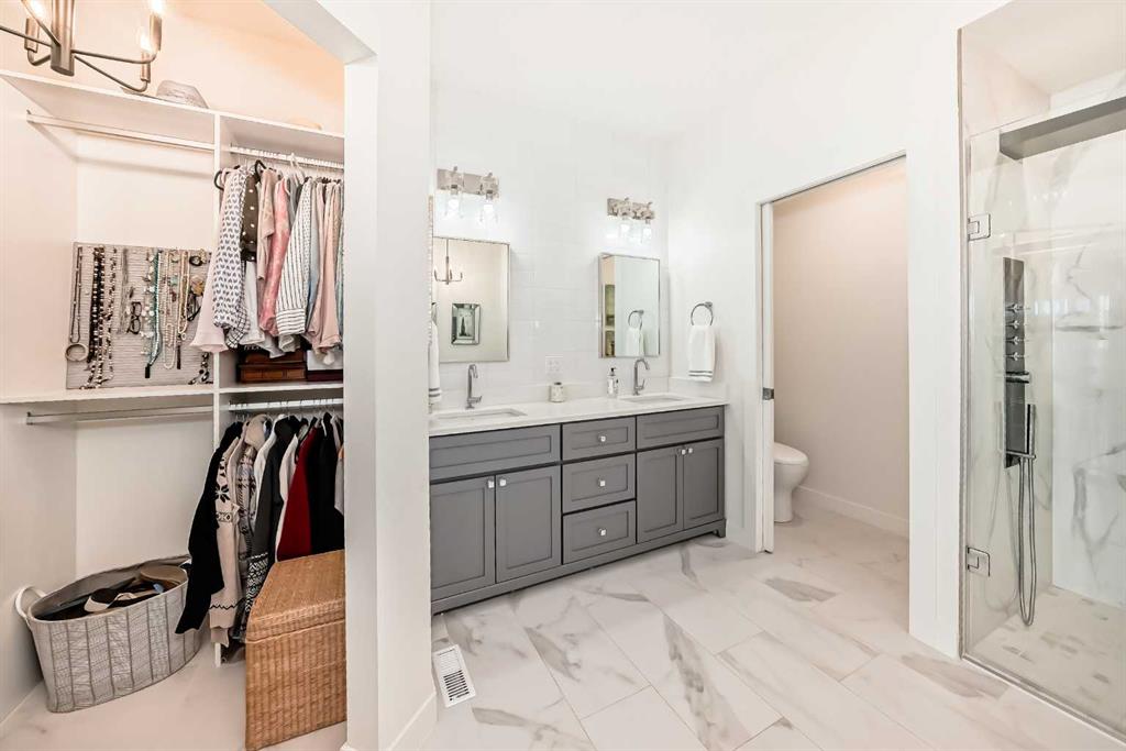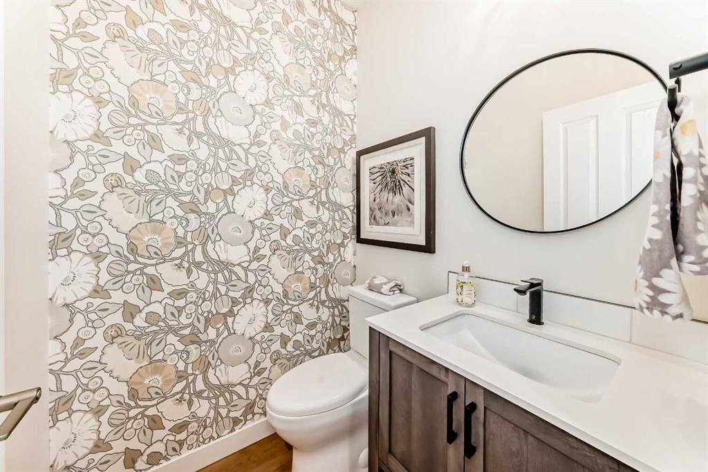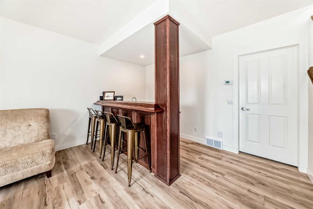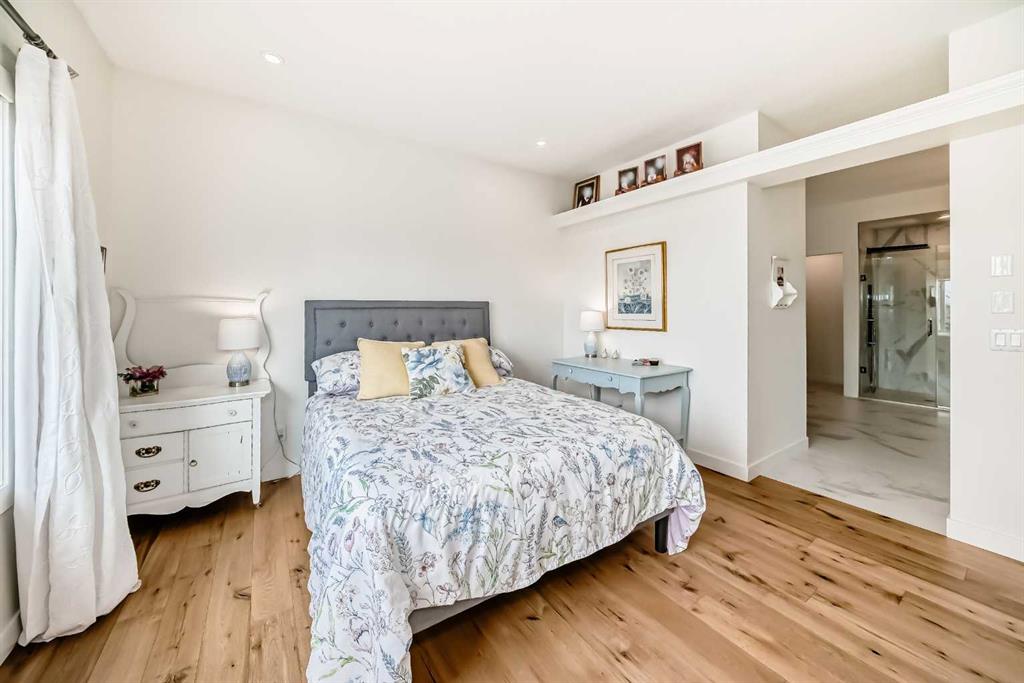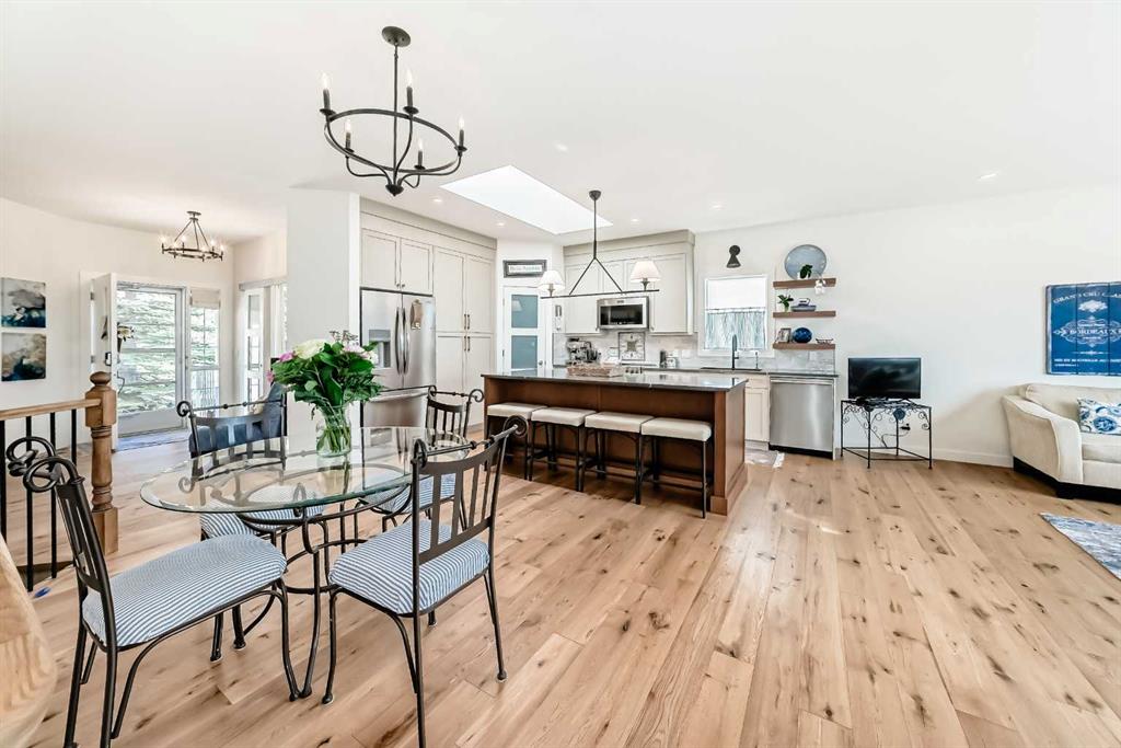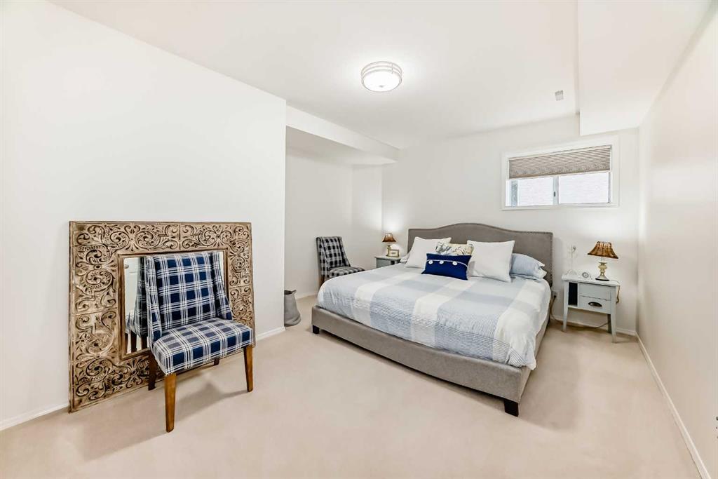 The main living area is warm and inviting with hardwood flooring and a cozy gas fireplace, creating the ideal space for both relaxing and entertaining. The primary bedroom is a true retreat, complete with a walk in closet and a luxurious 5 piece ensuite. The fully finished basement offers exceptional additional living space with in floor heating and a second fireplace. Completing the space is a wet bar, full 4 piece bathroom and two additional bedrooms, making it ideal for guests or extended family. Outside, enjoy a spacious backyard with lush grass and a concrete deck. The heated double garage adds year round convenience and comfort. Situated in a peaceful, scenic neighbourhood known for its quiet atmosphere and proximity to golf, pathways, and easy access to Calgary and the mountains.