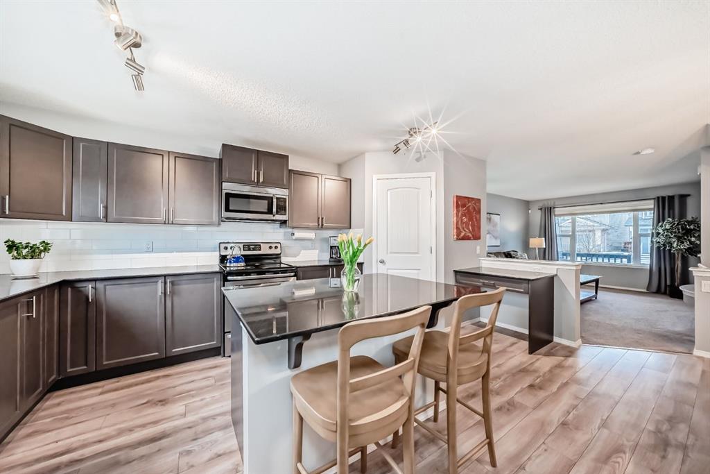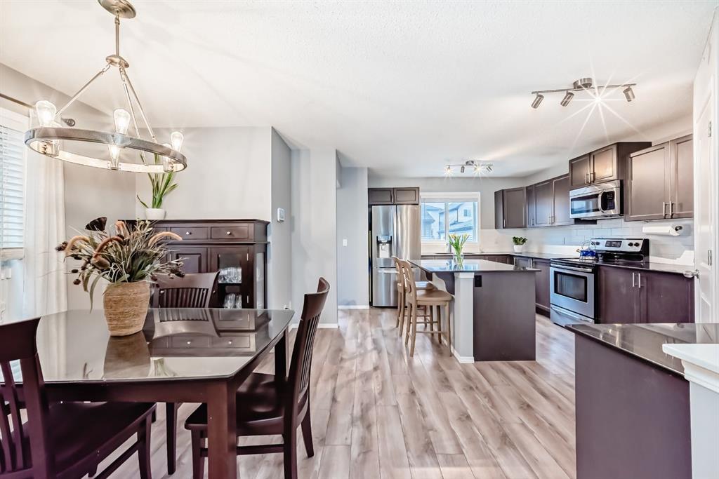 **** OPEN HOUSE, SATURDAY, 2-4PM **** Welcome Home. This beautifully maintained family residence perfectly blends functionality with modern style, and comes with 4 bedrooms and 3.5 bathrooms. Step in from your charming front veranda into an airy main floor featuring 9-foot ceilings. The heart of the home is an open-concept Kitchen with Elegant espresso cabinetry accented by sleek quartz countertops, stainless steel appliances, a central island and a separate corner pantry. The upper level is designed for family comfort, featuring three generous bedrooms. The Master’s Quarter’s serves as a private oasis with a large walk-in closet and full ensuite bath. Down the hall, you’ll find a second full bathroom and a convenient upper-floor laundry room.The professionally finished lower level comes with a recreation room perfect for movie nights or a play area. A 4th bedroom and a full bath—ideal for guests or teens. Additionally, the oversized mechanical room features a built-in woodworking bench for your weekend projects and hobbies. Car enthusiasts and hobbyists will fall in love with the oversized double detached garage. At 25 feet long with 10-foot ceilings, it easily accommodates a full-sized truck while providing ample overhead storage. The home also features Central Air Conditioning for those upcoming Spring and Summer hot evenings. Experience life in one of Calgary’s fastest growing communities. You are just a short stroll away from: 2 picturesque ponds and walking paths, a K-9 School and multiple parks. Legacy is designed for luxury, safety, and family values. Move in and start making memories today!