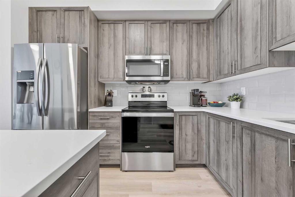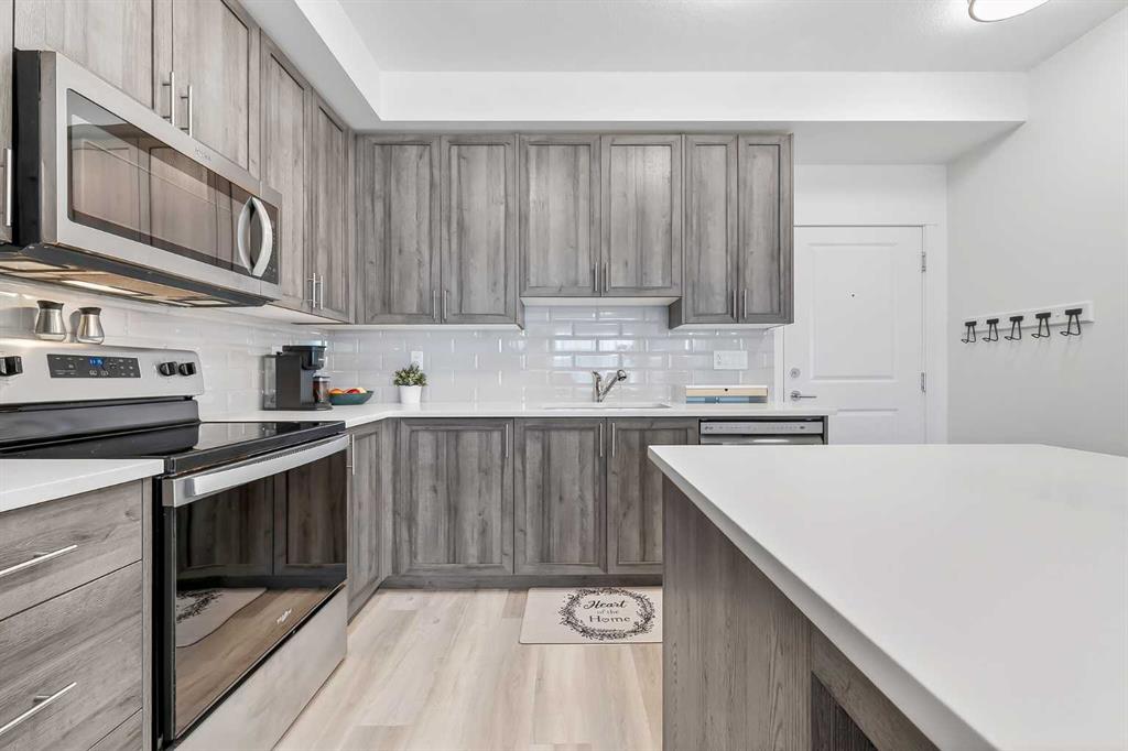 Prepare to be impressed! This stunning 3 bedroom, 2 bathroom, top floor condo offers luxurious living in highly desirable Sage Hill Park II. Step inside and be greeted by the elegance of luxury vinyl plank flooring that flows seamlessly through the bright and open main area. The heart of the home is the stunning kitchen, featuring upgraded stainless steel appliances, sleek quartz countertops, ample stylish cabinetry, double pantry, and a large inviting island- perfect for entertaining! The kitchen effortlessly transitions into the sun drenched living room, creating an ideal space for relaxation and gatherings. The patio is nothing short of amazing, it’s huge! Enjoy covered outdoor living with 265 ft2 of private space in sunny south exposure. Retreat to the generously sized primary bedroom, complete with a well organized walk-in closet, and private ensuite bathroom. The thoughtfully separated 2nd bedroom is also a great size, and has a walk through closet leading into the 2nd full bathroom. There is even a 3rd bedroom, lots of space for the whole family! Stay comfortable year round with air conditioning in the summer, and keep your car warm in the winter in the heated underground parking. This unit also comes with an additional outdoor parking stall, convenient! Added bonus of a separate storage locker for your extra and seasonal belongings. Beyond the exceptional features of the unit, this complex is in a prime location that sides onto a picturesque pond and endless walking trails- perfect for enjoying the outdoors. You’ll also appreciate the close proximity to a variety of shopping and dining options, public transportation, major roadways, and much more! Don’t miss the opportunity to make this exceptional condo your own. Call your favorite realtor to book a showing today, you won’t be disappointed!
