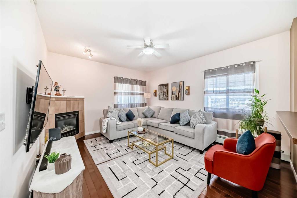 Welcome to this stunning TOP-FLOOR CORNER condo in Lighthouse Landing, offering exceptional privacy, natural light, and beautiful views from your semi-circular covered balcony. This immaculate home features 2 bedrooms and 2 full bathrooms, and an indoor underground parking, thoughtfully designed with no shared walls between bedrooms for added comfort. Inside, you’ll find a bright and spacious and functional layout highlighted by high-end engineered flooring, maple cabinetry, and stainless steel appliances. The inviting living room is anchored by a corner gas fireplace, creating the perfect space to relax or entertain, while the balcony gas line makes outdoor grilling a breeze. The main living area is warm and inviting, perfect for relaxing or hosting, while large windows bring in plenty of natural light throughout the home. The kitchen is efficiently designed with ample cabinetry and workspace, flowing seamlessly into the dining and living areas for easy everyday living. This home features two well sized bedrooms, including a primary retreat complete with its own ensuite and walk-in closet, offering both privacy and practicality. Enjoy your own private balcony, ideal for morning coffee or unwinding at the end of the day. With in suite laundry and a smart layout all on one level, this home is perfect for low maintenance living. Located in the highly desirable community of Country Hills Village, residents enjoy a walkable lifestyle with easy access to park, pond, shopping, restaurants, groceries (Superstore, Sobeys), medical & dental services, schools, library, public transit, and recreation, including the nearby Vivo Recreation Centre, Landmark Cinema, Commuters will appreciate quick connections to Stoney Trail and Deerfoot Trail, with CrossIron Mills just minutes away and the airport only a short drive. This is an ideal opportunity for first time buyers, downsizers, or investors looking for a property in a prime, amenity rich location. This is condo living at its finest—comfort, convenience, and style all in one.