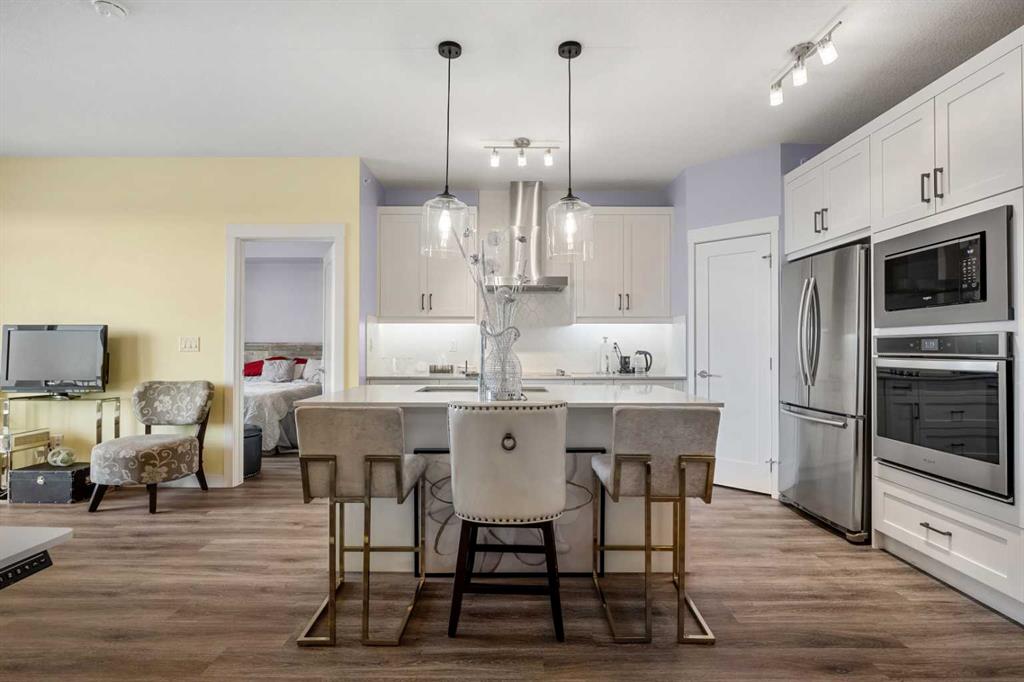 Welcome to your 2 Bed/2 Bath condo in the highly sought-after community of Cranston! This bright and spacious unit offers 9-ft ceilings, quartz countertops throughout, built-in stainless steel appliances with an electric cooktop, a pantry, and a dining area perfect for gatherings. The kitchen provides plenty of counter space and storage, while upgraded tile flooring enhances all wet areas. Additional features include front-load washer/dryer, air conditioning for those warm summer days, and so much more! The primary suite is complete with a 4-piece ensuite and a large walk-in closet with built-ins. Both bedrooms feature oversized windows with coverings for natural light and privacy. This unit also comes with two parking spots—one underground and one outdoor stall. Enjoy immediate possession and the unbeatable location—just steps from the Bow River and Fish Creek Park for evening strolls or morning runs. Cranston is Calgary’s hidden gem, offering the perfect balance of nature and urban living. Within 10 minutes, you’ll find the South Health Campus, the largest YMCA in Canada, schools, shopping, restaurants, coffee shops, and more. Quick access to Deerfoot Trail and Stoney Trail ensures an easy commute anywhere in the city. Don’t miss the chance to call this beautiful condo in Cranston your new home!