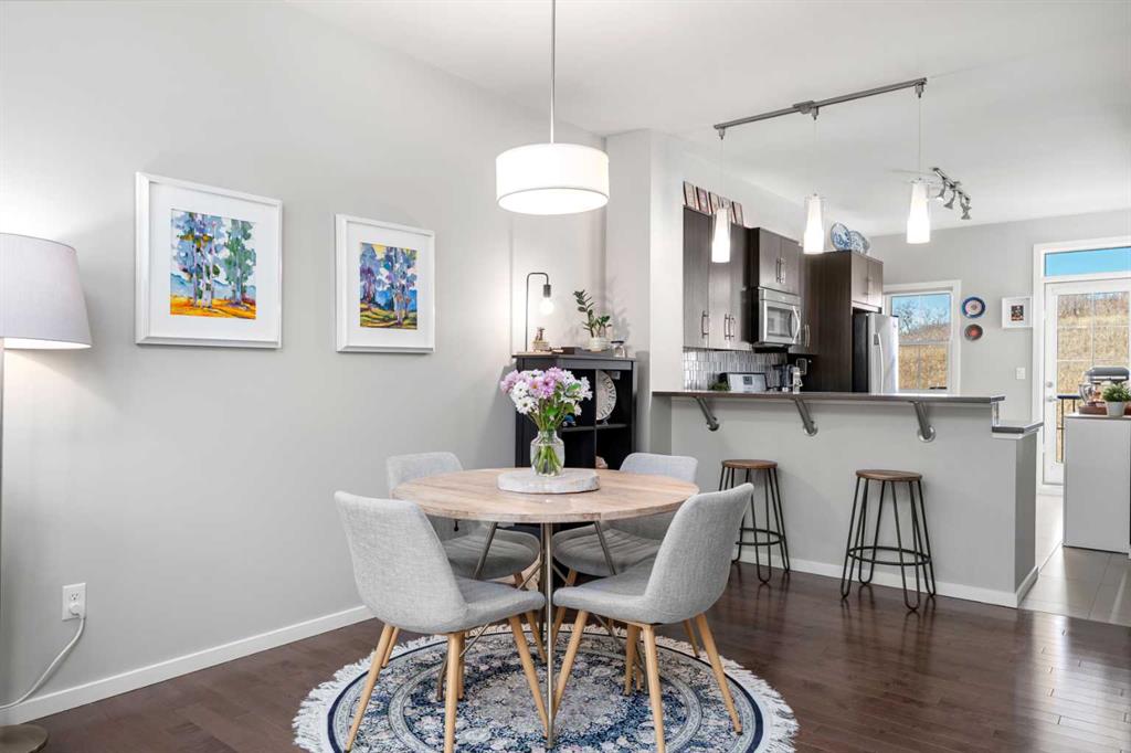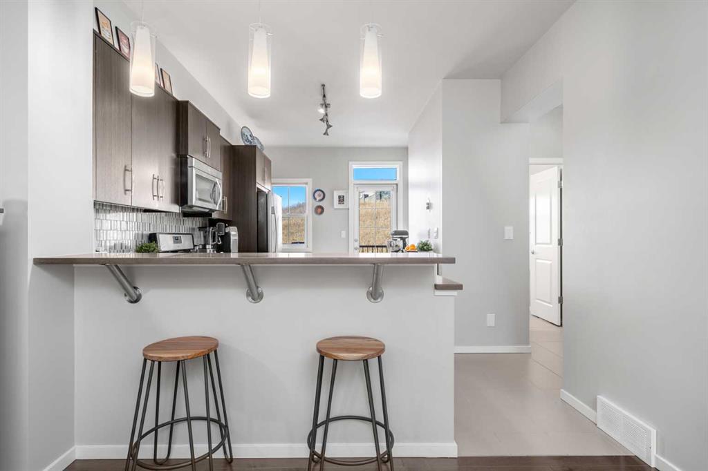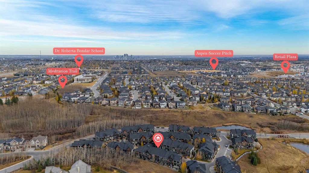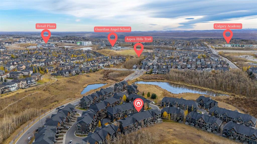 Welcome to The Enclave, a tucked-away gem in the prestigious community of Aspen Woods. Backing onto a peaceful west-facing green space, this townhome offers privacy, tranquility, and a touch of nature right out your back door. Inside, you’ll find 1,334 sq. ft. of bright, open living space filled with natural light. The main floor showcases beautiful hardwood floors, an open concept design, and a stylish kitchen complete with quartz countertops, stainless steel appliances, and a gas range. Step out onto the deck with a gas hookup, perfect for summer barbecues. Central A/C ensures year-round comfort. The popular double primary floor plan offers two spacious bedrooms, each with its own ensuite and plenty of closet space. The double tandem garage provides room for two vehicles plus extra storage, while the full driveway is a rare convenience in townhome living. This well-managed complex offers low condo fees, beautifully landscaped grounds, a quiet pond, and scenic walking paths where you can enjoy abundant birdlife and wildlife — a true nature retreat in the city. Families will appreciate the proximity to top-rated public and private schools, including Webber Academy, Rundle College, and Calgary Academy, along with excellent local options. Just down the road, Aspen Landing provides a vibrant mix of boutique shops, restaurants, coffee spots, grocery stores, and all the everyday conveniences, with the C-Train keeping downtown only minutes away. Meticulously maintained, this home offers unmatched pride of ownership — book your private viewing today and see the difference.