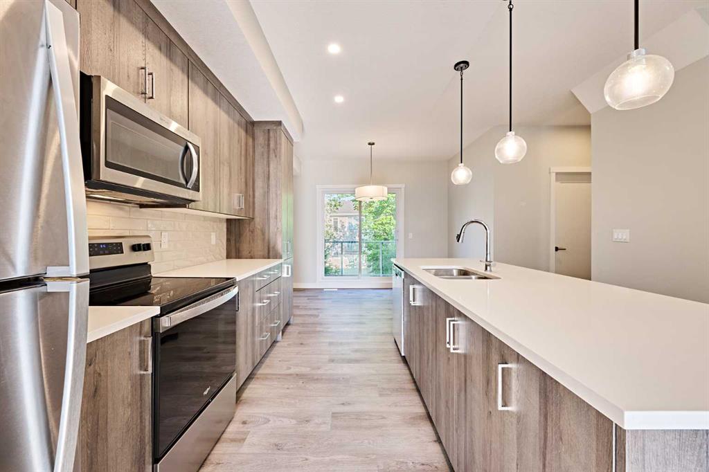 Welcome to Your Dream Townhouse in Shawnee Slopes! Discover contemporary living at its finest in this never-lived-in 3-bedroom, 2.5-bath townhouse offering 1,452 SQFT of stylish, thoughtfully designed space. Nestled in the heart of Shawnee Park, this home combines modern finishes, functional layout, and a prime location—perfect for professionals, families, and urban explorers alike. ? Unbeatable Location Enjoy seamless access to the Stoney Trail ring road and just a short walk to the Shawnessy LRT station, making downtown commutes and cross-city travel a breeze. Shopping, dining, schools, and parks are all within easy reach. ?? Stylish & Modern Interior Step into a grand foyer with 9-foot ceilings and luxury vinyl plank flooring throughout the main level. The open-concept layout features a bright dining area with direct access to a private outdoor patio—complete with a gas hookup for your BBQ, perfect for entertaining. ?? Chef-Inspired Kitchen Love to cook? You’ll fall for the gourmet kitchen showcasing a massive quartz island, stainless steel appliances, pot lighting, and ample cabinet space—a perfect blend of style and function. ?? Bright & Inviting Living Room The spacious living area is flooded with natural light through large windows, offering a warm and welcoming atmosphere. A powder room and walk-in closet on the main floor add convenience and practicality. ?? Peaceful Upstairs Retreat Upstairs, unwind in the serene primary suite featuring a private ensuite with quartz vanity and a luxurious stand-alone shower with dual seating benches. Two additional bedrooms—ideal for guests, a nursery, or a home office—plus a stacked laundry closet and a full 4-piece bathroom complete the second level. ?? Tandem Attached Garage The attached tandem garage offers secure parking for two vehicles and additional storage space, with convenient access to the rear of the home. ?? Nature & Community at Your Doorstep Step outside to enjoy beautiful walking paths, green spaces, and easy access to the natural wonders of Fish Creek Park. ?? Don’t miss your opportunity to own a turnkey home in sought-after Shawnee Park. Luxury, location, and lifestyle—this one has it all!