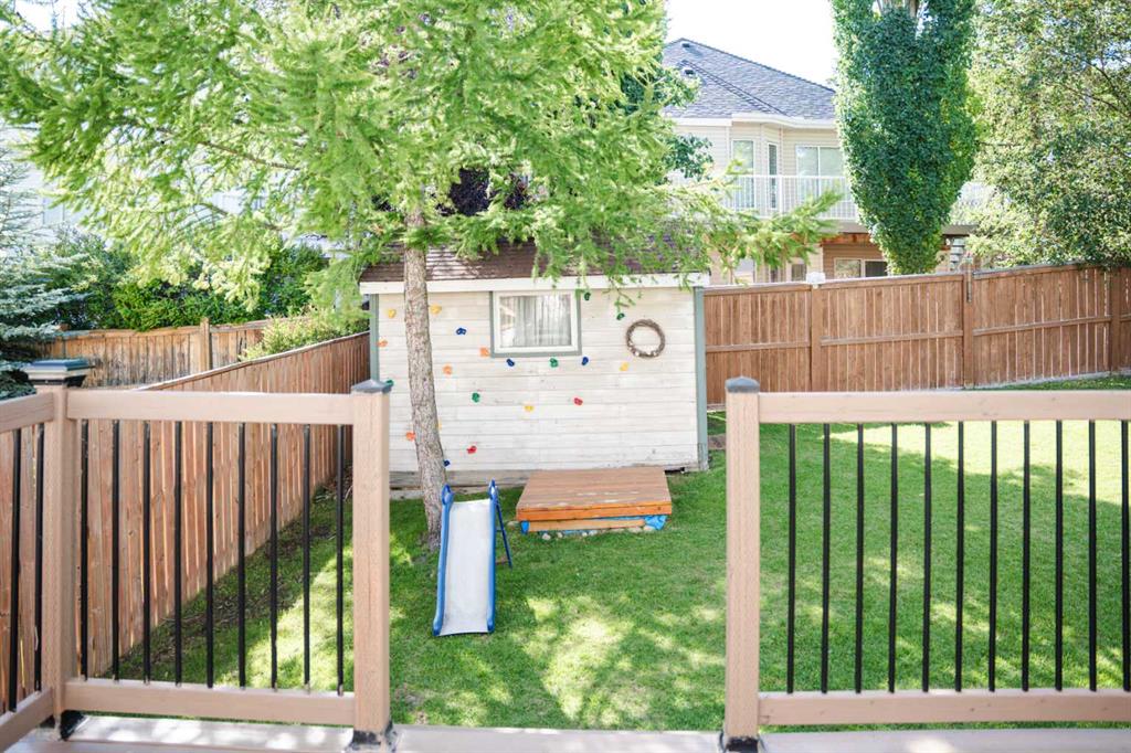 Rare 4-Level Split in Rocky Ridge and Royal Oak – Over 2,250 sq. ft. of living space! This beautifully maintained home with double attached garage is perfectly situated at the end of a quiet cul-de-sac with a park and green space right across the street. This home is within walking distance to the Tuscany LRT station and the Rocky Ridge Ranch House with its activity rooms, children’s pool, tennis and basketball courts. The main floor is bright and inviting with hardwood floors, vaulted ceilings, and large windows that flood the living and dining areas with natural light. The kitchen features a 10′ ceiling, stainless steel appliances, an oversized pantry, and a sunny eating nook overlooking the 3rd level. The 3rd level offers a cozy family room with a corner fireplace, a 3rd bedroom, and a full bathroom. Upstairs, you’ll find two spacious bedrooms, each with its own bathroom, including the primary suite with walk-in closet and private ensuite. The fully finished basement includes a large rec room, office space, laundry, and ample storage. Outside, enjoy a large west-facing backyard with a deck and storage shed. Recent updates include triple-pane windows, hot water tank, and refreshed bathrooms with new vanities, toilets, and vinyl plank flooring. This is a fantastic family home in a great location with wonderful neighbors — a true gem in the border of Rocky Ridge and Royal Oak!