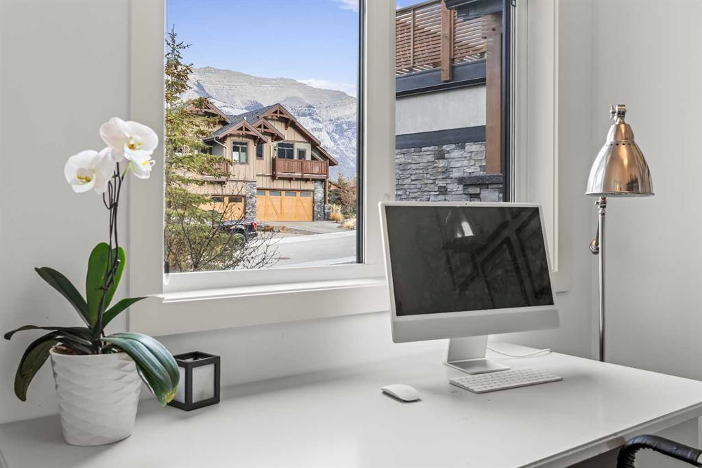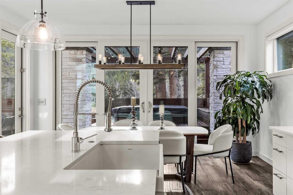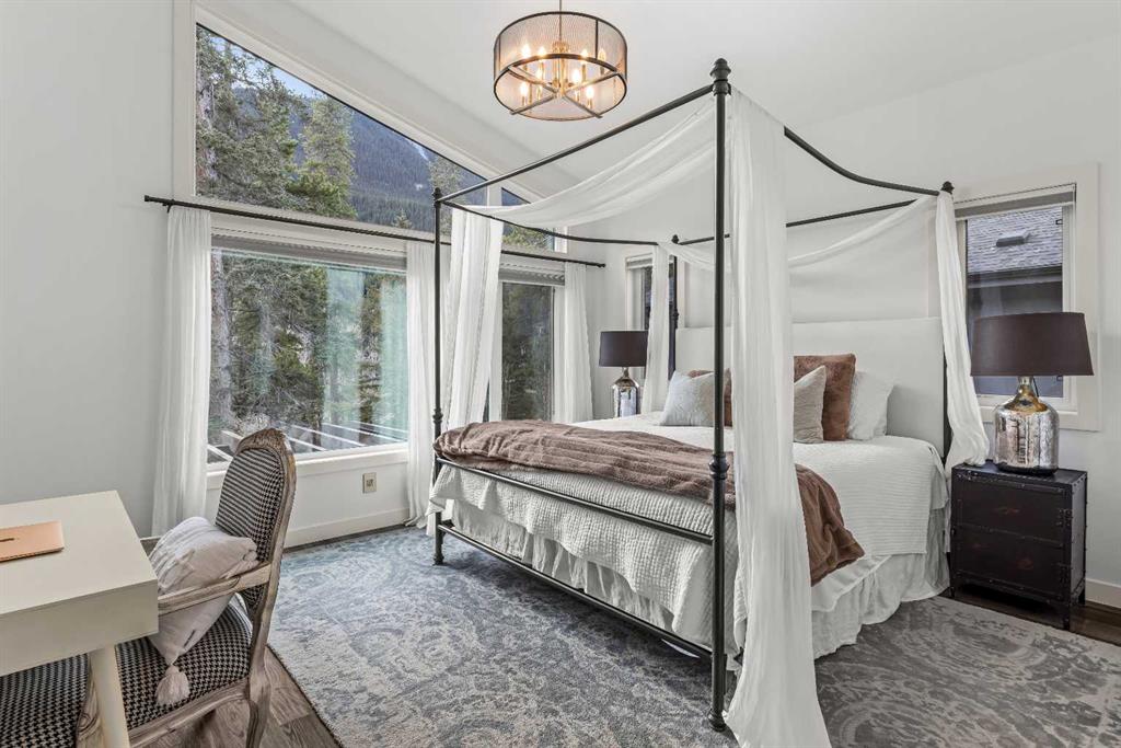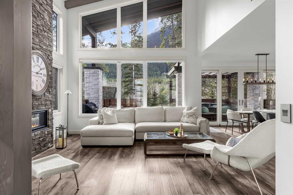 Mountain-Modern Living on the 10th Hole of Stewart Creek Golf Course! Welcome to a rare offering in one of Three Sisters’ most peaceful and private enclaves .A stunning mountain-modern single family home backing directly onto the 10th hole at Stewart Creek Golf Course. Thoughtfully designed with function, style, and environmental consciousness, this 4-bed, 4-bath residence offers over 3,500 sq ft of refined living with beautiful natural light, warm timber accents, and a true connection to the surrounding landscape. Natural timber beams, soaring ceilings, and expansive windows create an inviting alpine aesthetic while framing select views of the golf course and mountains. Enjoy an unobstructed and private backdrop, creating a sense of calm and separation rarely found. A commitment to sustainability and safety elevates this home beyond the ordinary. Featuring solar panels for energy efficiency and Fire-Smart roof sprinklers, the property is designed for both modern living and long-term peace of mind. Inside, the open-concept main level seamlessly blends the chef-inspired kitchen, dining space, and living room, creating a bright and functional hub ideal for gatherings and everyday life.