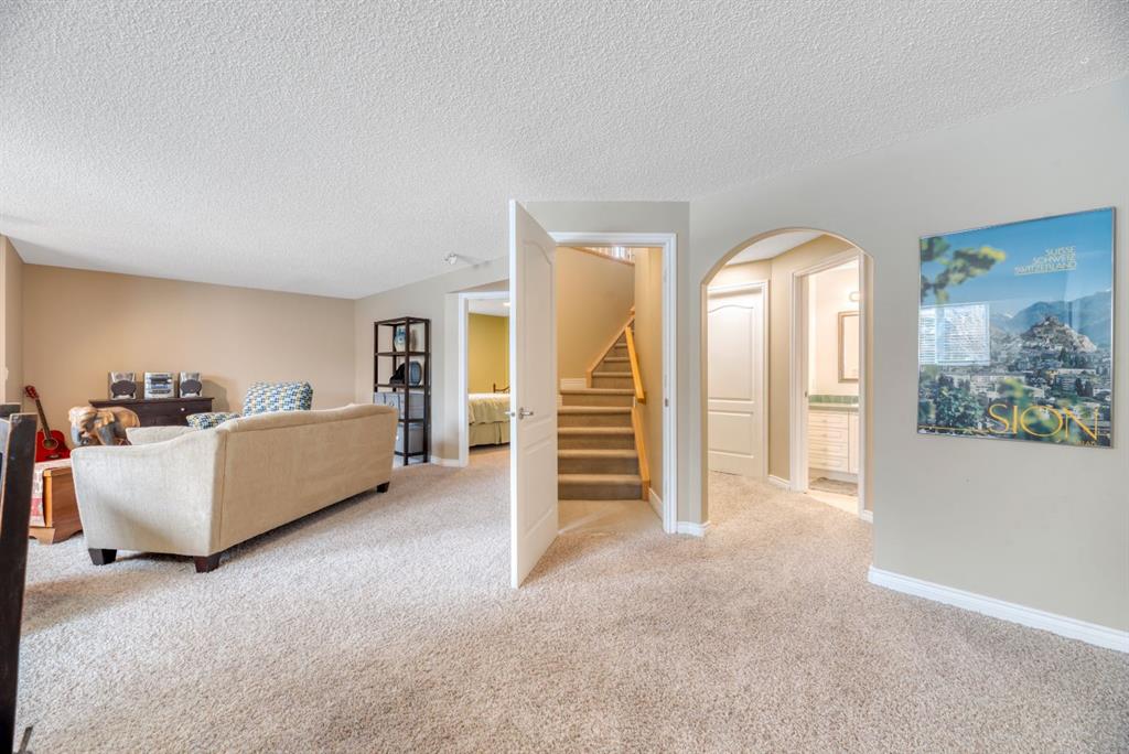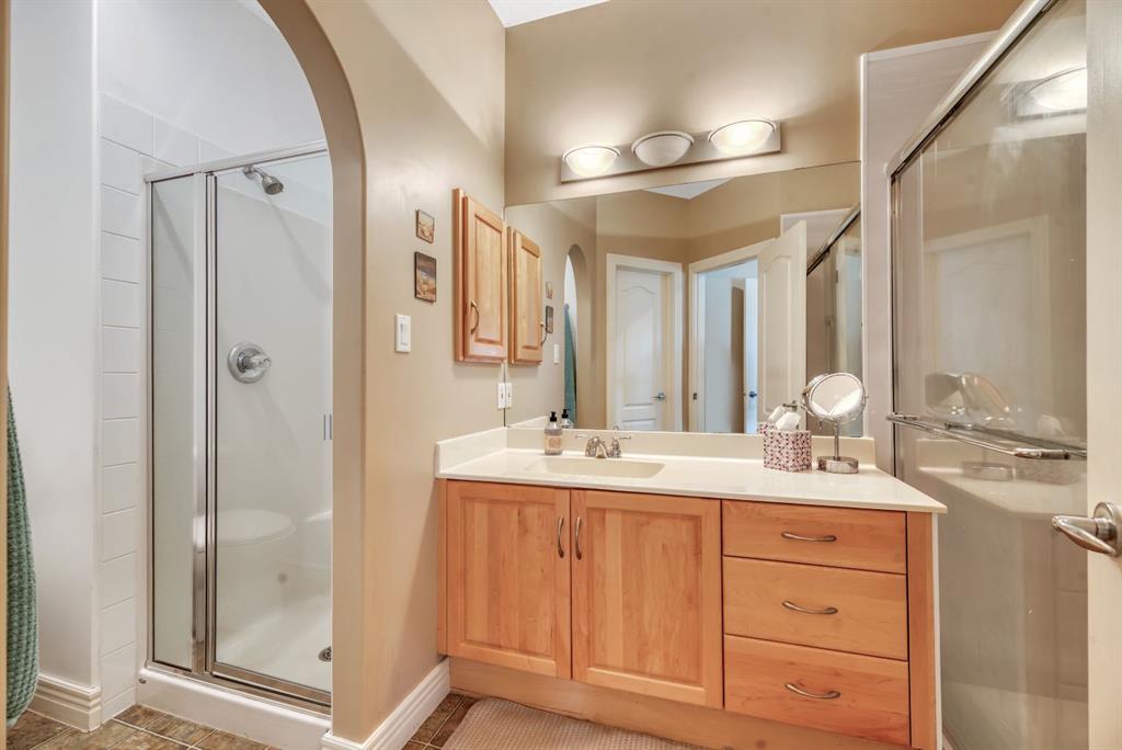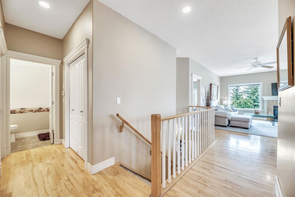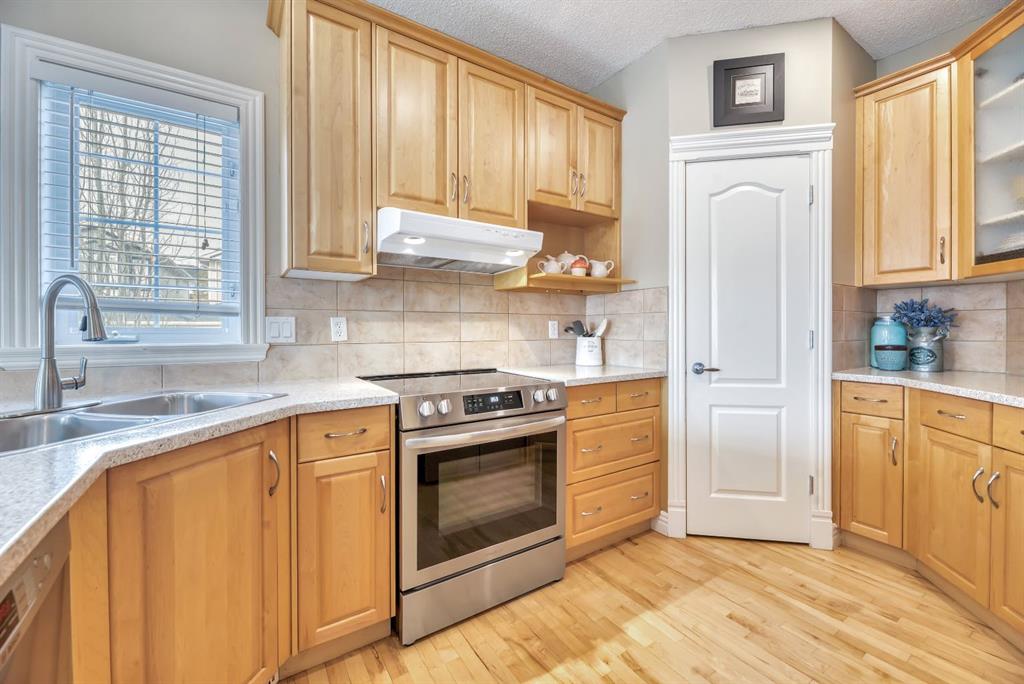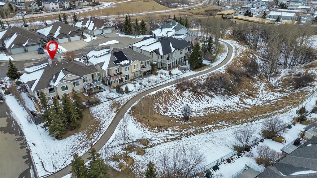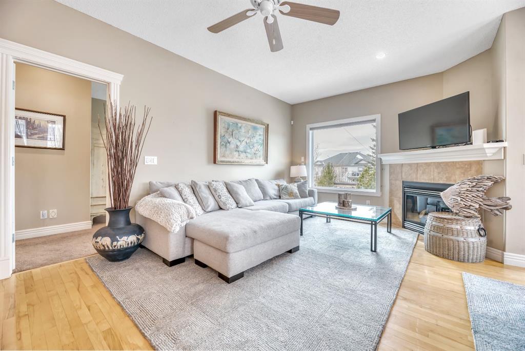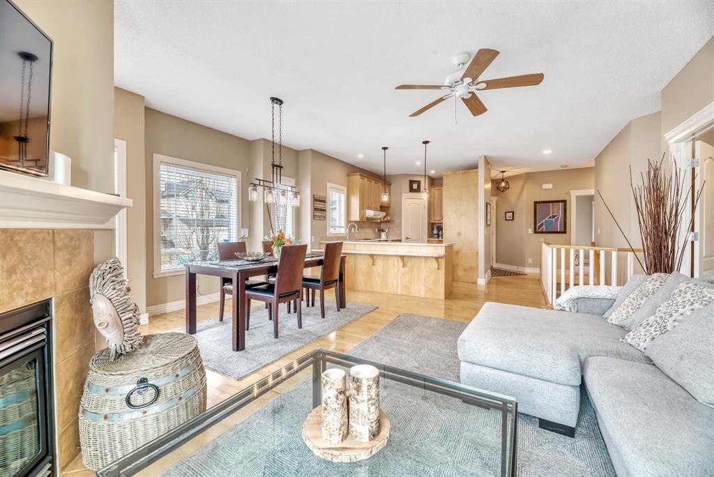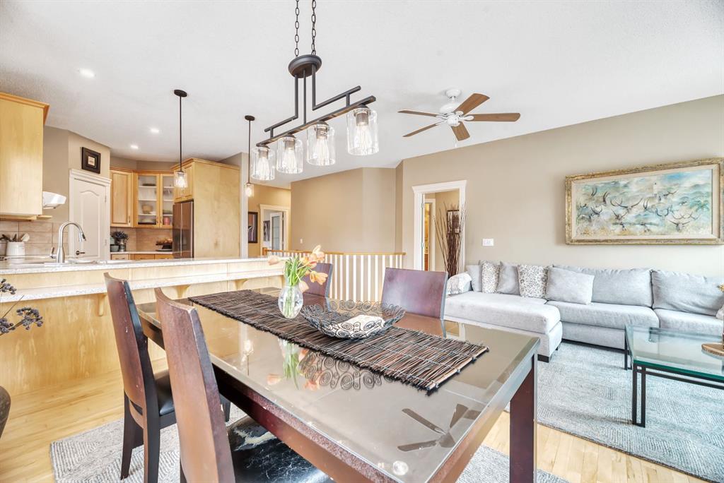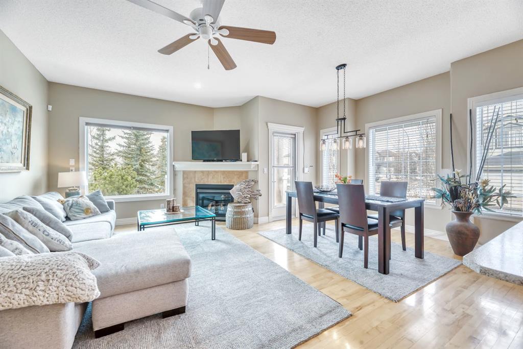BACKING TO RAVINE & WALKING PATHS WITH LAKE ACCESS in Crystal Ridge! Welcome to this well maintained bungalow villa, ideally situated on a large corner lot in a quiet cul-de-sac and backing onto walking paths and a natural ravine. Offering both privacy and lifestyle, this home has access to Okotok’s only lake community. There’s plenty of activities around such golf course, dog park, walking/bike paths, recreation centers and of course the distinct charm and sense of community of small town living! Take in a ball game, enjoy the cute coffee shops, arts, culture and live music or a road trip to the mountains with such ease! The main floor features an inviting open-concept layout with maple hardwood flooring, a bright and functional kitchen with ample cabinetry and counter space, a corner pantry, glass accents, and a peninsula island with breakfast bar—perfect for casual dining or entertaining. The kitchen flows into the spacious living and dining areas, highlighted by a cozy gas fireplace and large windows that capture the serene views. Step out onto the west-facing deck to enjoy your private backyard and the peaceful green space beyond. The primary bedroom is generously sized and features a 4-piece ensuite along with a walk-in closet. A second main floor bedroom has flexibility as a guest room or home office. Another full bathroom with shower and convenient laundry/mud room complete the main level. The fully developed basement expands your living space with a massive family room featuring another gas fireplace, sunshine windows for lots of natural light, a third bedroom, an additional full bathroom, and plenty of storage space with loads of shelving and a wash sink. This comfortable home also offers newer appliances as well as central air for year round comfort. Outside, the west-facing backyard is beautifully landscaped with lots of trees, mature greenery and a private patio—perfect for relaxing or entertaining. An easy-care front yard and double attached garage with additional parking complete this exceptional property. Located close to schools, shopping, and all amenities, this home offers a rare combination of comfort, convenience, and lifestyle.