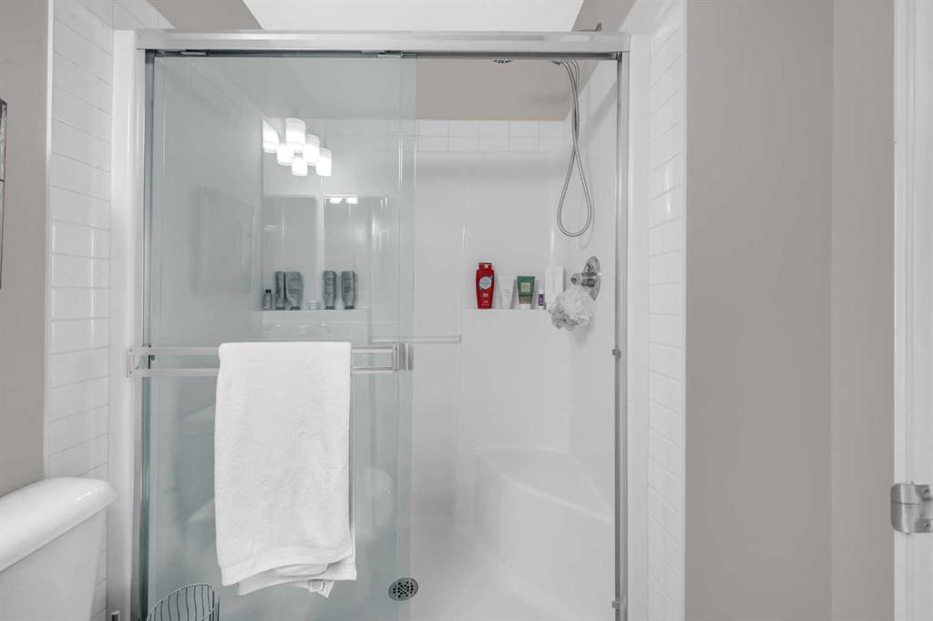 Welcome home to this stunning townhouse located in the highly sought-after lake community of Auburn Bay, offering low condo fees and an unbeatable lifestyle! As you step inside, you’re welcomed by soaring vaulted ceilings and custom California shutters that add elegance and privacy throughout the home. The entryway and bathroom feature beautiful slate flooring, adding a touch of natural style and durability. The modern kitchen is a chef’s dream, complete with granite countertops, stainless steel appliances, a brand new dishwasher, and ample cabinetry for generous storage. A few steps up, you’ll find a convenient half bath, leading to the upper level that boasts two spacious primary bedroom suites, each with large closets and their own 4-piece en-suite with sleek quartz vanity tops, plus a laundry closet with full-size washer and dryer for added convenience. The lower level includes a welcoming front entry with a coat closet and direct access to the double attached garage, offering room for a full-size vehicle and plenty of extra storage. This home also features two private outdoor living spaces, an upper deck. Perfect for summer entertaining, and a lower concrete patio is ideal for relaxing with a BBQ gas line. Conveniently located within walking distance to shopping, schools, parks, transit, and the lake, this thoughtfully upgraded home is ready for you to move in and enjoy. Welcome to your new home in Auburn Bay!