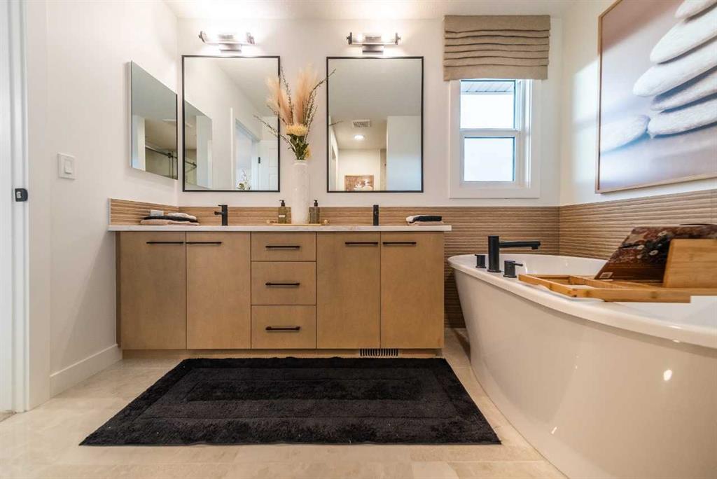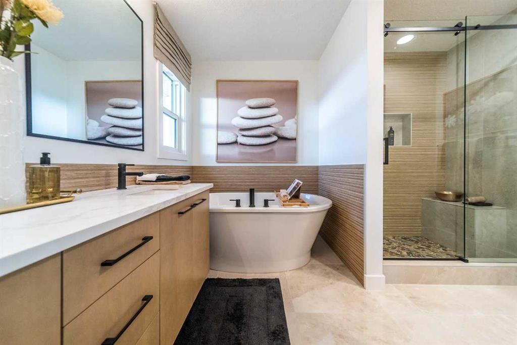 Built by a trusted builder with over 70 years of experience, this home showcases on-trend, designer-curated interior selections tailored for a home that feels personalized to you. Energy efficient and smart home features, plus moving concierge services included. Experience upscale living in this thoughtfully designed home backing greenspace. Brightened by additional windows, this home features an executive kitchen with built-in stainless steel appliances, gas cooktop, waterfall island with pendants, and a walk-in pantry with MDF shelving and french door. The main floor offers LVP flooring, 8′ doors, a flex room with french door, a mudroom with built-ins, and a gas fireplace with a maple mantle. Upstairs includes a vaulted bonus room and a primary bedroom with tray ceiling and a 5-piece ensuite with tiled shower, barn door, tile flooring, black fixtures, and a bank of drawers. Maple railing with iron spindles and a full-width vinyl deck complete this beautifully upgraded home. This energy-efficient home is Built Green certified and includes triple-pane windows, a high-efficiency furnace, and a solar chase for a solar-ready setup. With blower door testing that may be eligible for up to 25% mortgage insurance savings, plus an electric car charger rough-in, it’s designed for sustainable, future-forward living. Featuring a full range of smart home technology, this home includes a programmable thermostat, ring camera doorbell, smart front door lock, smart and motion-activated switches—all seamlessly controlled via an Amazon Alexa touchscreen hub. Photos are representative.