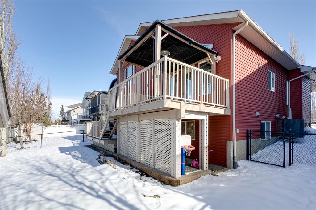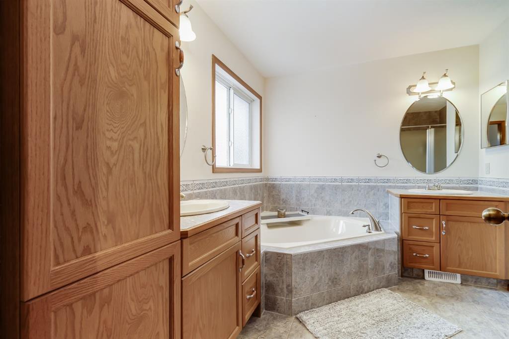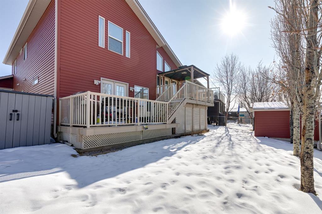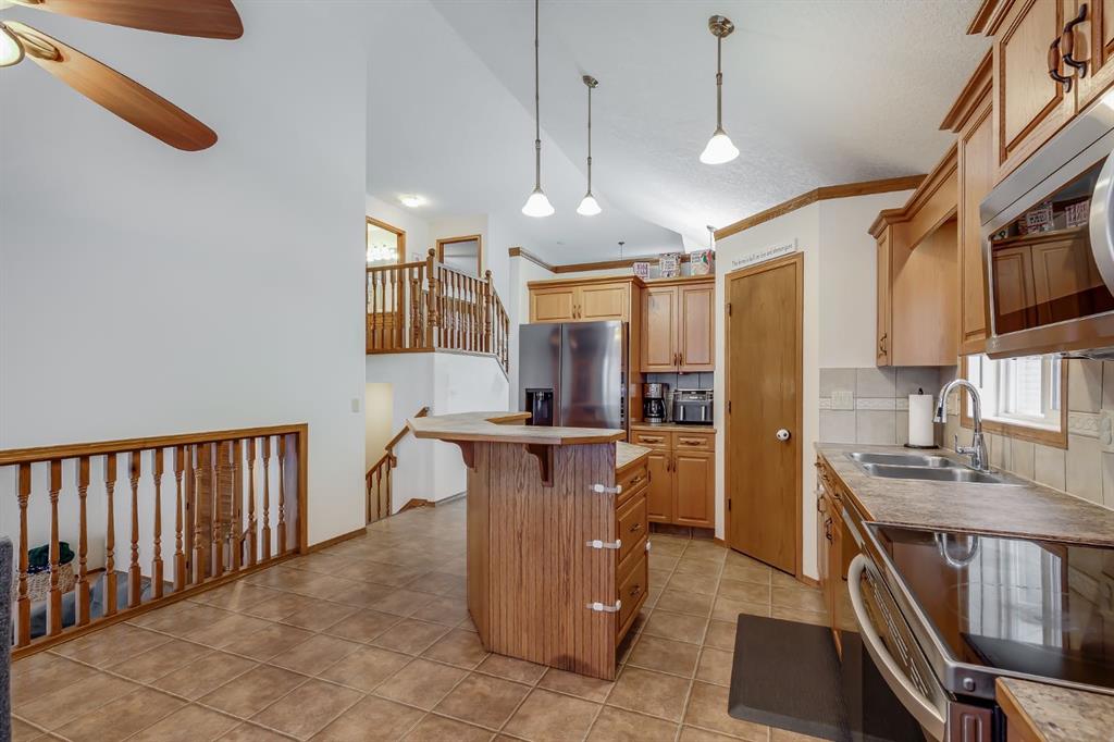Over 2600 sqft of Developed Living Space in this Custom Built 4 LEVEL SIDE SPLIT featuring 4 Bedrooms & 4 Bathrooms. When you arrive, you will immediately notice the mature trees on this property that lead you to a front porch with a swing for you to enjoy your summer days. Entering the home you will notice the fantastic VAULTED CEILING that expands throughout the Main level. The Large Front Living/Dining Room (currently used as a Day Home) has Hardwood Flooring and Spindled Rail Banister. The Expansive Kitchen opens onto the 13’w top deck and has Newer Appliances (2024), Corner Pantry, Island with Storage and Breakfast Nook. The Upper level has a Large Primary Bedroom with His and Hers Closets and 5 pc Ensuite with Huge Soaker Tub, Dual Sinks, Shower Stall, and Built in Linen Cabinet. A Spacious 2nd Bedroom with Full Bath complete the Upper level. The 3rd level has a Large Family Room with Corner Fireplace, Wetbar, and opens onto the second 12’w second deck with Double French Doors, 3rd Bedroom, Laundry Room and Bathroom with Shower Stall. The 4th level has another Family Room/Den, Storage Room, 4th Bedroom, and 3 pc Bath with Shower Stall. The West Facing Yard has a Large Storage Shed, Mature Trees, is Fenced and you have the Two Tiered Deck with Gazebo and BBQ Gasline to enjoy your summer days. This Home also has an Oversized Garage 21’7″ x 23′ 4″ and is Air Conditioned. Located close to a Playground and Schools. Book your showing today!