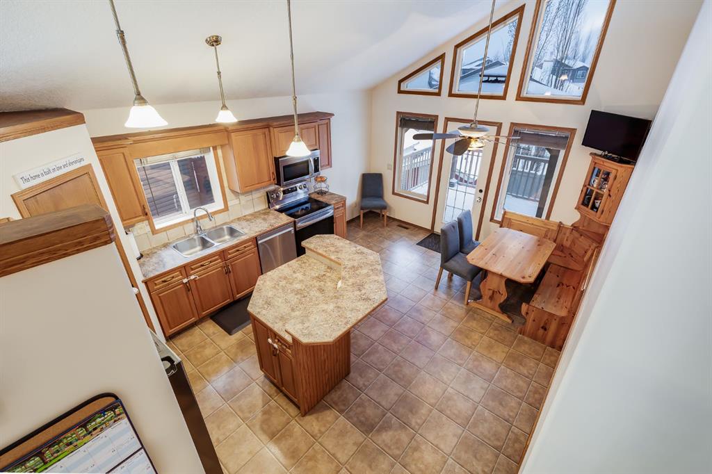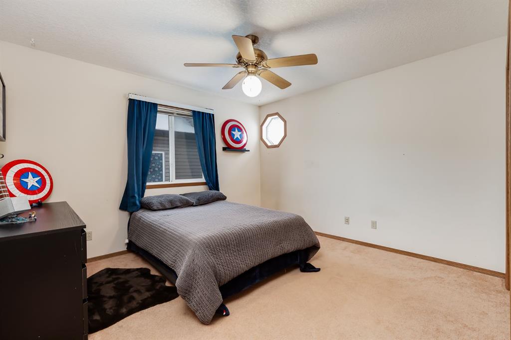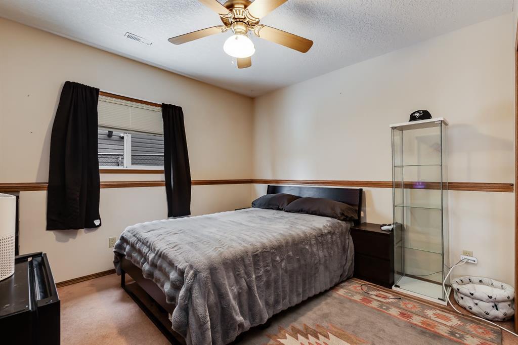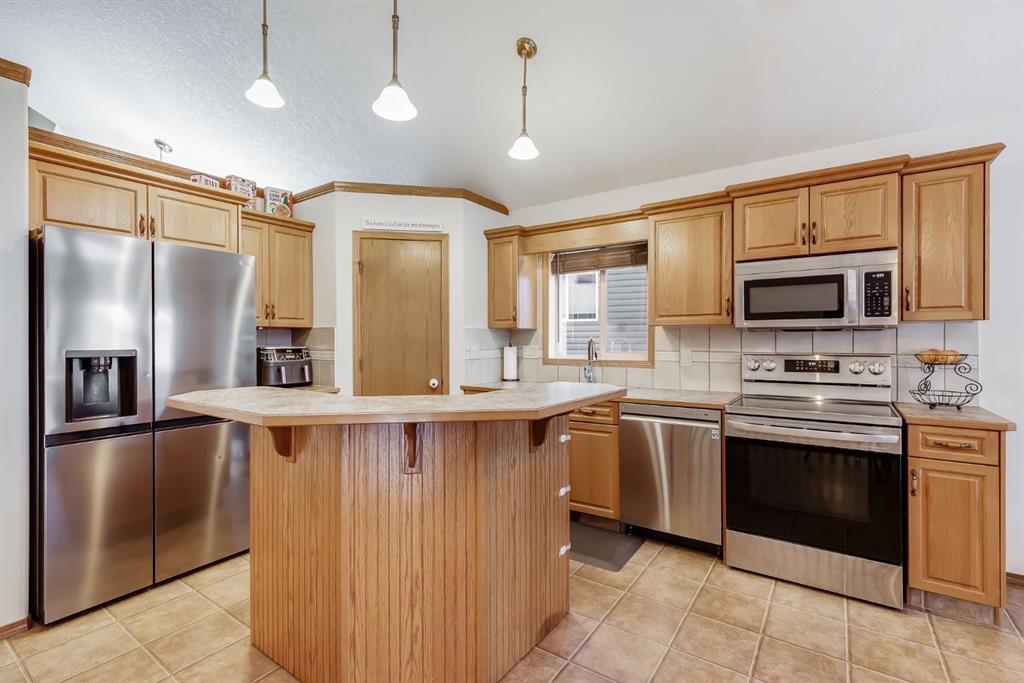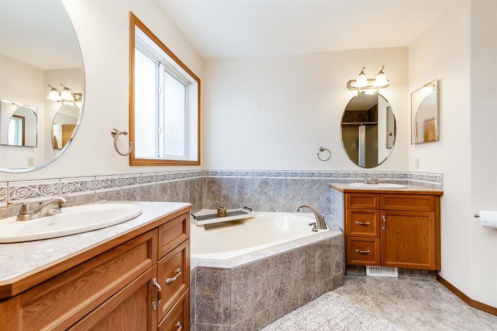 Over 2600 sqft of Developed Living Space in this Custom Built 4 LEVEL SIDE SPLIT featuring 4 Bedrooms & 4 Bathrooms. When you arrive, you will immediately notice the mature trees on this property that lead you to a front porch with a swing for you to enjoy your summer days. Entering the home you will notice the fantastic VAULTED CEILING that expands throughout the Main level. The Large Front Living/Dining Room (currently used as a Day Home) has Hardwood Flooring and Spindled Rail Banister. The Expansive Kitchen opens onto the 13’w top deck and has Newer Appliances (2024), Corner Pantry, Island with Storage and Breakfast Nook. The Upper level has a Large Primary Bedroom with His and Hers Closets and 5 pc Ensuite with Huge Soaker Tub, Dual Sinks, Shower Stall, and Built in Linen Cabinet. A Spacious 2nd Bedroom with Full Bath complete the Upper level. The 3rd level has a Large Family Room with Corner Fireplace, Wetbar, and opens onto the second 12’w second deck with Double French Doors, 3rd Bedroom, Laundry Room and Bathroom with Shower Stall. The 4th level has another Family Room/Den, Storage Room, 4th Bedroom, and 3 pc Bath with Shower Stall. The West Facing Yard has a Large Storage Shed, Mature Trees, is Fenced and you have the Two Tiered Deck with Gazebo and BBQ Gasline to enjoy your summer days. This Home also has an Oversized Garage 21’7″ x 23′ 4″ and is Air Conditioned. Located close to a Playground and Schools. Book your showing today!