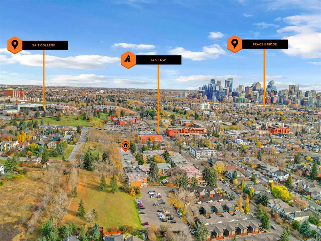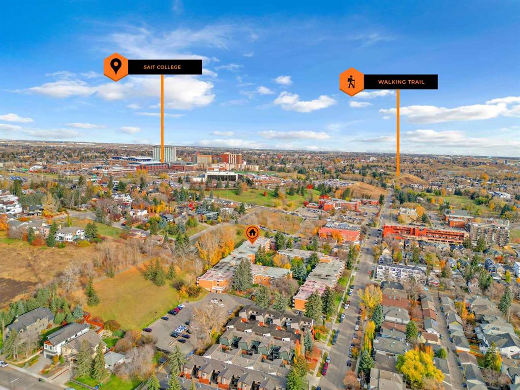 Stunning Top-Floor Condo in Briar Hill – Ideal Location for Families, Students, and Investors! Offering nearly 1,200 square feet of contemporary living, all on one level. This rare 3-bedroom, 2-bathroom unit boasts a modern open floor plan, featuring a sleek galley kitchen, newer cabinets, updated flooring, and stylishly renovated bathrooms. It’s the perfect blend of comfort and convenience. This well-maintained concrete building has seen significant updates, including balconies (2014), windows, fire alarm system, and roof (2015). The generous private balcony offers serene views of green spaces and community gardens, with the added convenience of being able to see your parking stall—perfect for using your vehicle’s auto-start during colder months. The unit itself features in-suite storage, a European washer, and access to a common laundry area. Condo fees include everything, and access to the building’s excellent amenities. Enjoy the basketball court, a flourishing community garden, and a large covered outdoor patio with BBQs, ideal for entertaining. There’s also a party room available for larger gatherings, perfect for hosting friends and family. The property is situated in the peaceful and highly desirable Briar Hill community, known for its walking paths and green spaces, yet conveniently close to all major amenities. Located directly opposite SAIT—making it an ideal spot for students or professionals—the condo is also just steps from the C-Train and minutes from the trendy shops and restaurants of Kensington. For families, the location couldn’t be better, with top-rated schools within a 10-minute drive. Don’t miss this incredible opportunity – schedule your private viewing today!